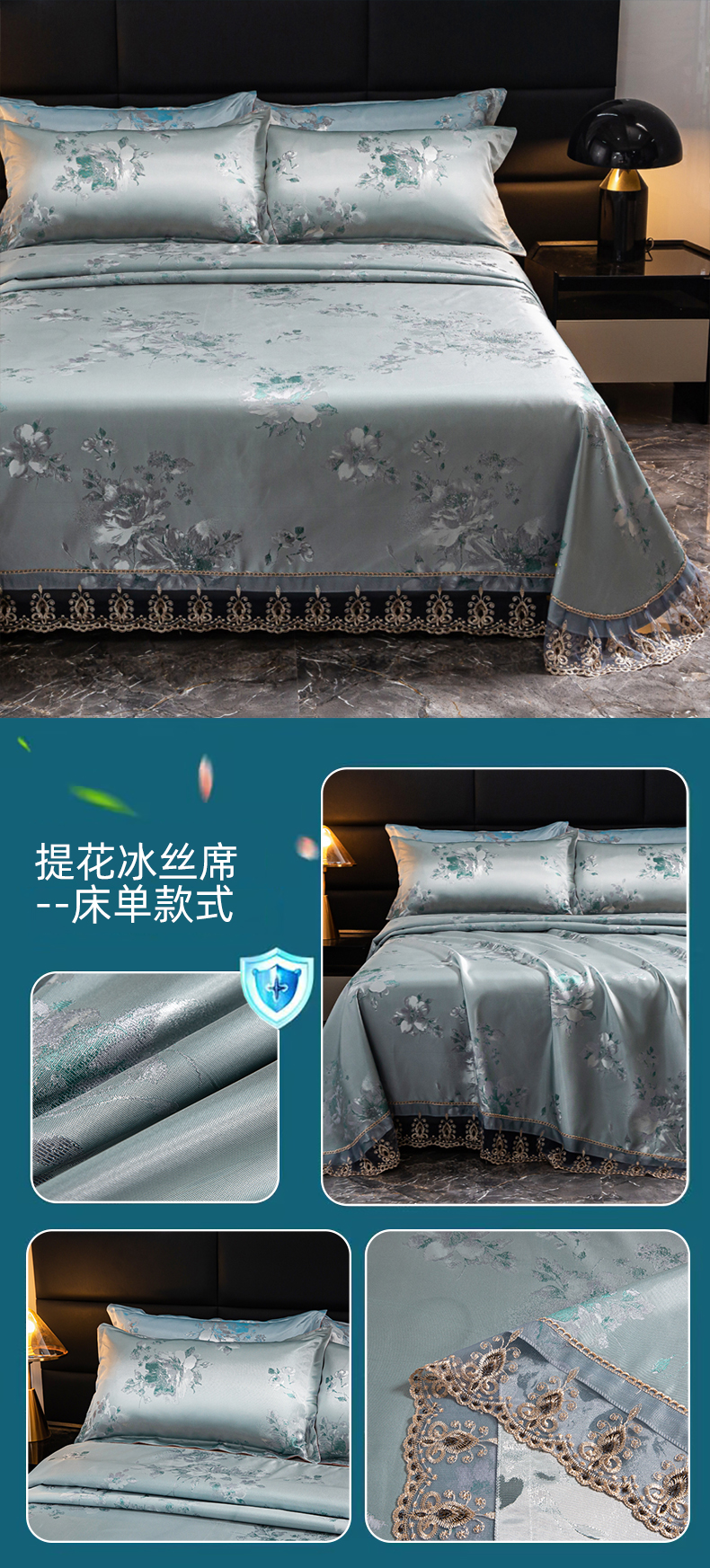 当前位置: 91家纺网 > 商品网购 > 床上用品 > 凉席 > 凉席套件 > 席皇后 2025新款可机洗抗菌提花冰丝席 牡丹绿