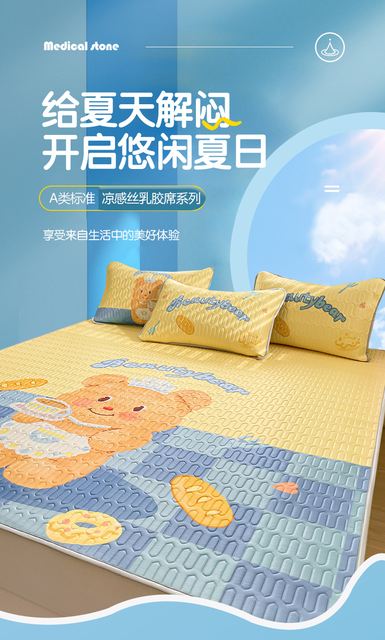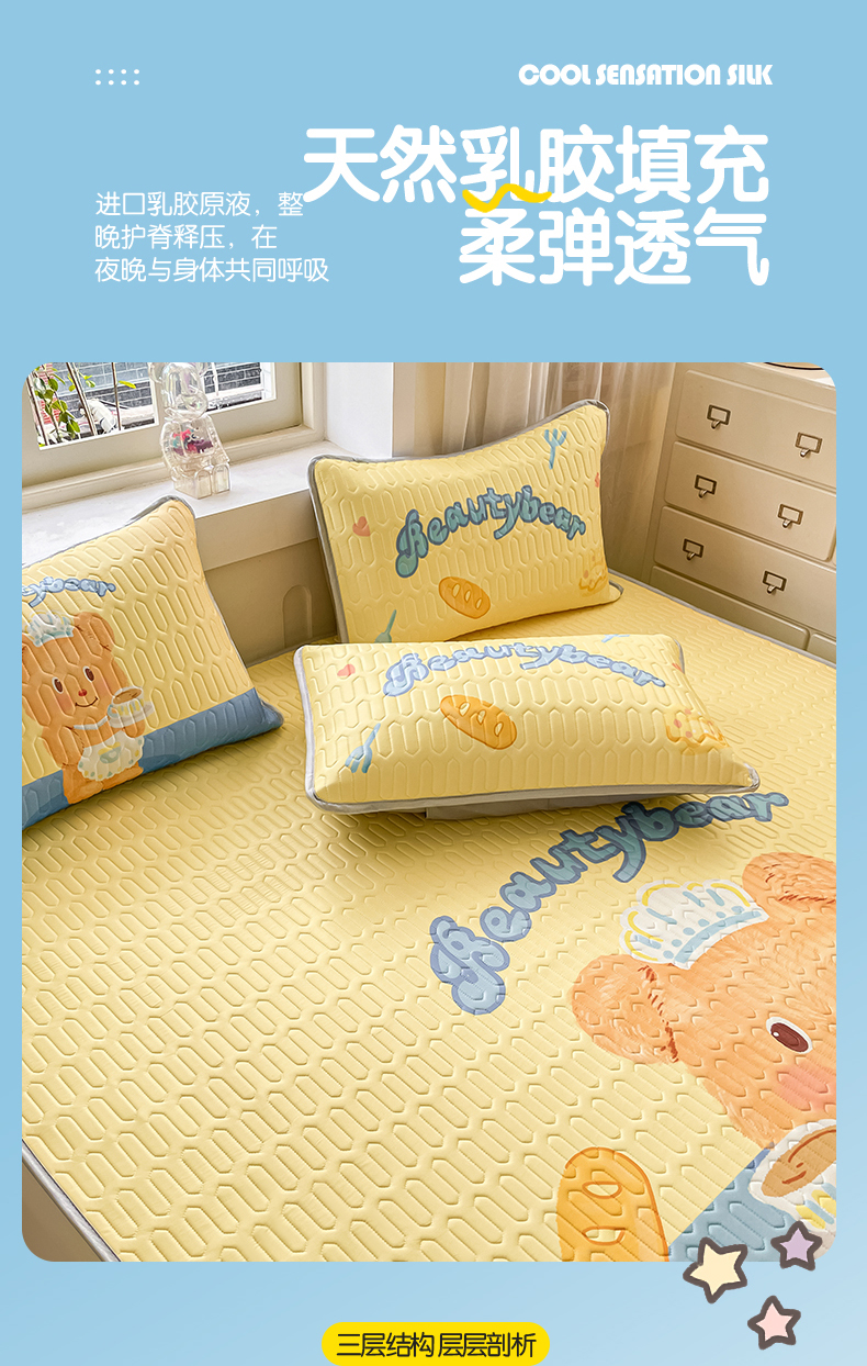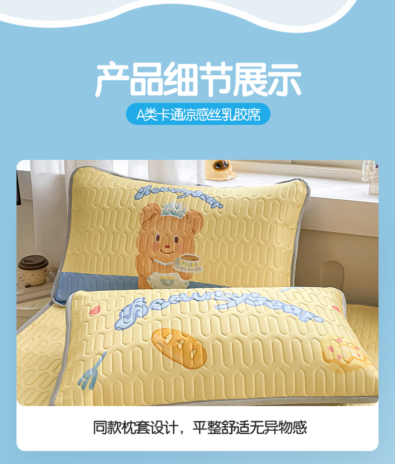 商品名称:布卢姆床垫 2025新款卡通A类大版数码凉感丝乳胶凉席 黄油小熊
