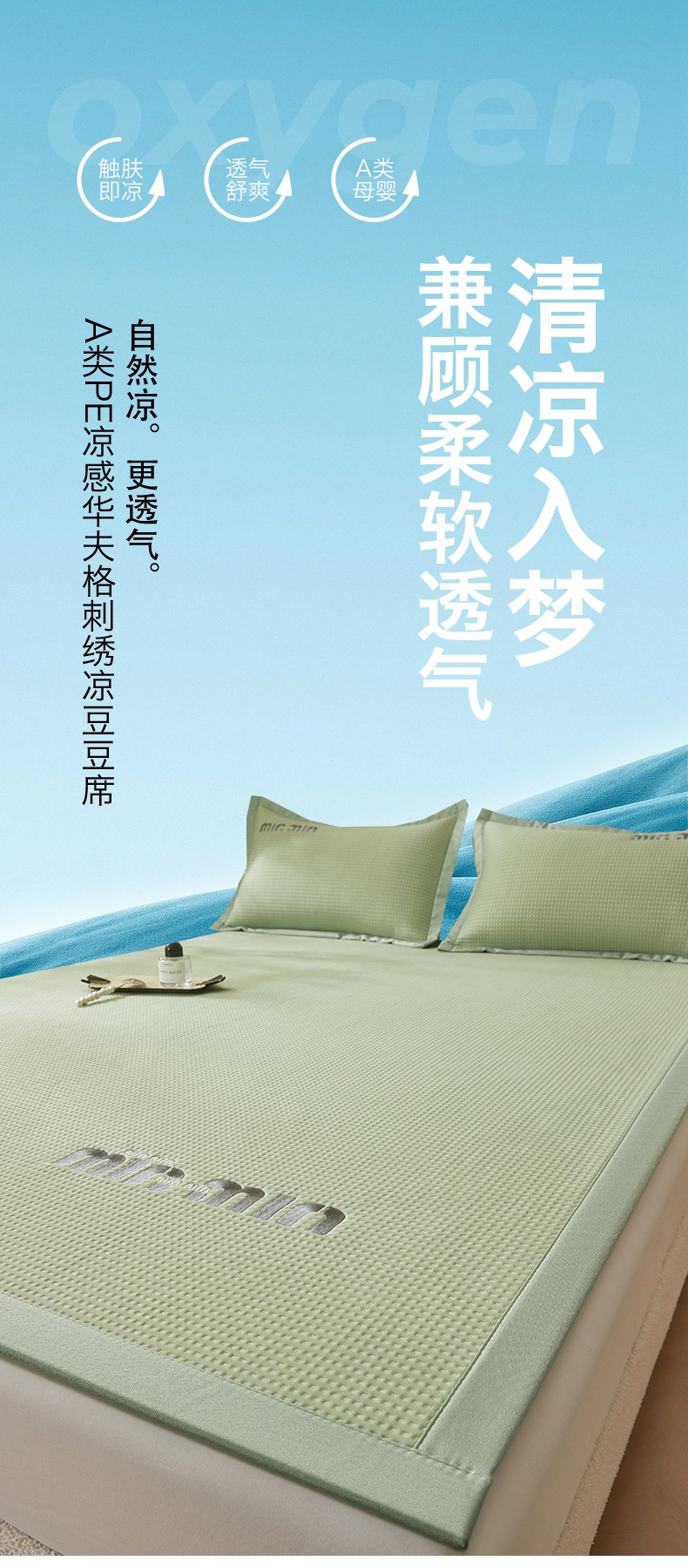 商品名称:布卢姆床垫 2025新款A类乙纶PE刺绣凉豆豆席豆豆床席凉席 豆豆床席-果绿
