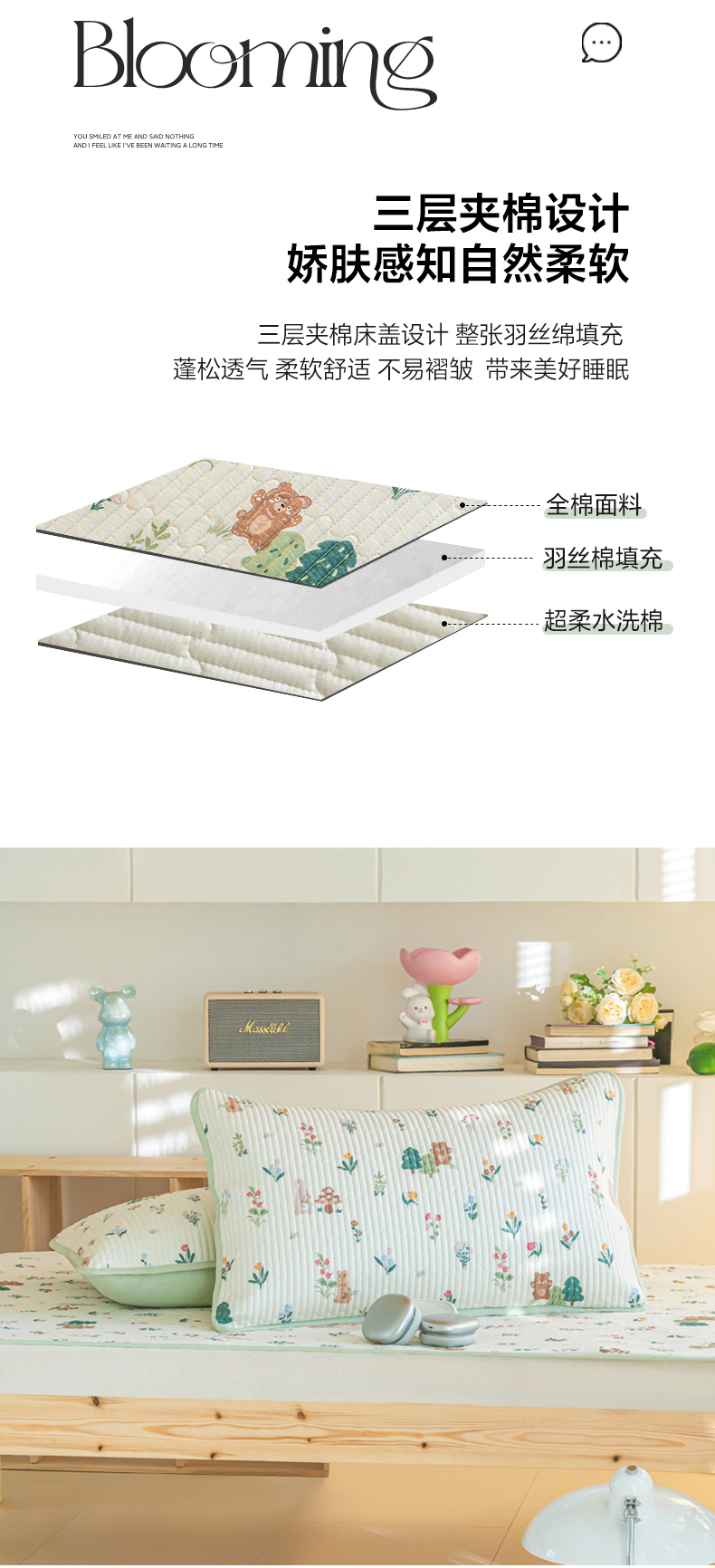 (提供买家秀 爆款花型 不断货)2025新款小清新印花全棉床盖学生床盖套件-跑量款 秘密花园