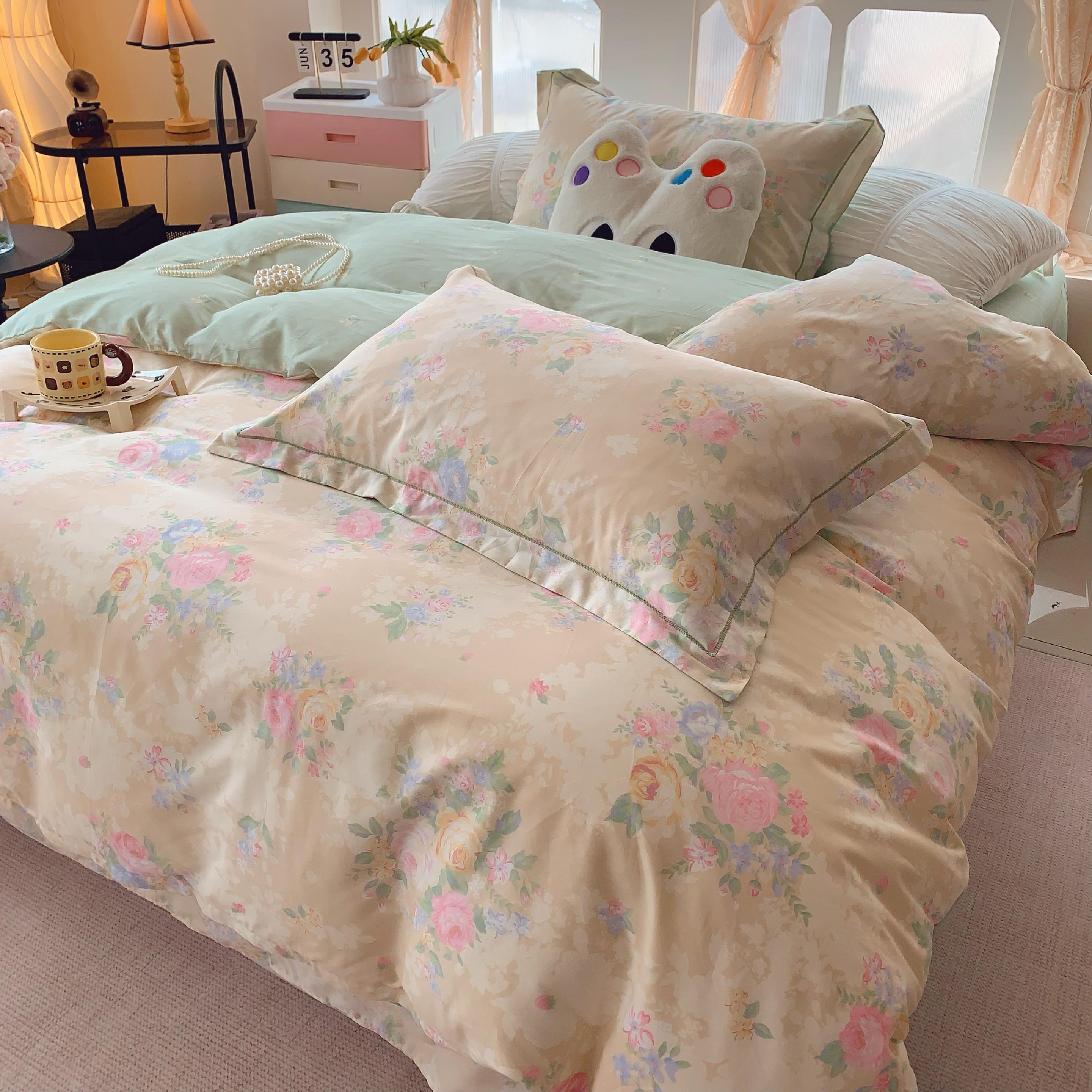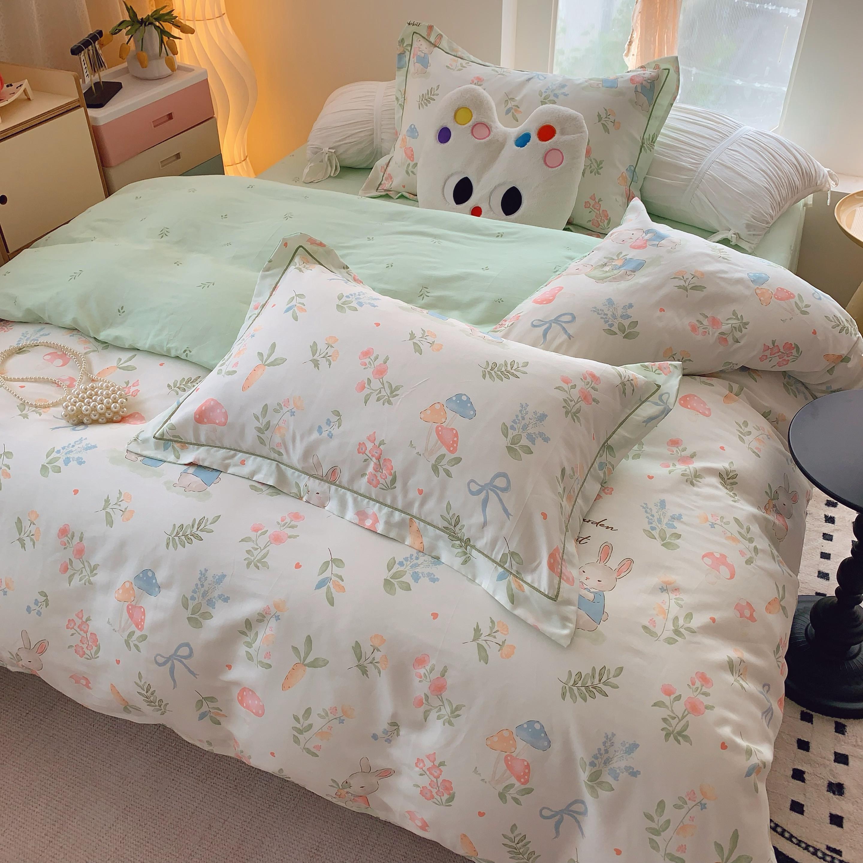 莱豫家纺 2025新款亲肤舒适小清新印花纯棉四件套 沐歌绿