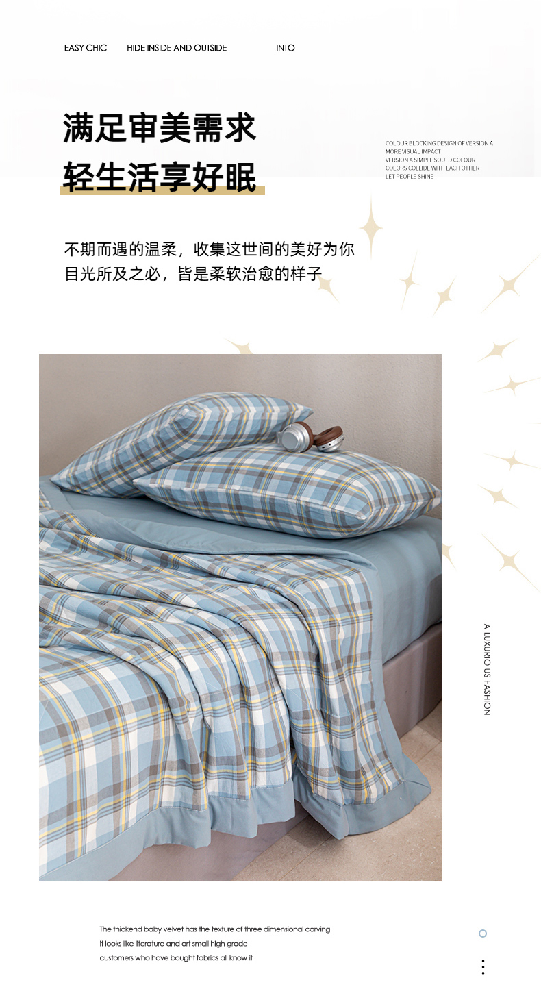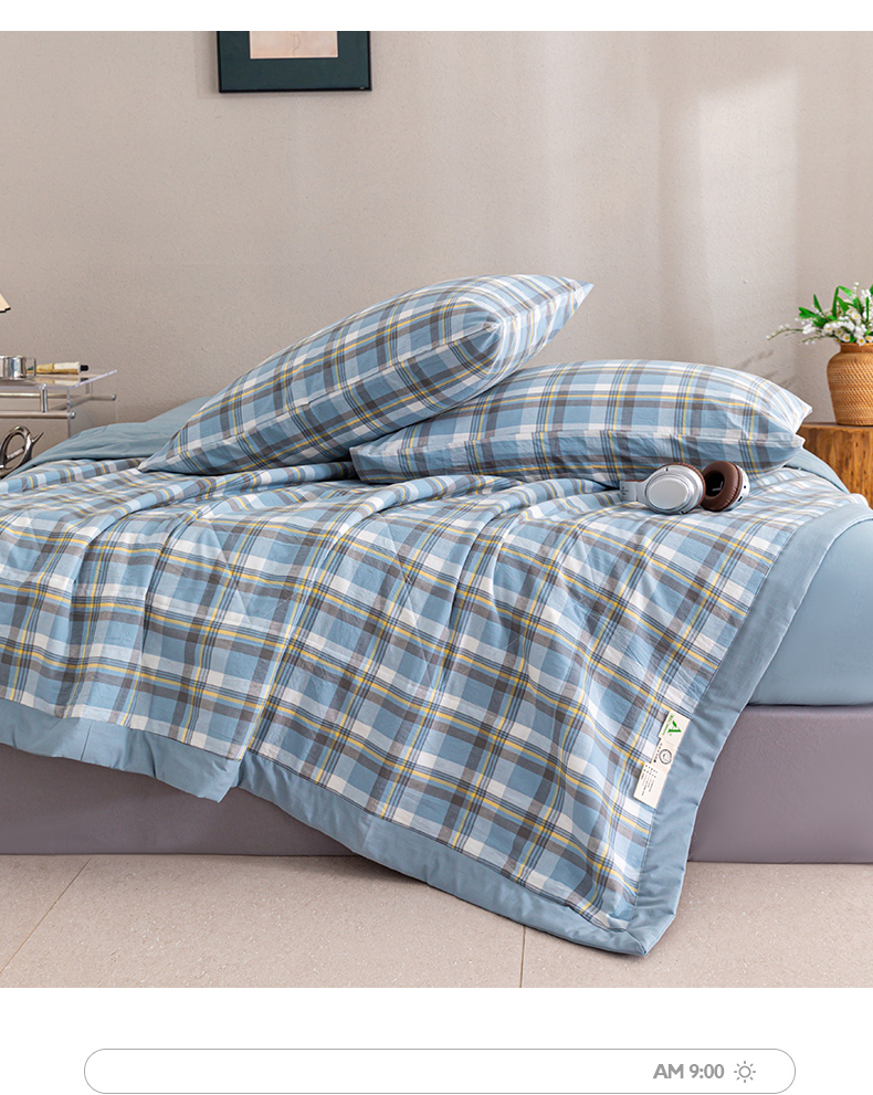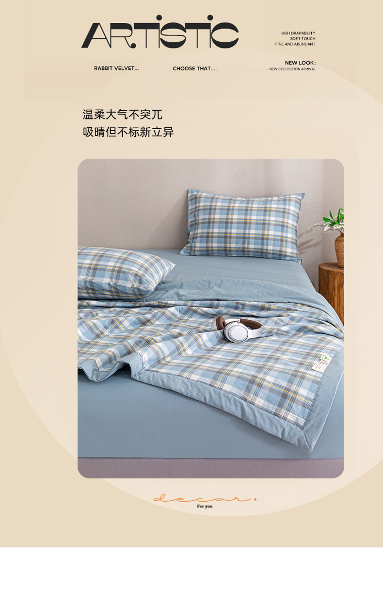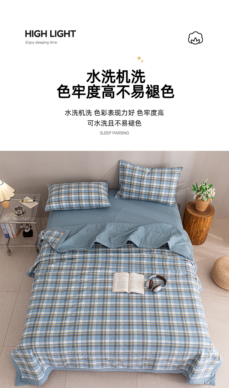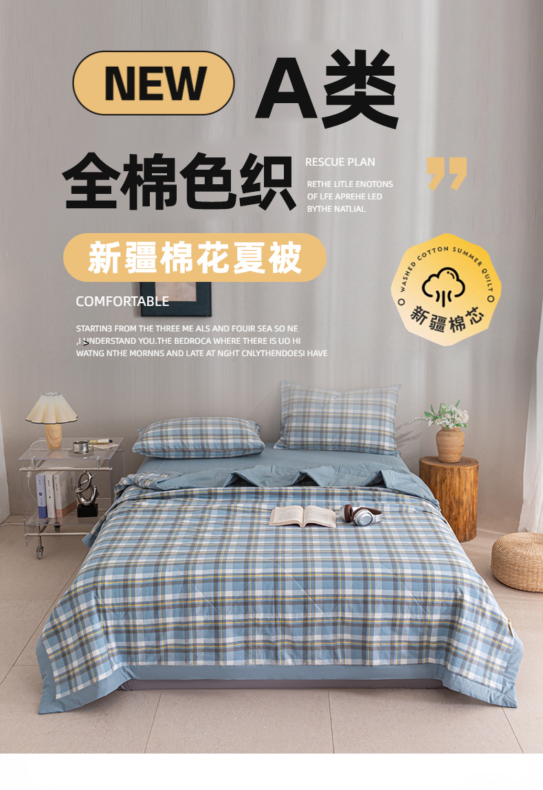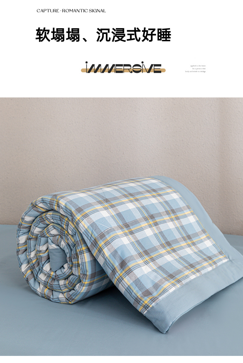 天瑜家纺 2025新款色织全棉水洗棉棉花夏被 莫妮蓝