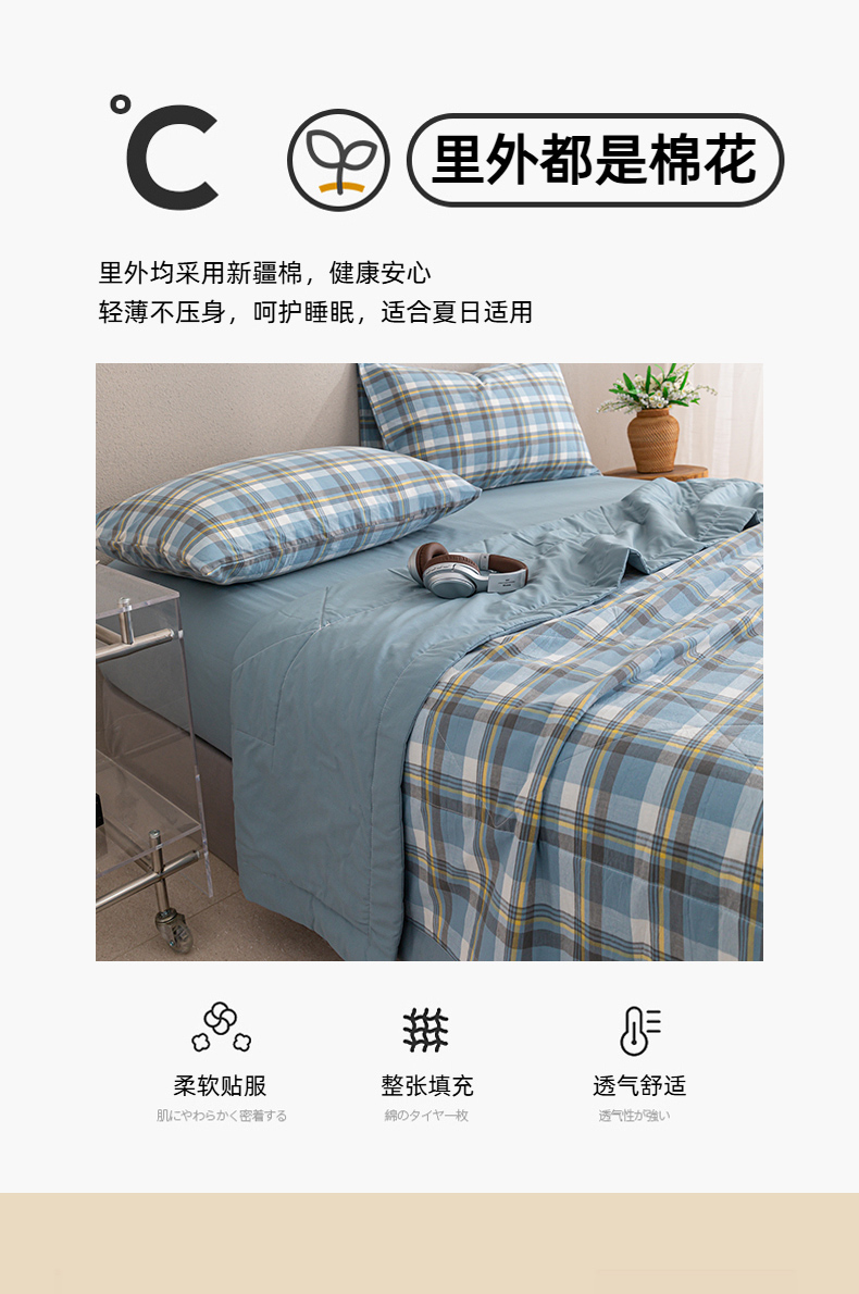 商品名称:天瑜家纺 2025新款色织全棉水洗棉棉花夏被 莫妮蓝