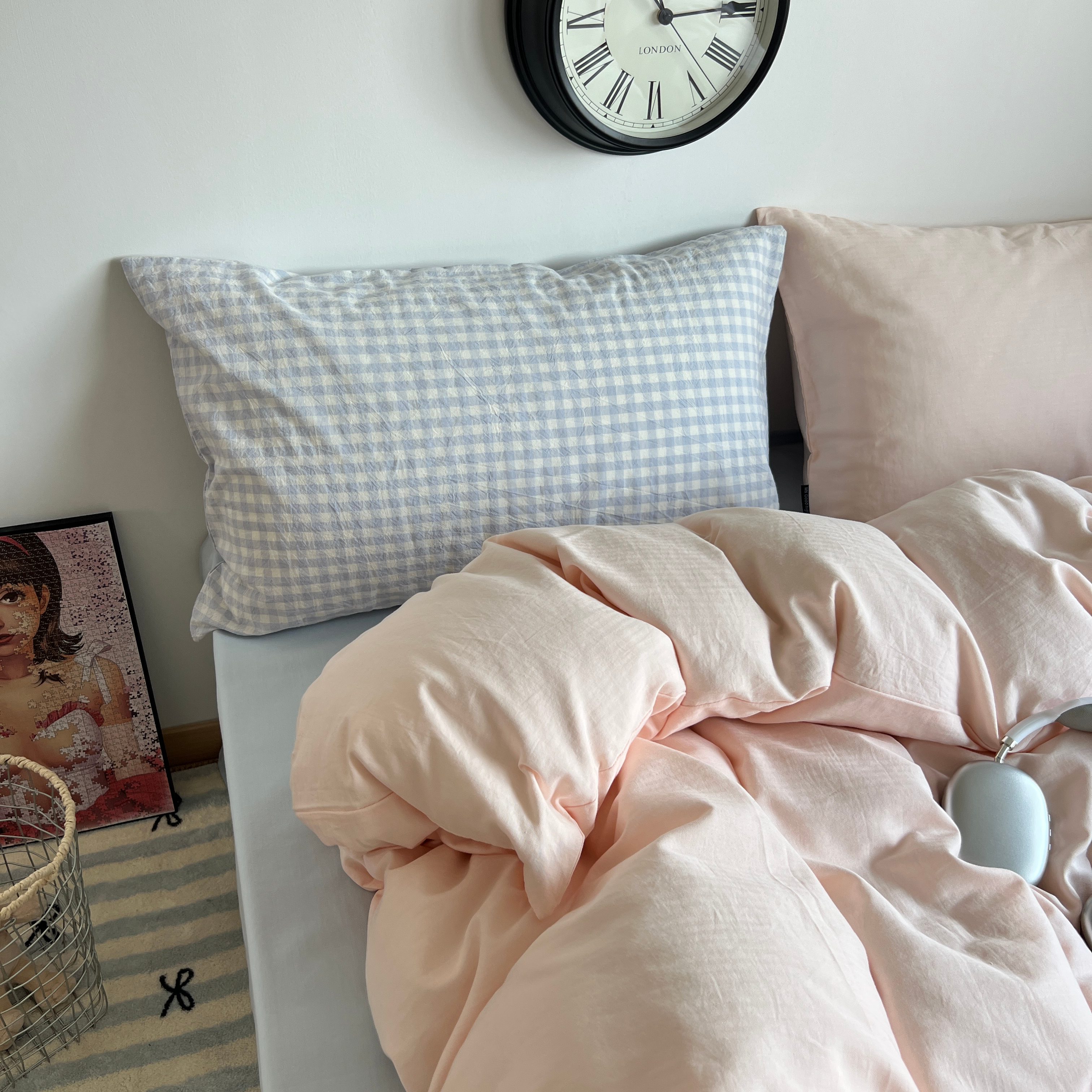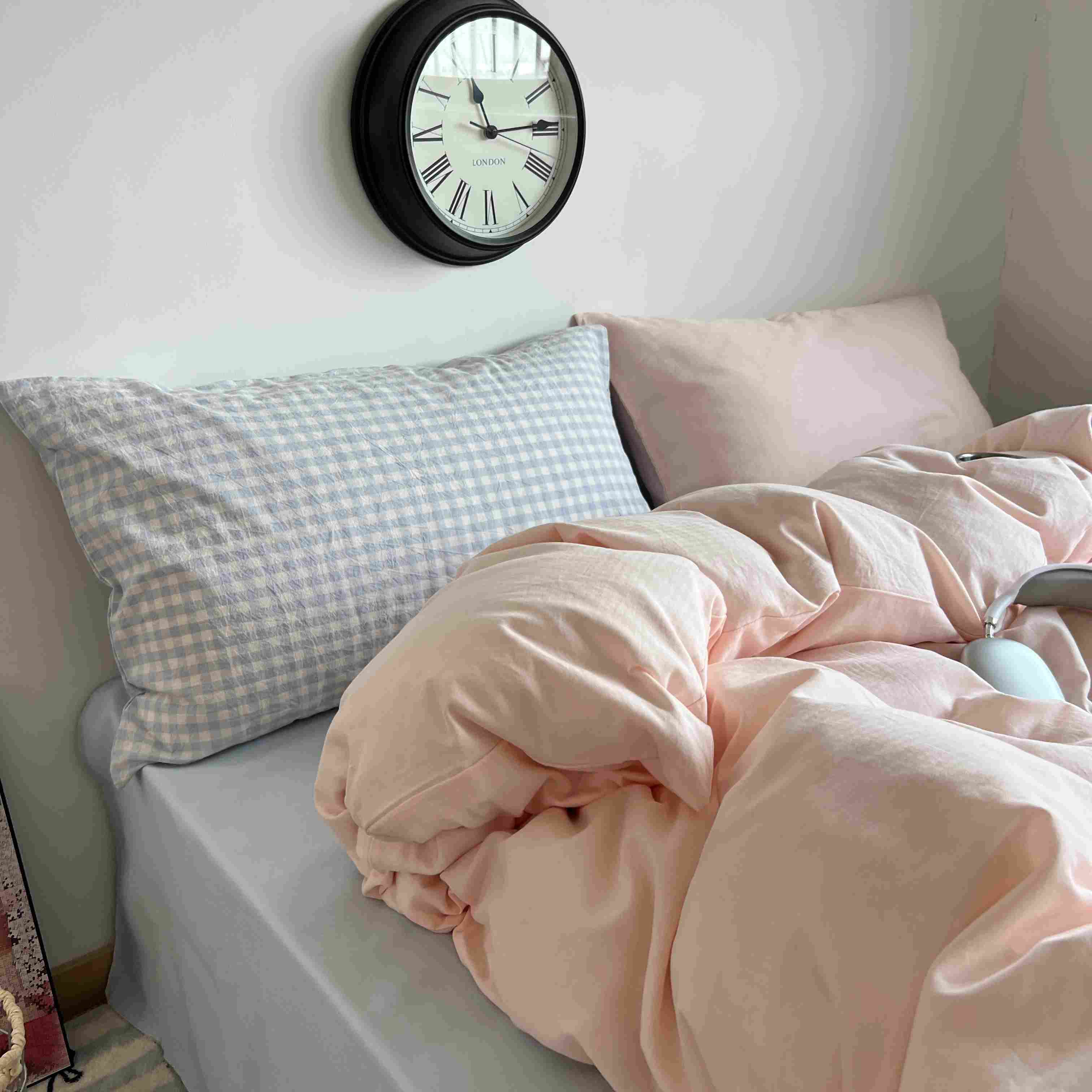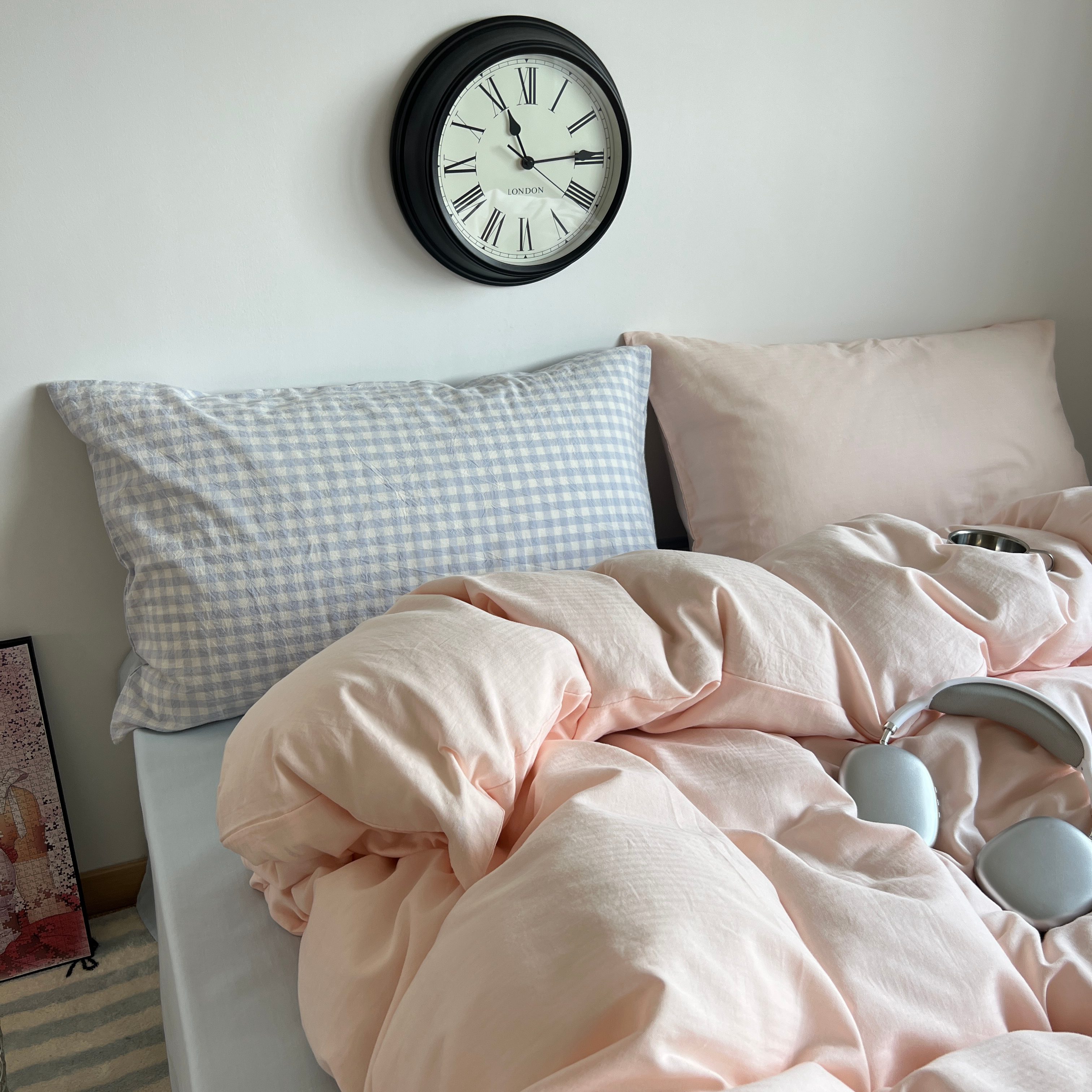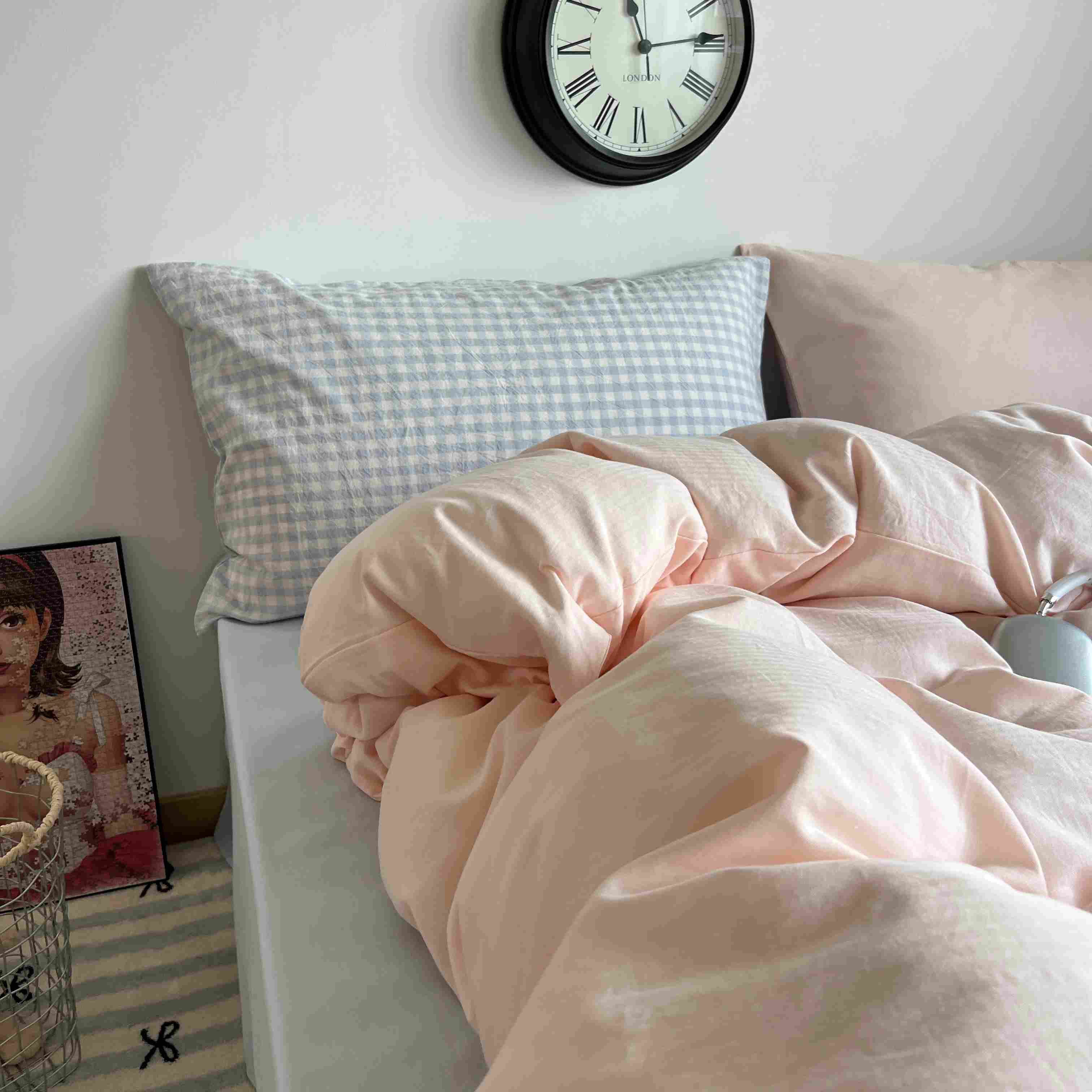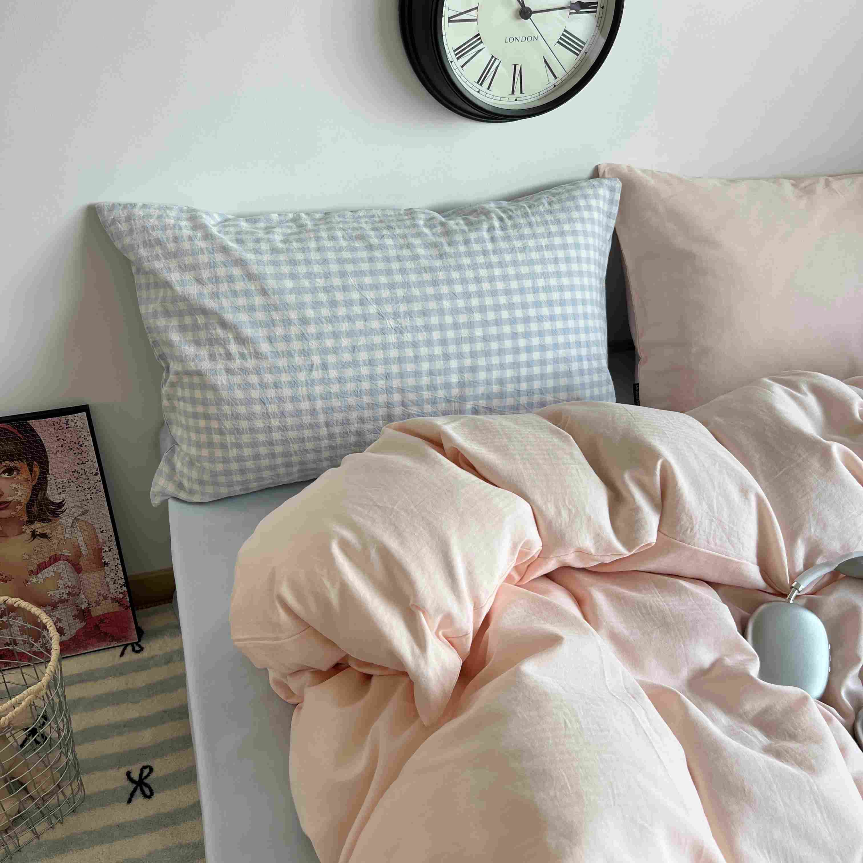 当前位置: 91家纺网 > 商品网购 > 床品套件 > 四件套 > 全棉普通四件套 > 蜜宿 2025新款全棉人字纹四件套(蜜糖少女) 蜜糖少女(蓝小格混搭樱粉)