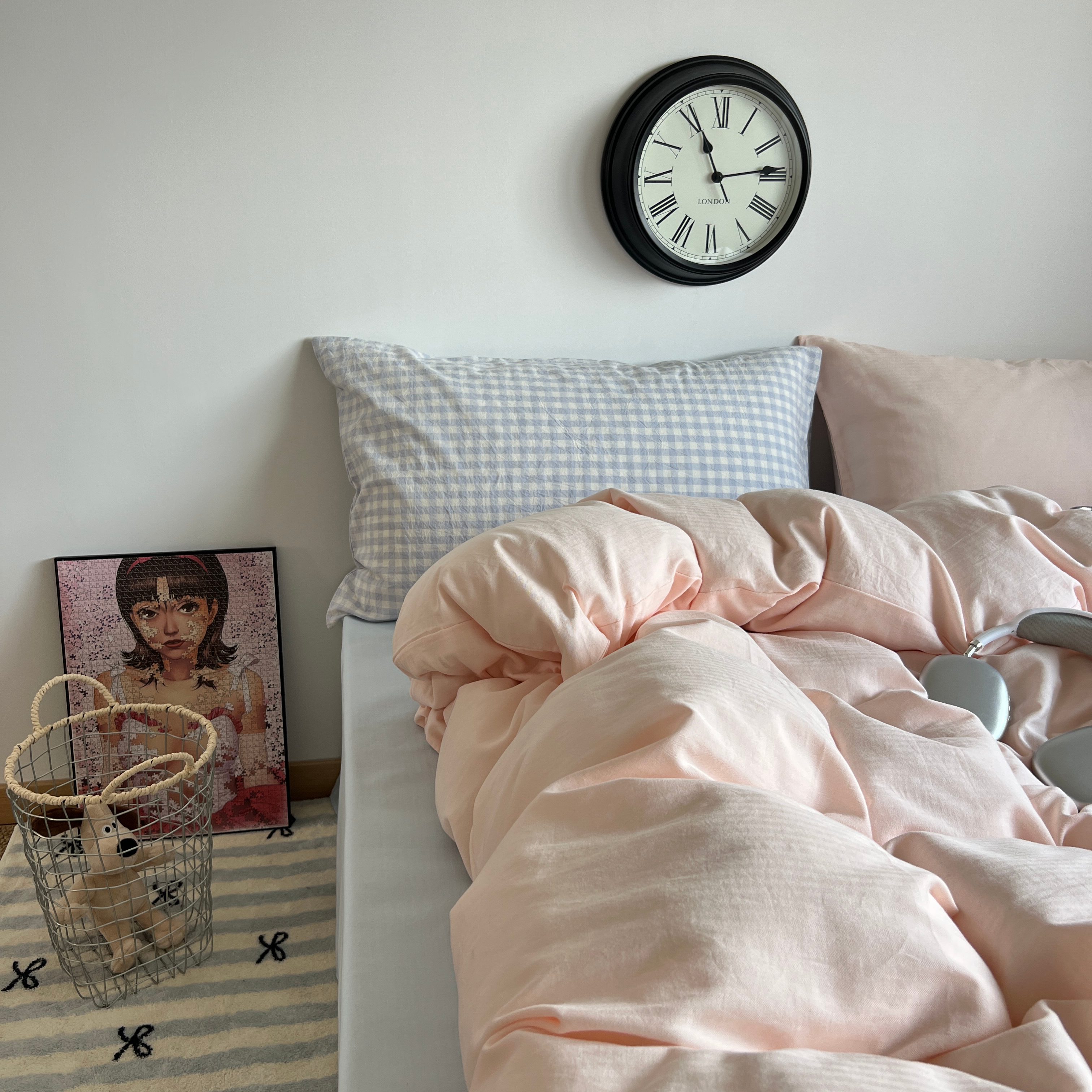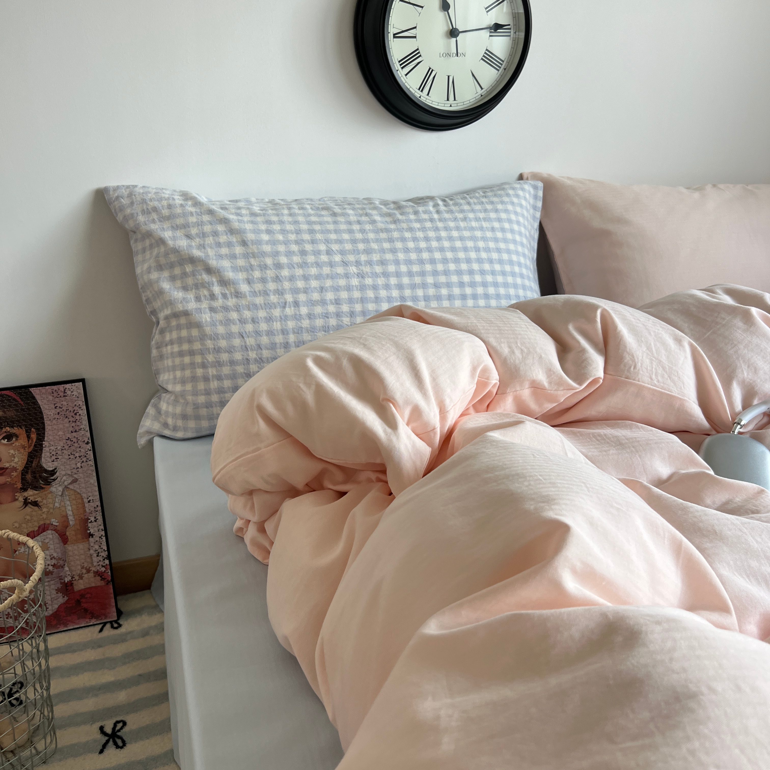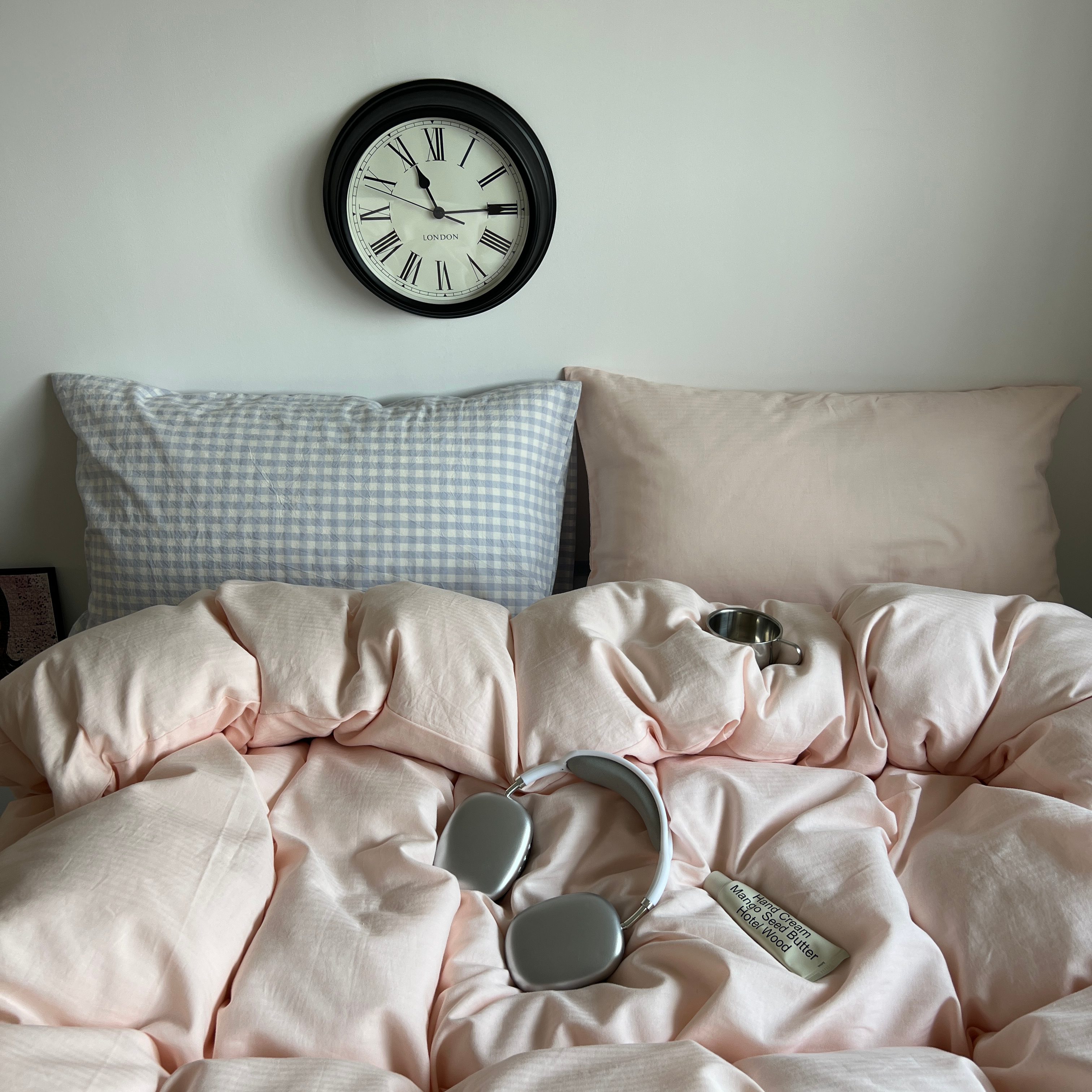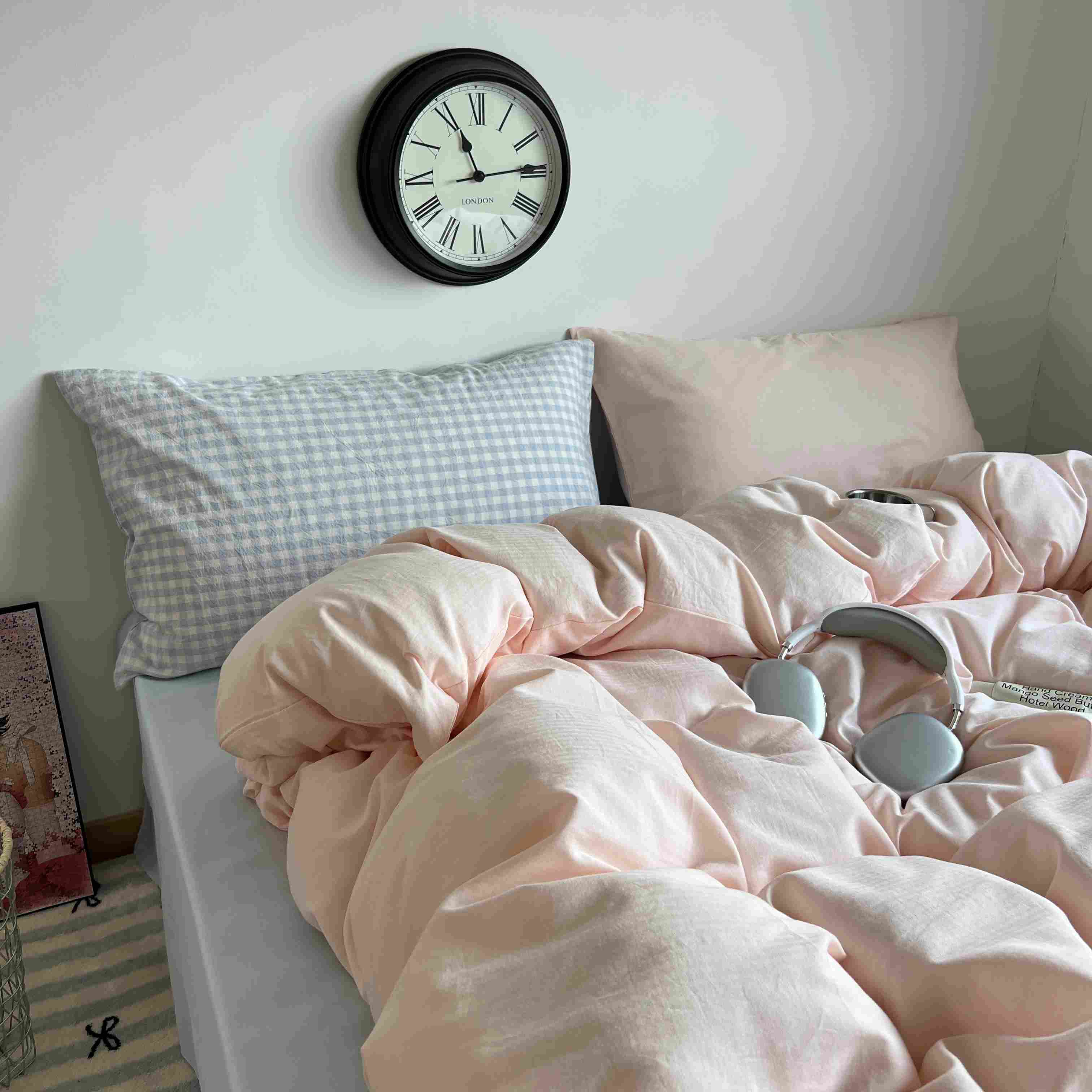 当前位置: 91家纺网 > 商品网购 > 床品套件 > 四件套 > 全棉普通四件套 > 蜜宿 2025新款全棉人字纹四件套(蜜糖少女) 蜜糖少女(蓝小格混搭樱粉)