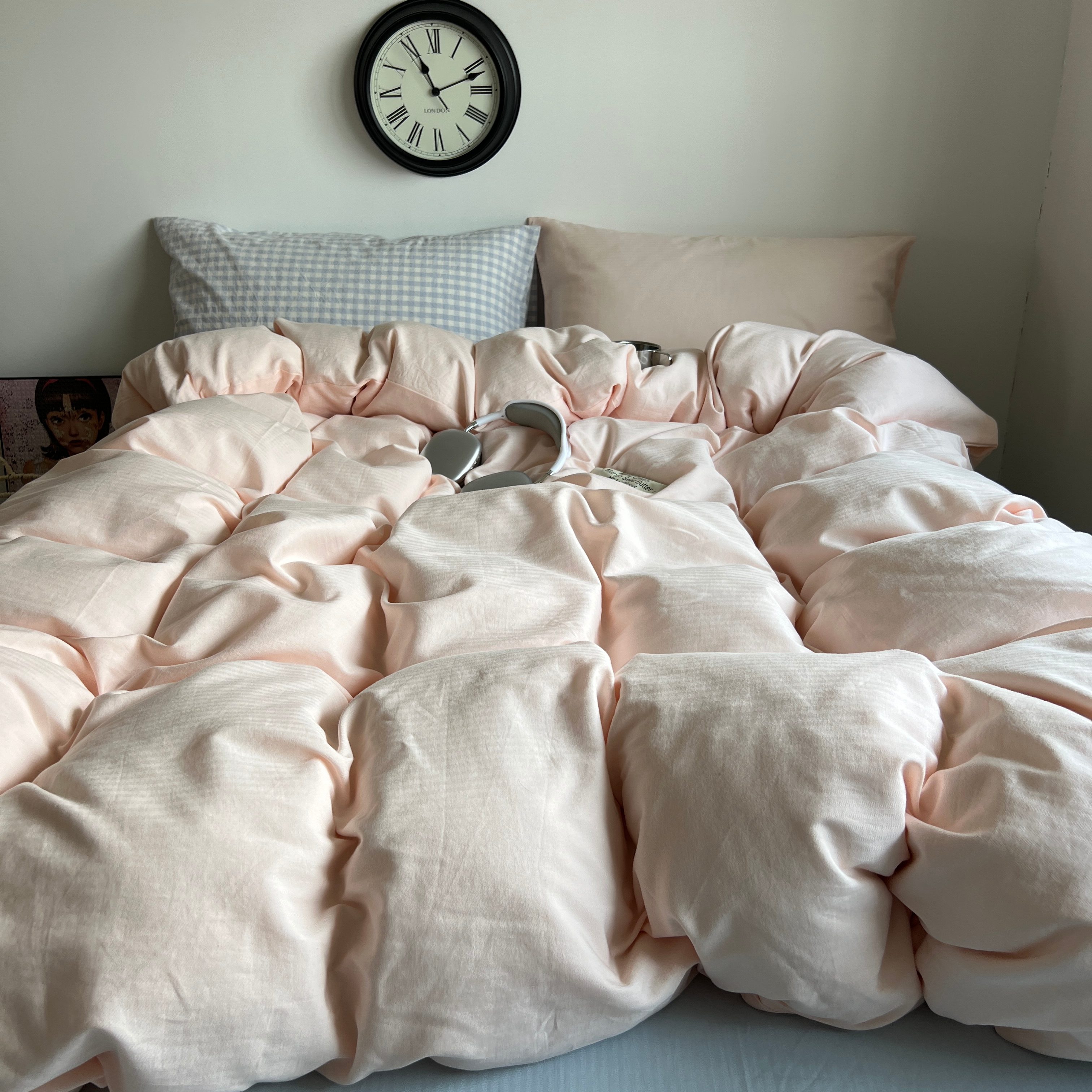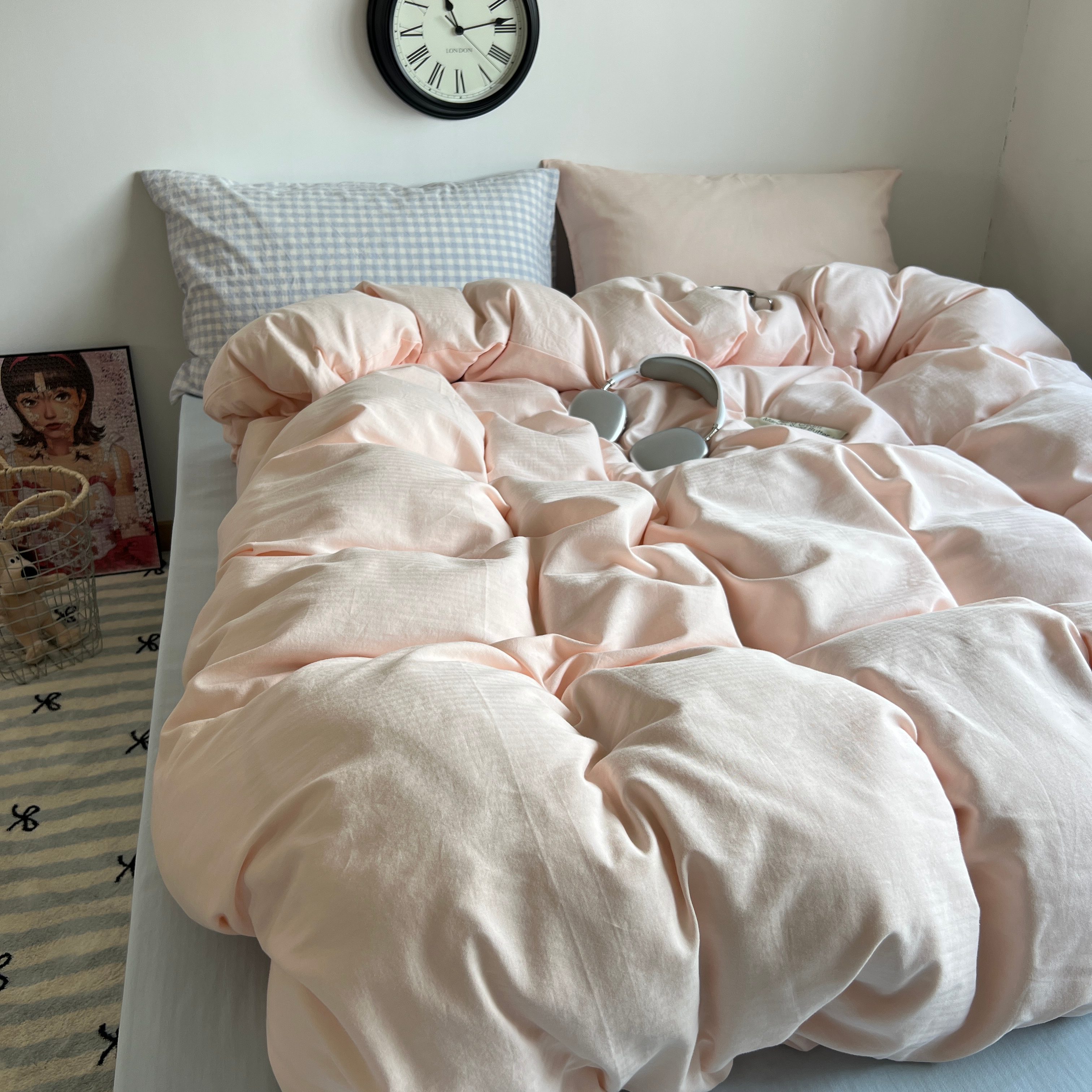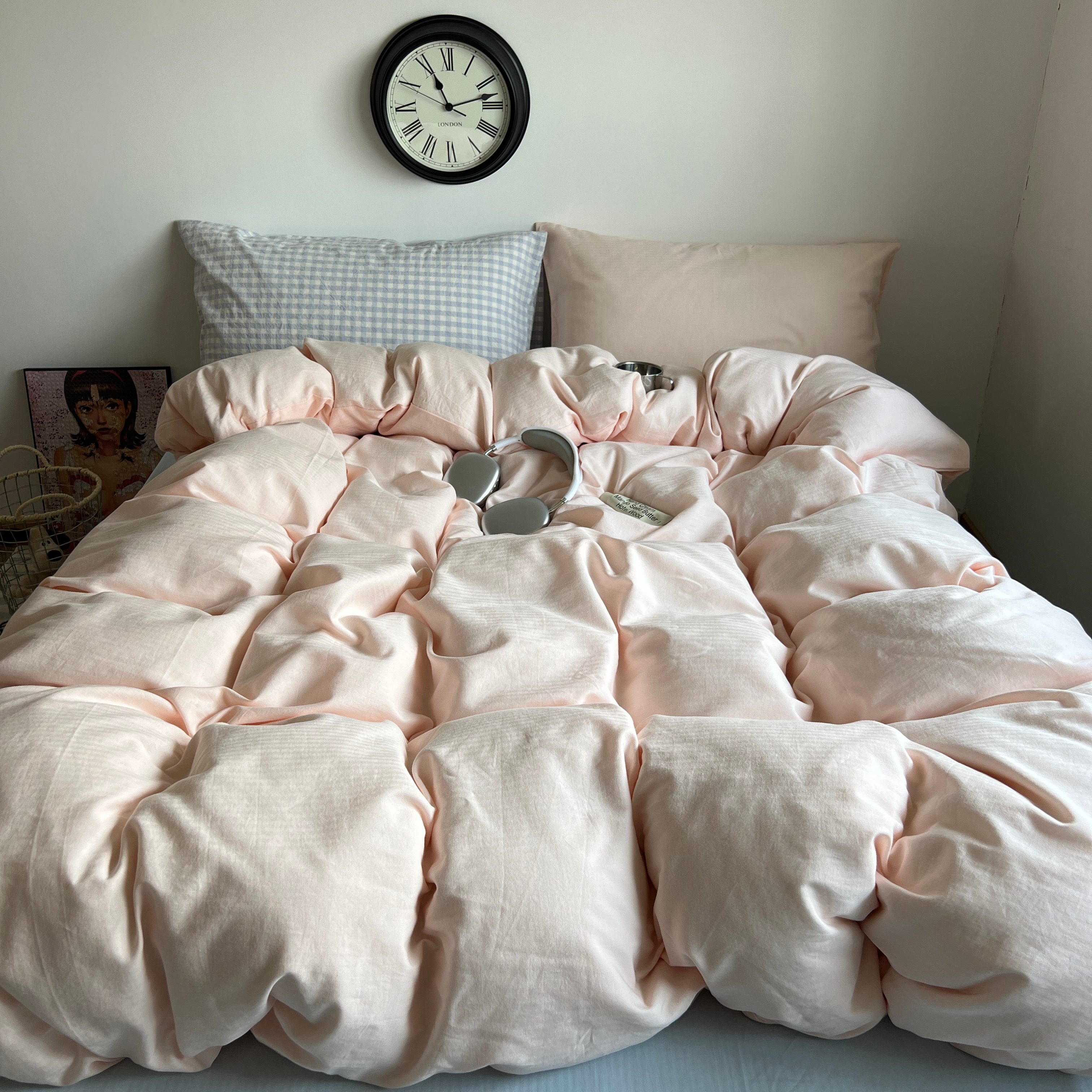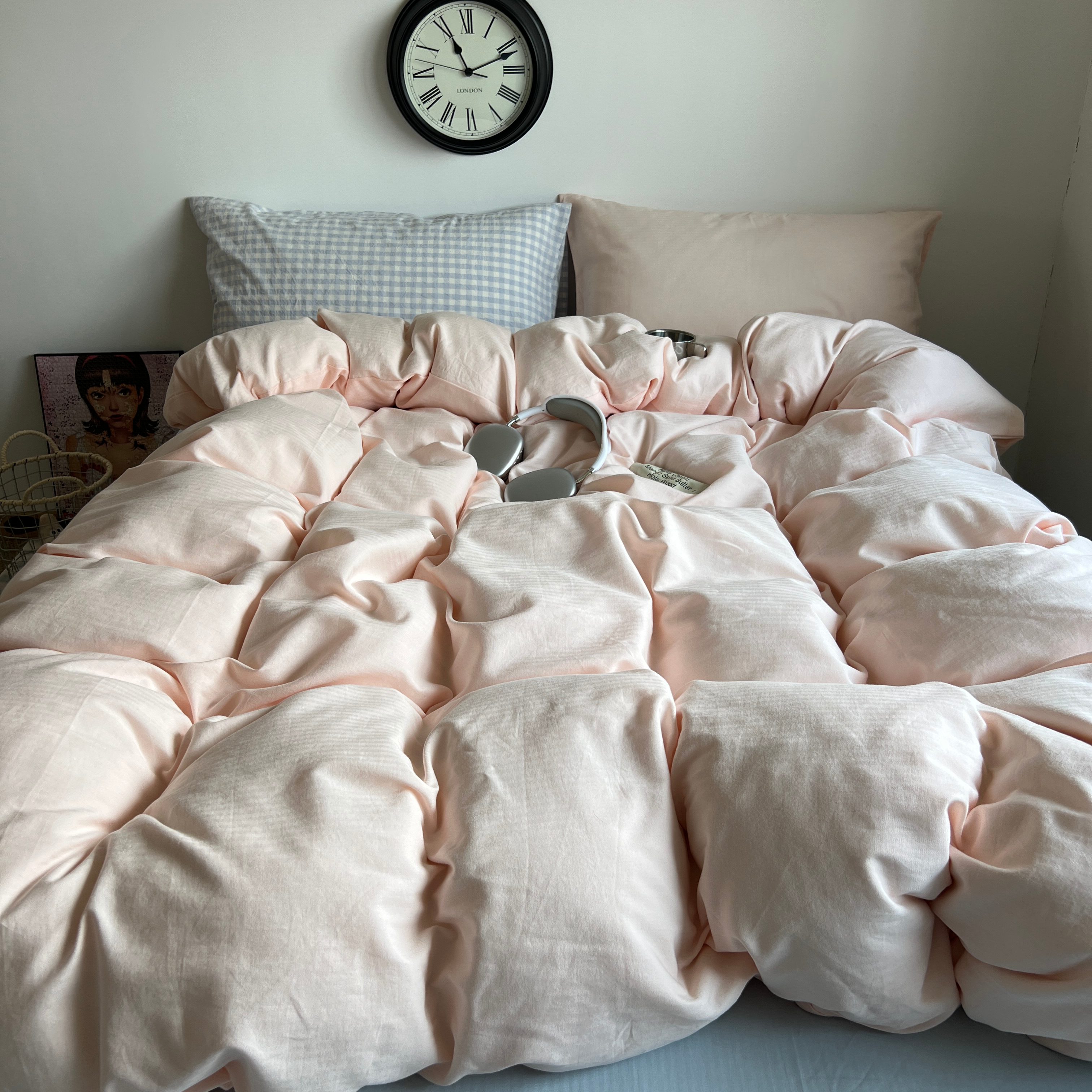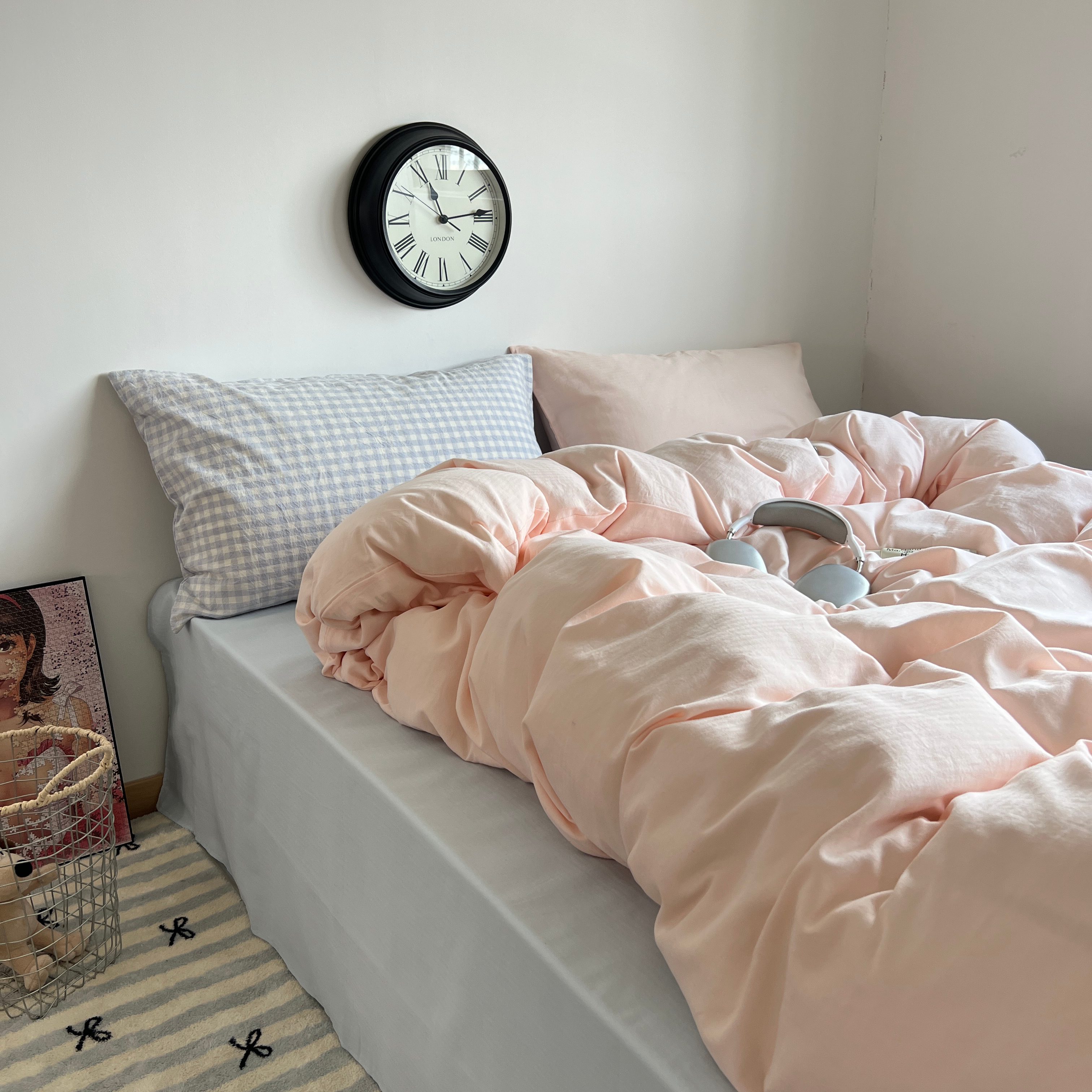 当前位置: 91家纺网 > 商品网购 > 床品套件 > 四件套 > 全棉普通四件套 > 蜜宿 2025新款全棉人字纹四件套(蜜糖少女) 蜜糖少女(蓝小格混搭樱粉)