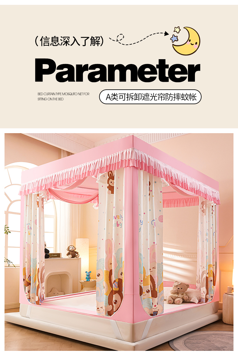 当前位置: 91家纺网 > 商品网购 > 床上用品 > 蚊帐 > 坐床式蚊帐 > 浪幔纱蚊帐 2025新款A类可拆卸床单全底防摔蚊帐遮光床帘一体式回底拉链坐床 可爱乐园【回底款】