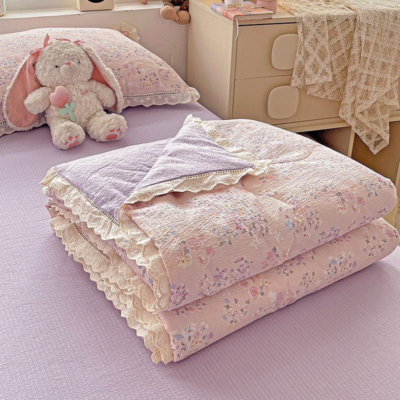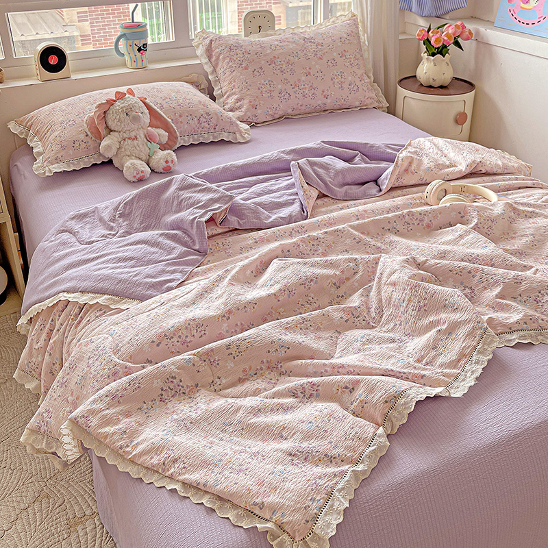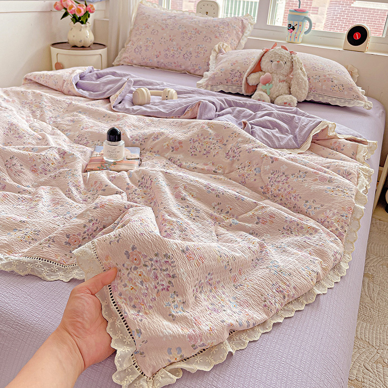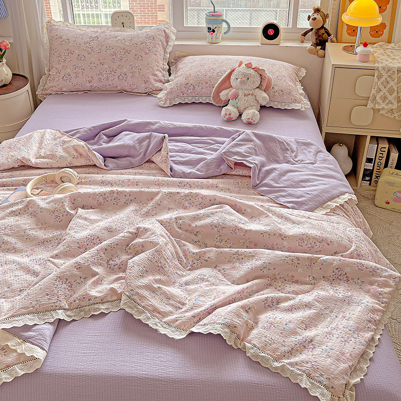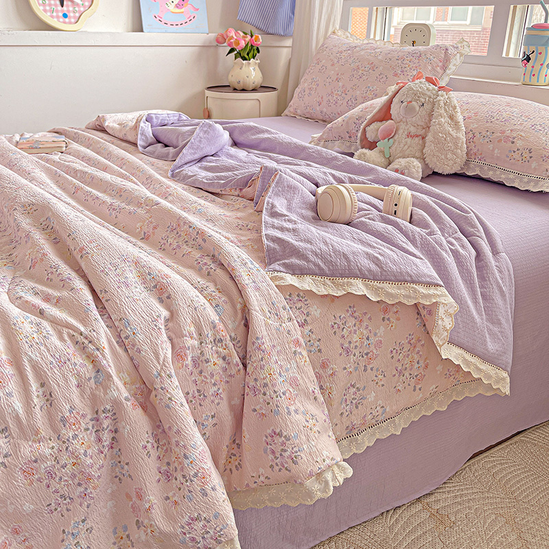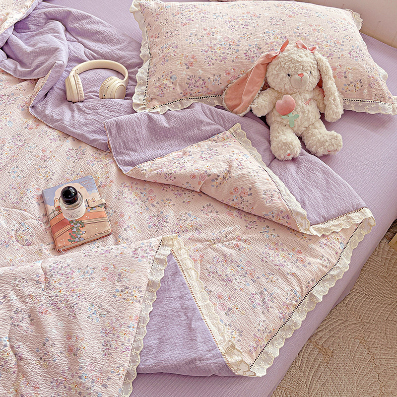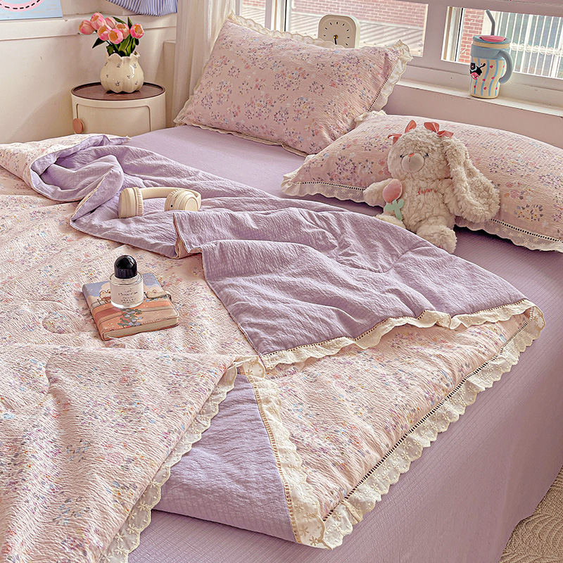 当前位置: 91家纺网 > 商品网购 > 床品套件 > 四件套 > 夏被四件套 > 恋之语 2025春夏新款云感全棉纯棉花边款夏被夏凉被空调被四件套套件 若欢-紫