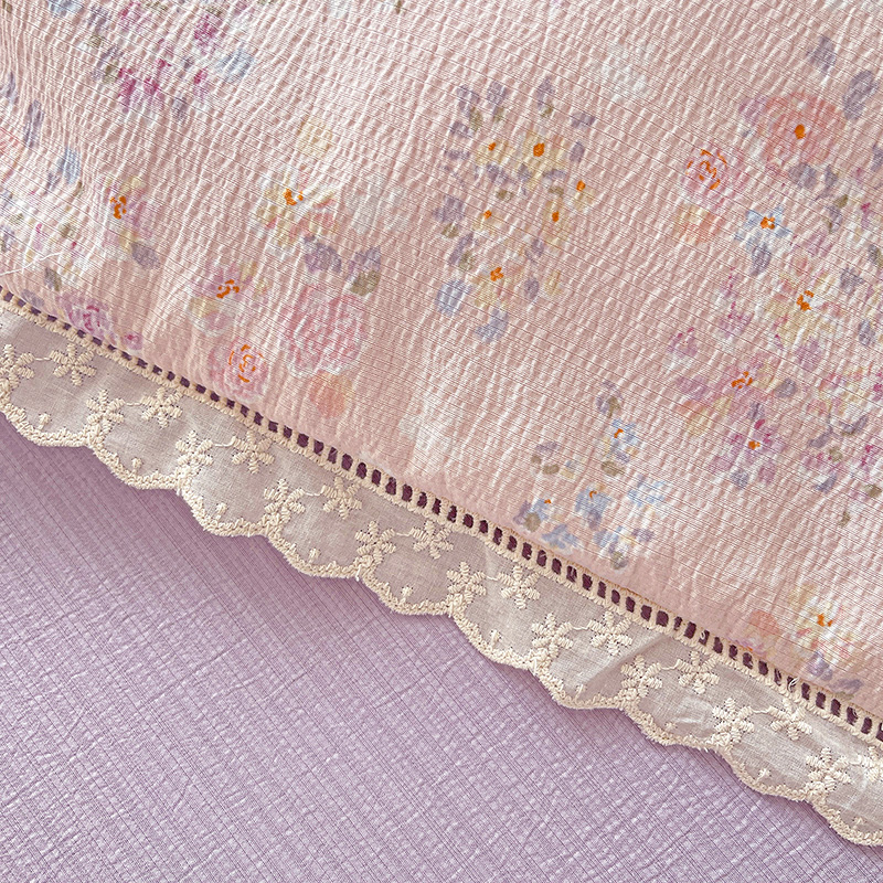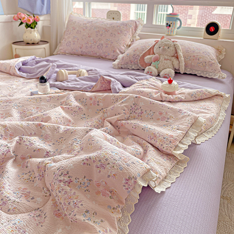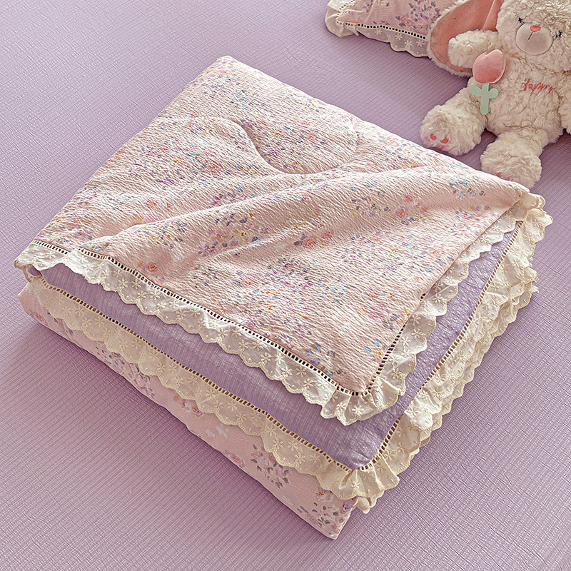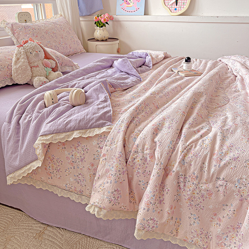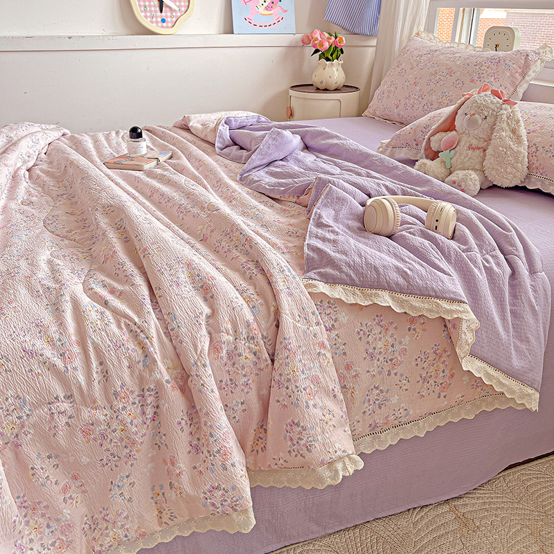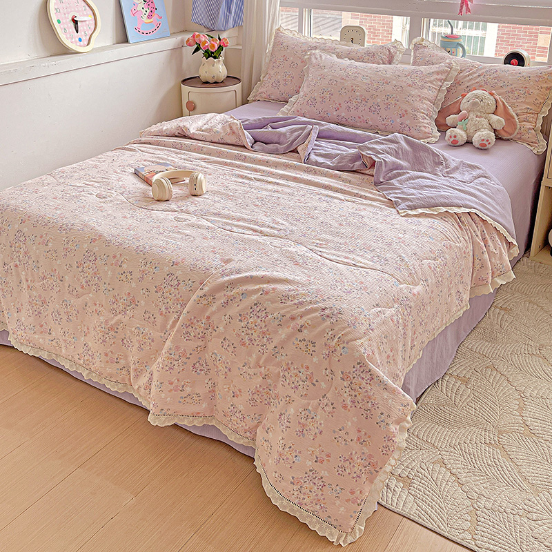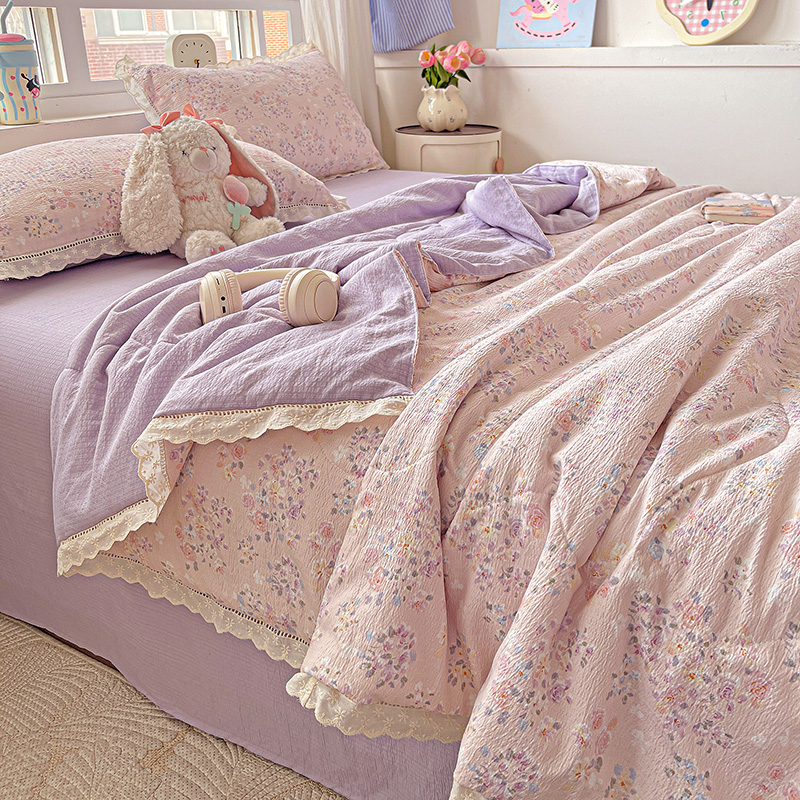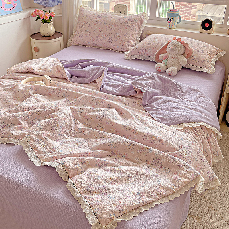 当前位置: 91家纺网 > 商品网购 > 床品套件 > 四件套 > 夏被四件套 > 恋之语 2025春夏新款云感全棉纯棉花边款夏被夏凉被空调被四件套套件 若欢-紫