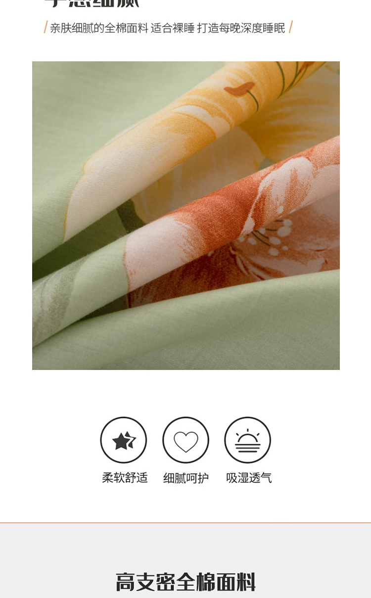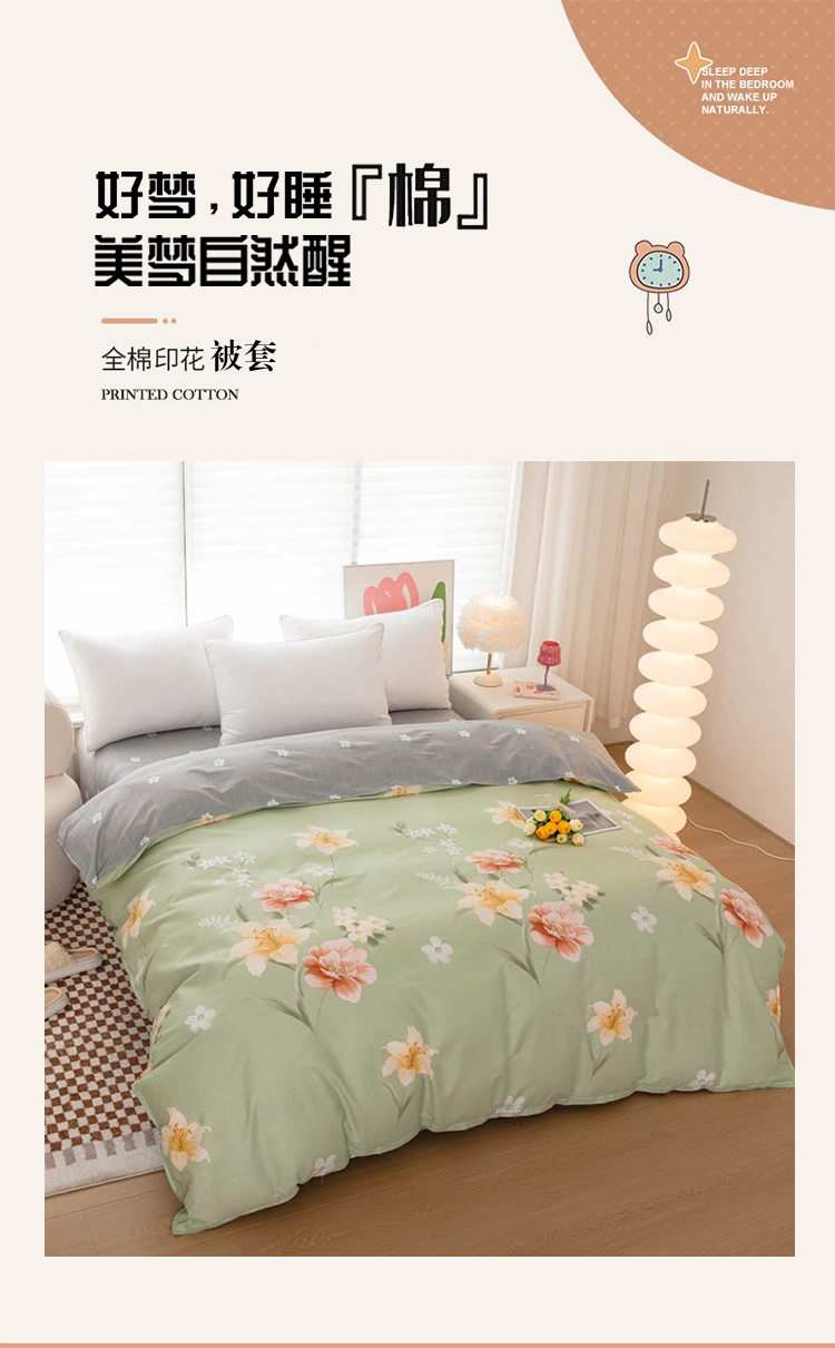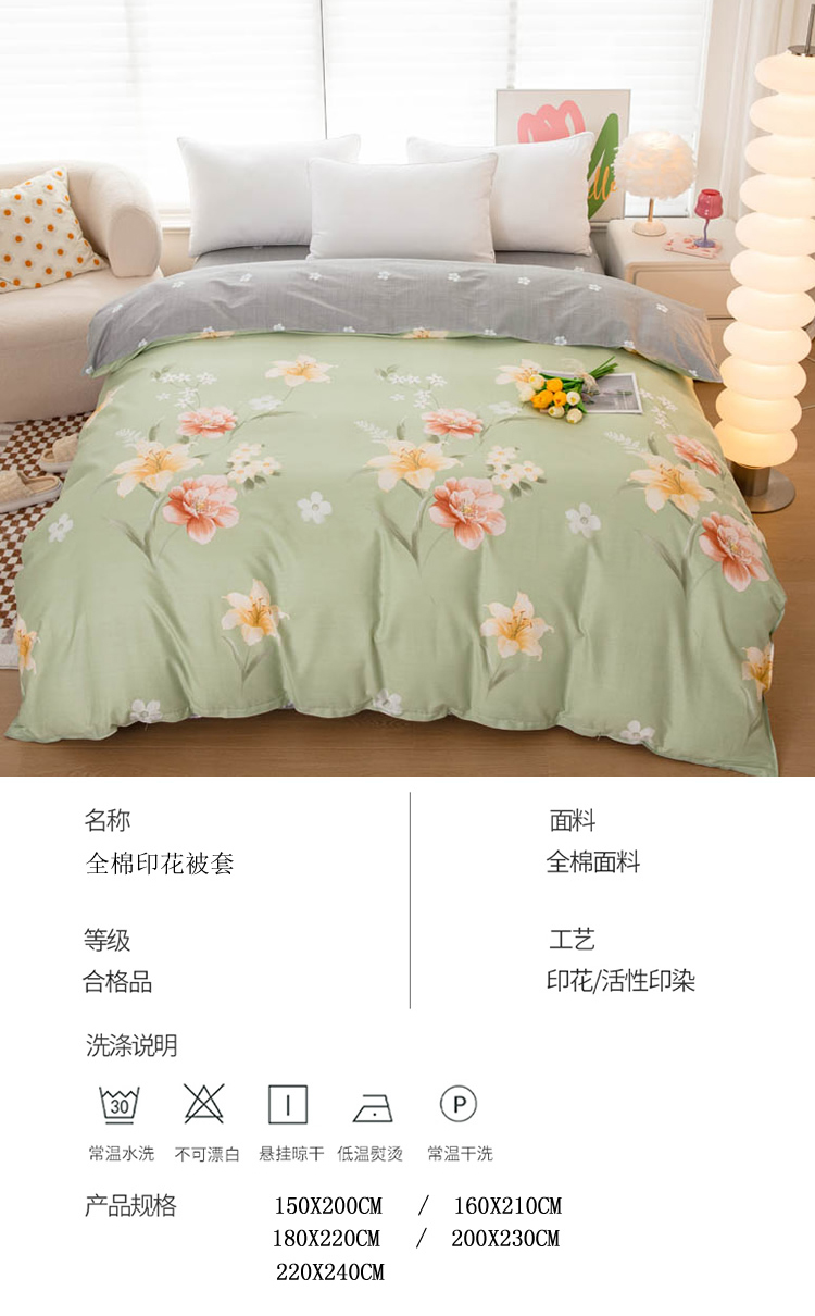 商品名称:贝兰仙奴 2025春夏新款全棉纯棉12868印花单被套 被套单件 圣洁绿