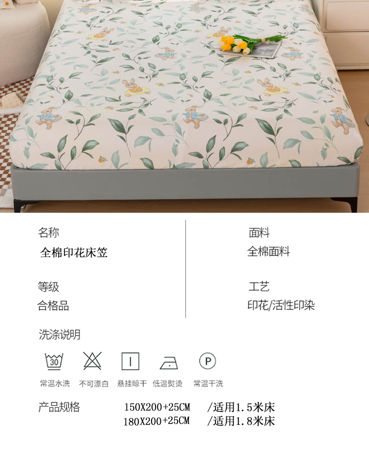 商品名称:贝兰仙奴 2025春夏新款全棉纯棉12868印花单床笠 床笠单件 如期