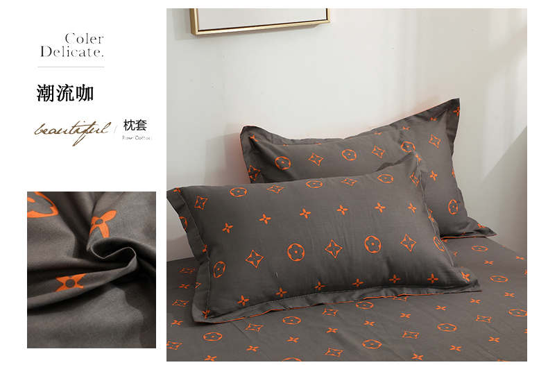 商品名称:贝兰仙奴 2025春夏新款全棉纯棉12868印花单枕套 枕套单件 潮流咖