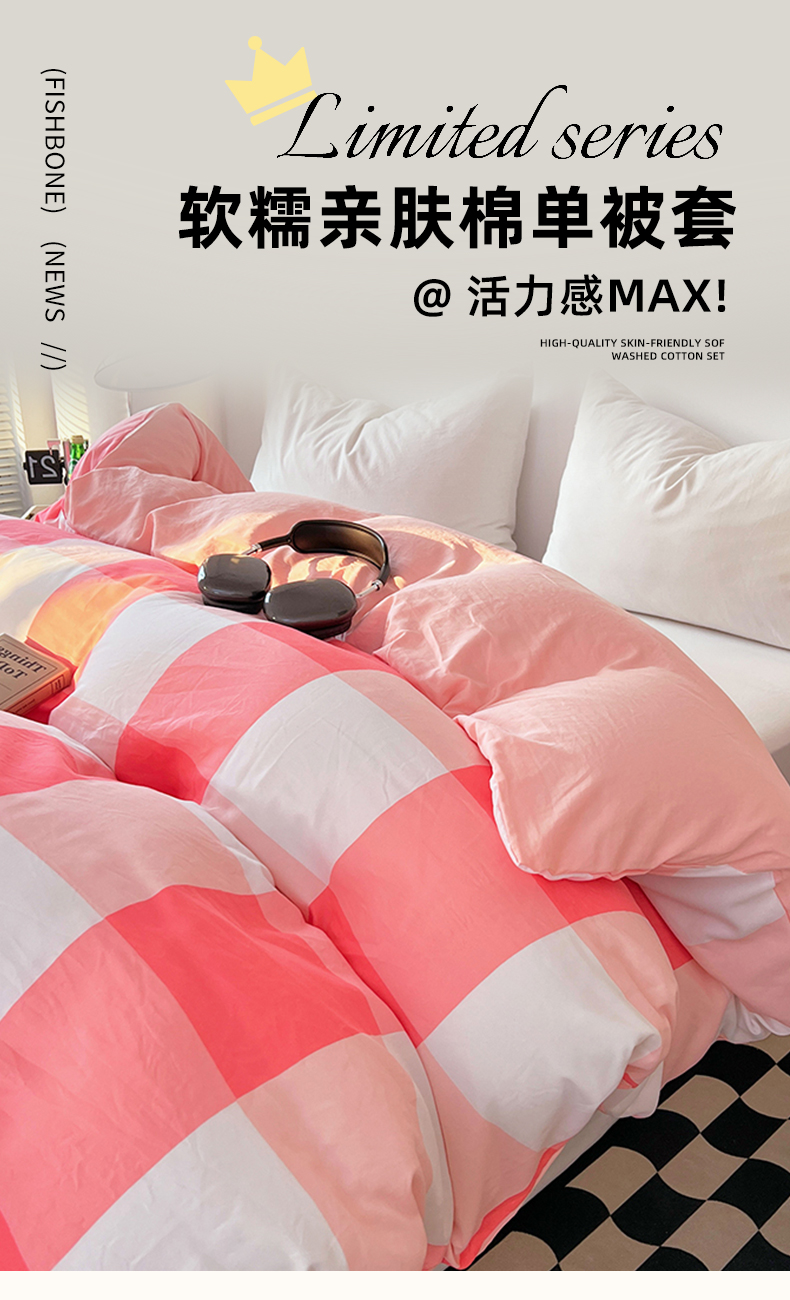 (总)(总)2025新款无印风印花水洗棉单被套软糯亲肤被套床单枕套单品系列床上用品