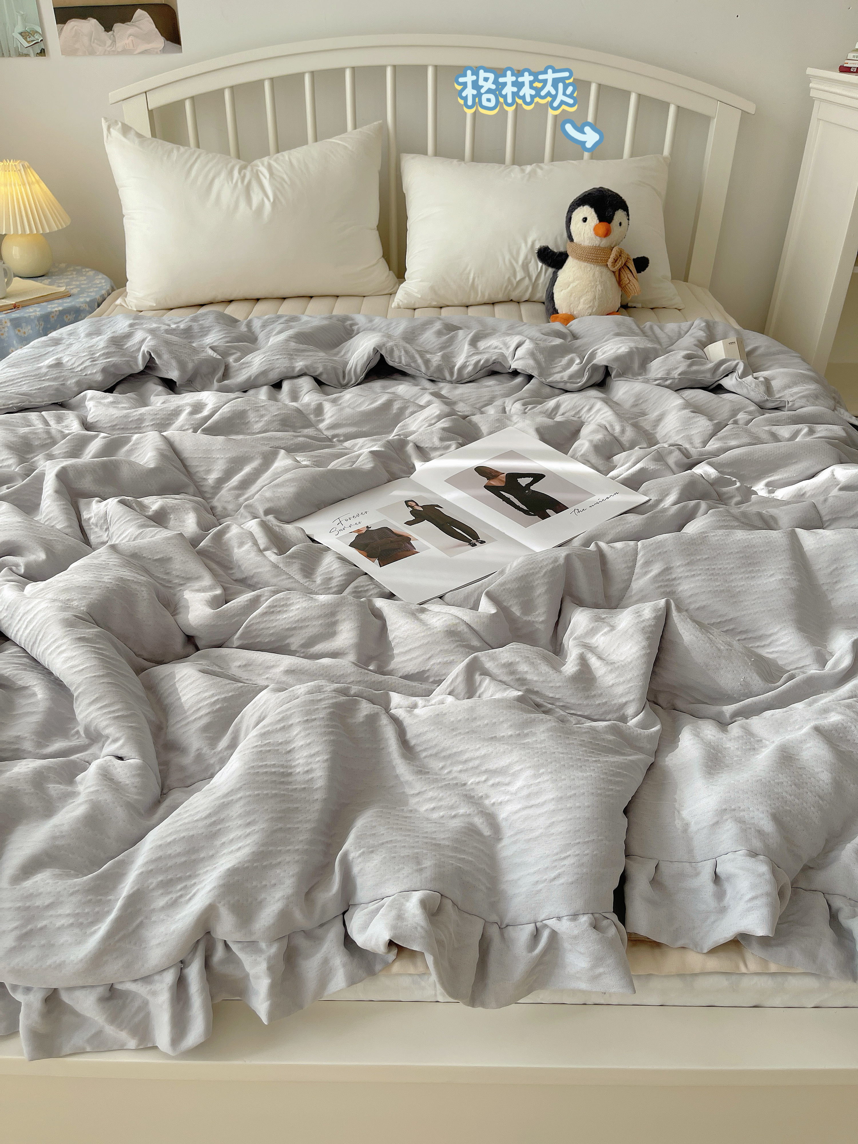 商品名称:顾里家纺 2025春夏新款韩系花边皱皱纱夏被夏凉被空调被 格林灰