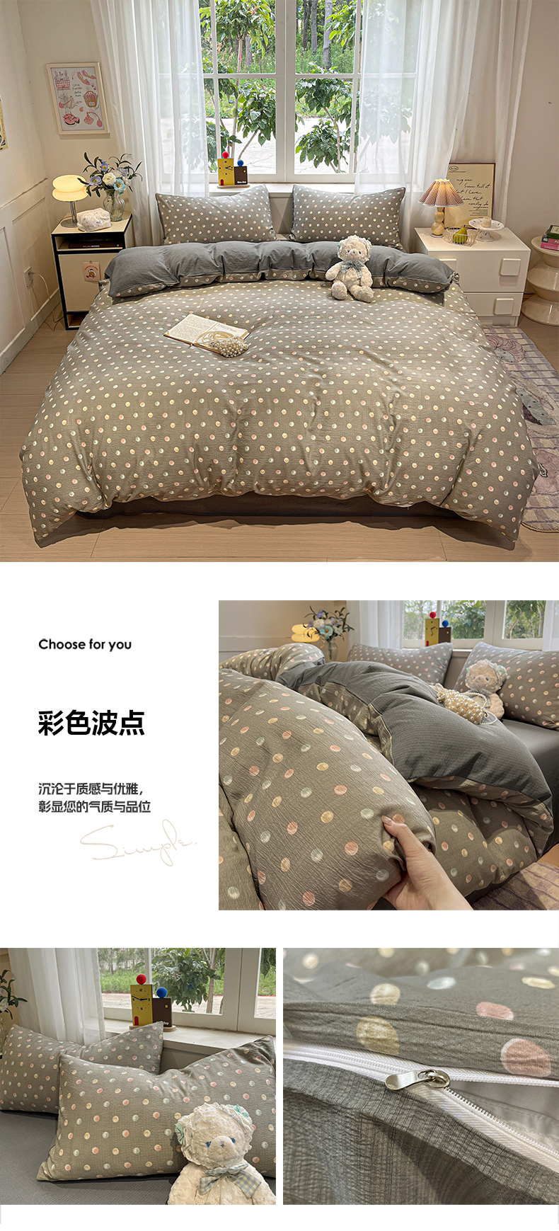 当前位置: 91家纺网 > 商品网购 > 床品套件 > 四件套 > 全棉普通四件套 > 王朝国际 2026爆款皱皱双层纱四件套彩色波点