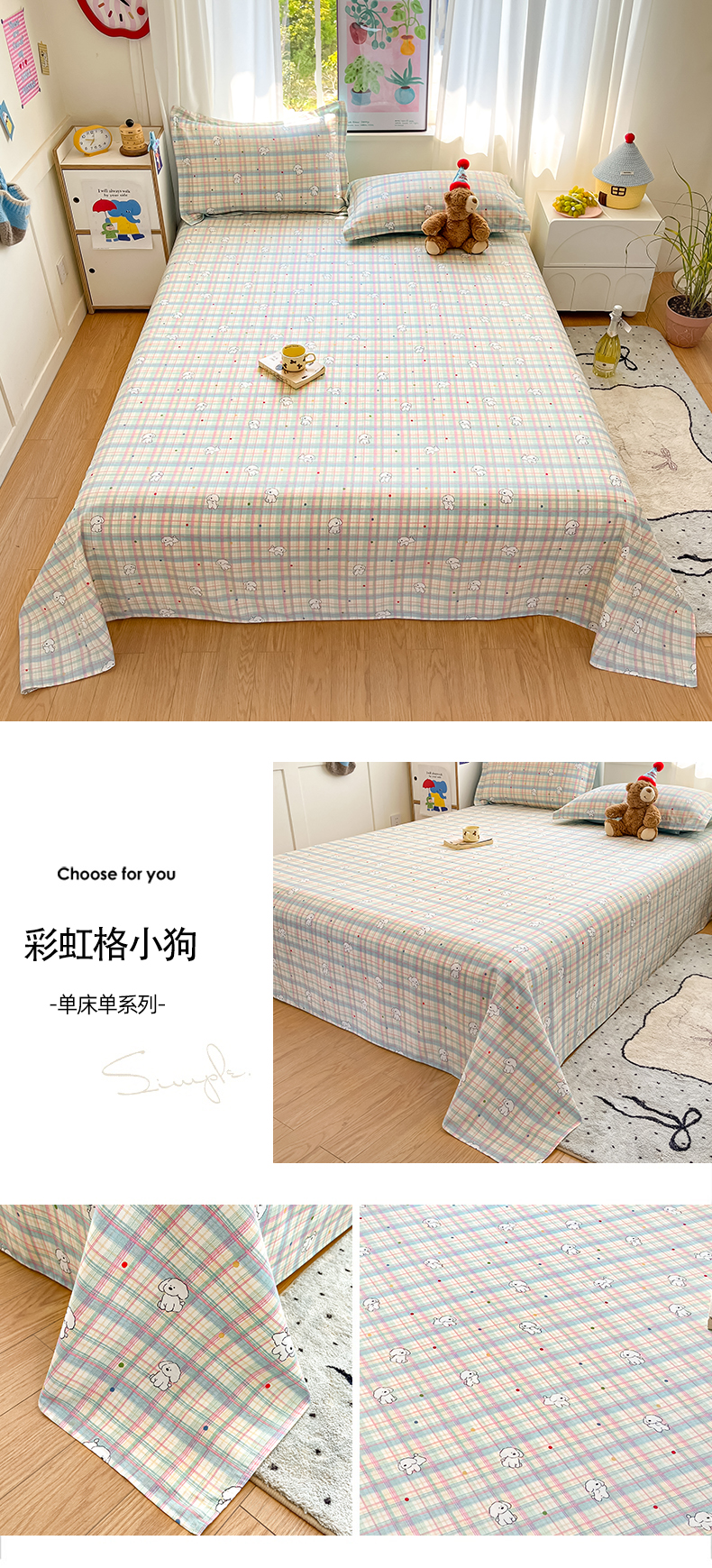 2025新款全棉印花小清新单品系列-单床单彩虹格小狗