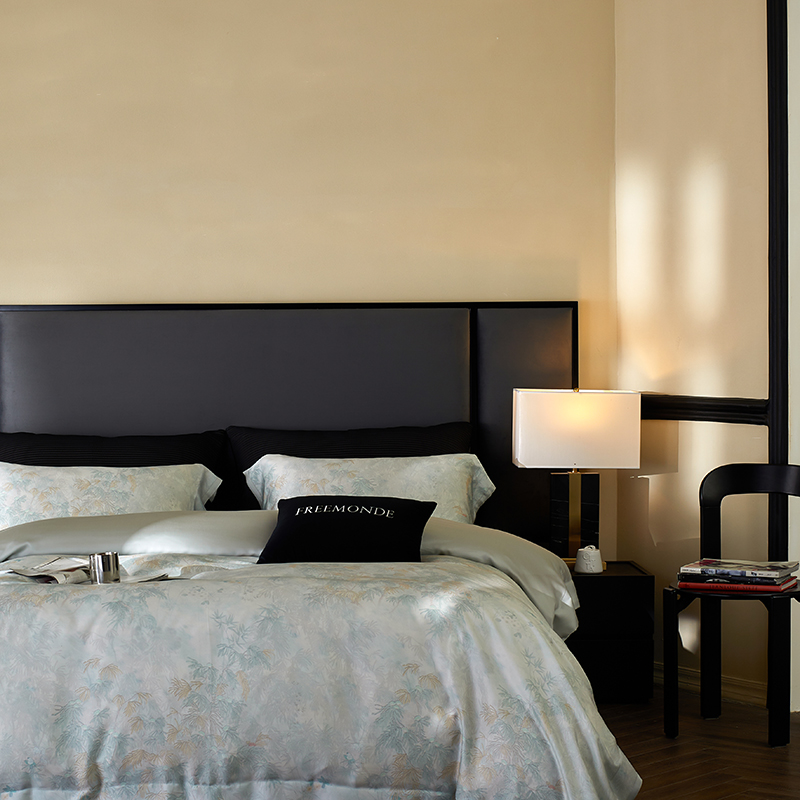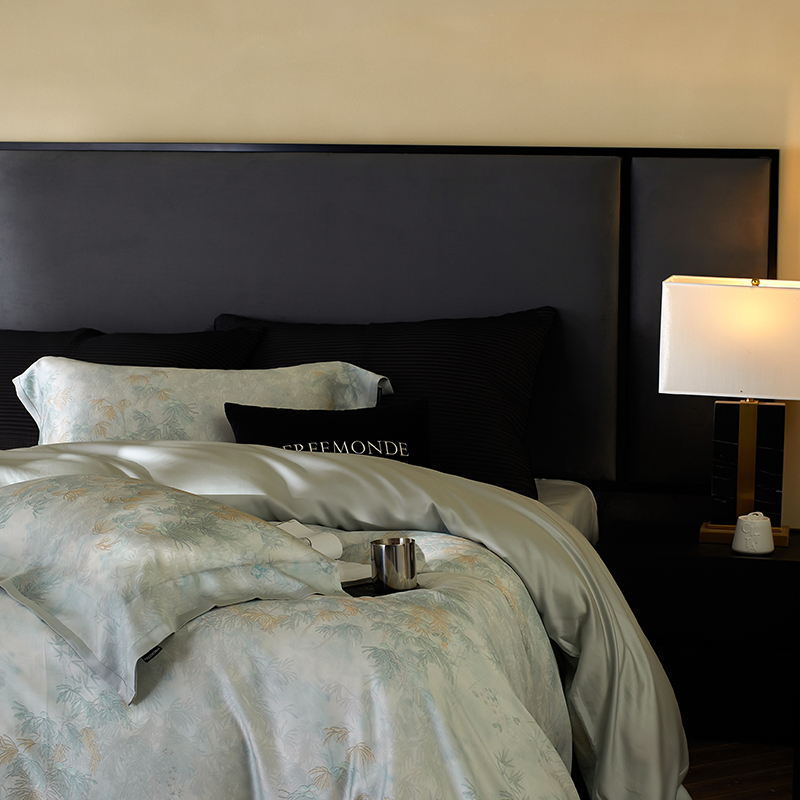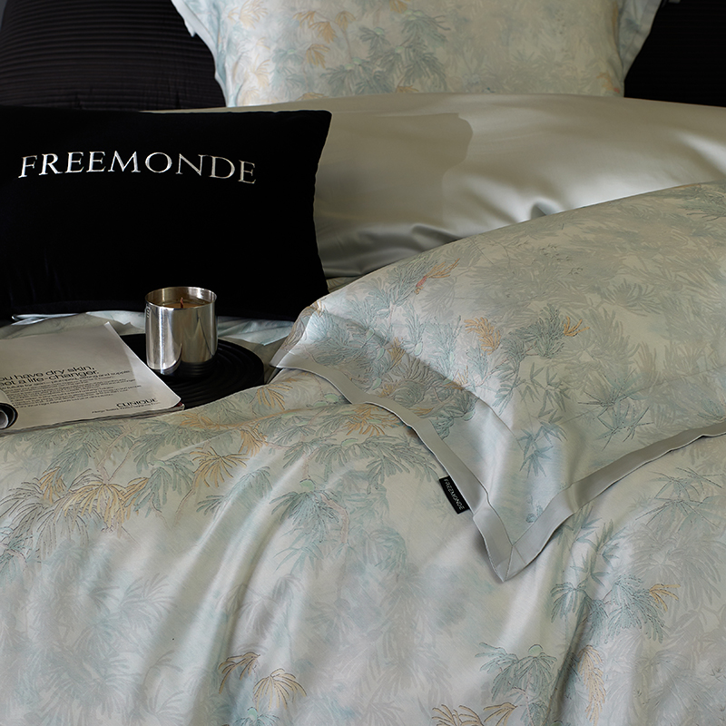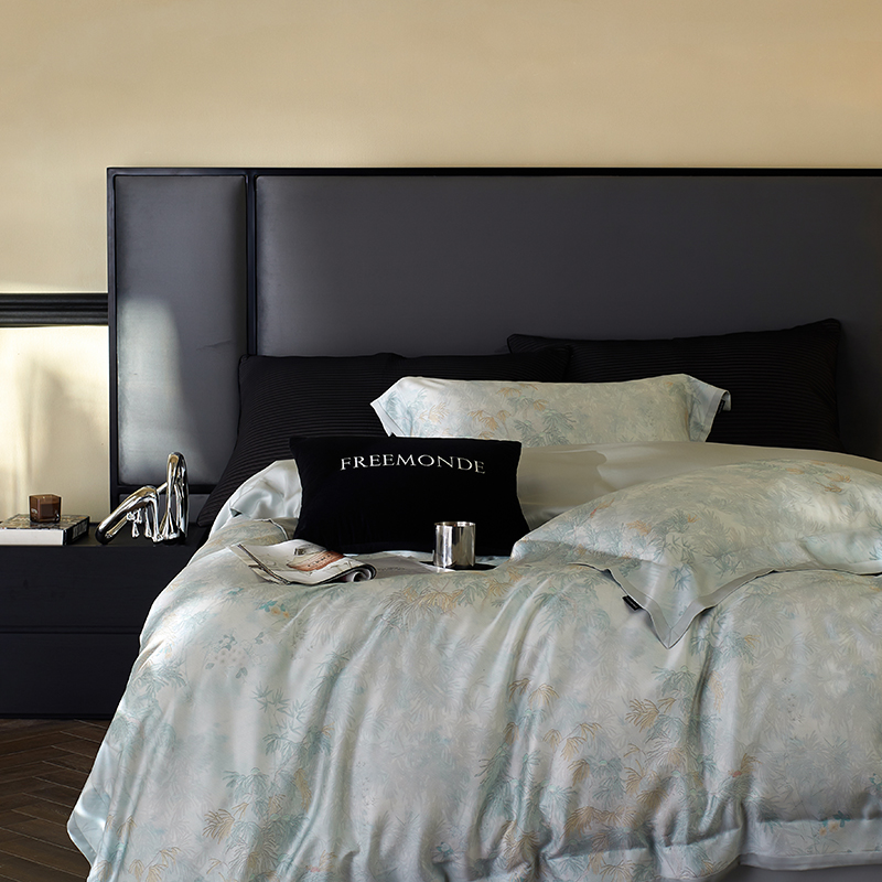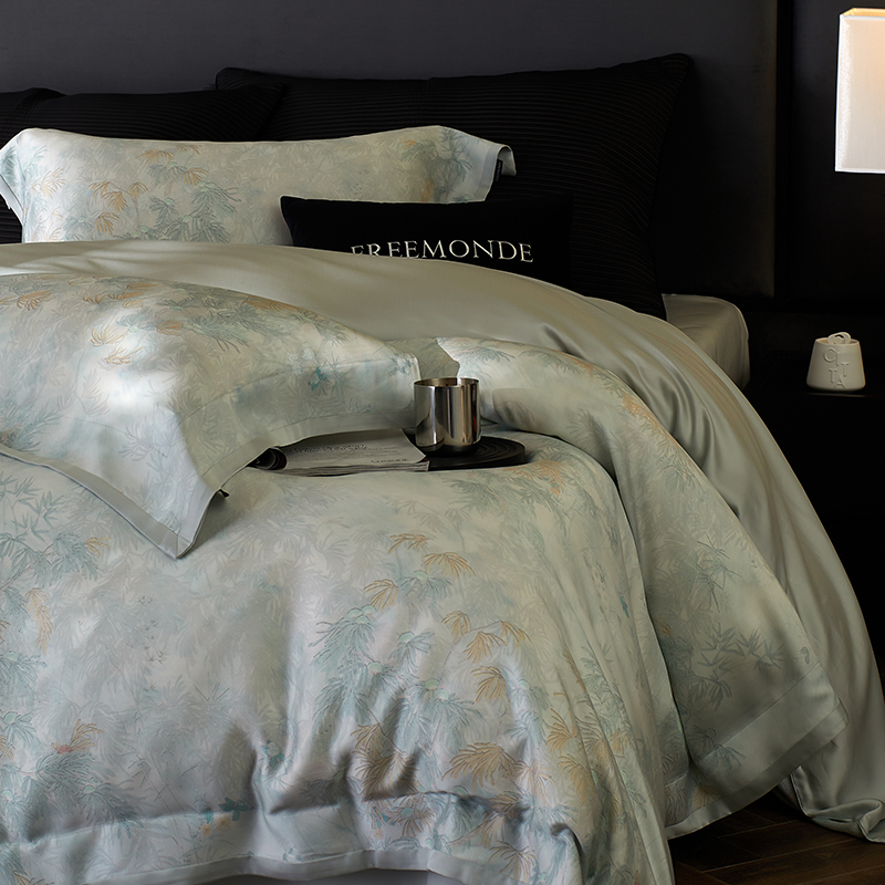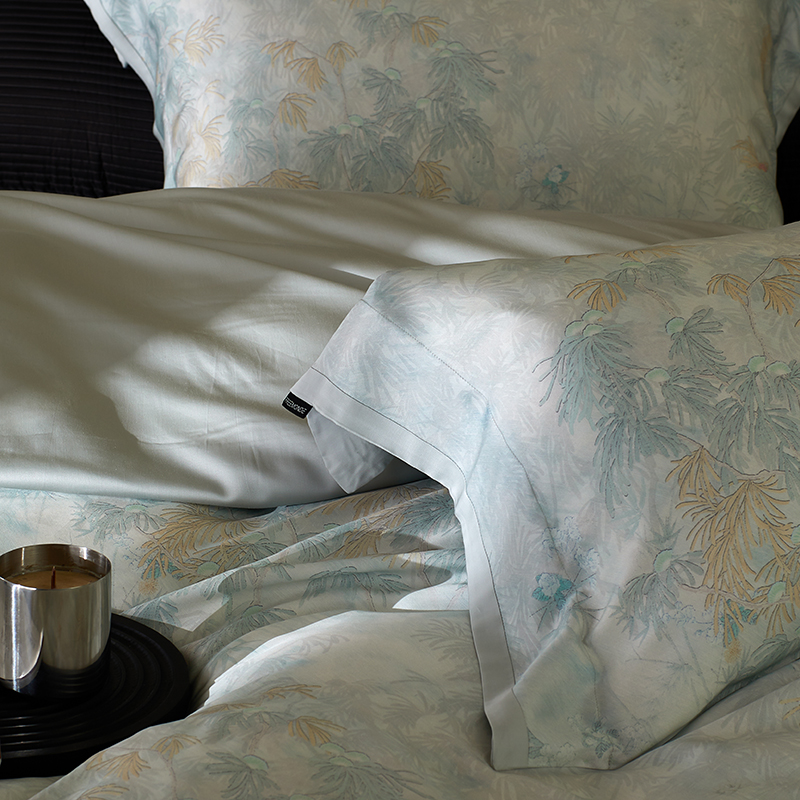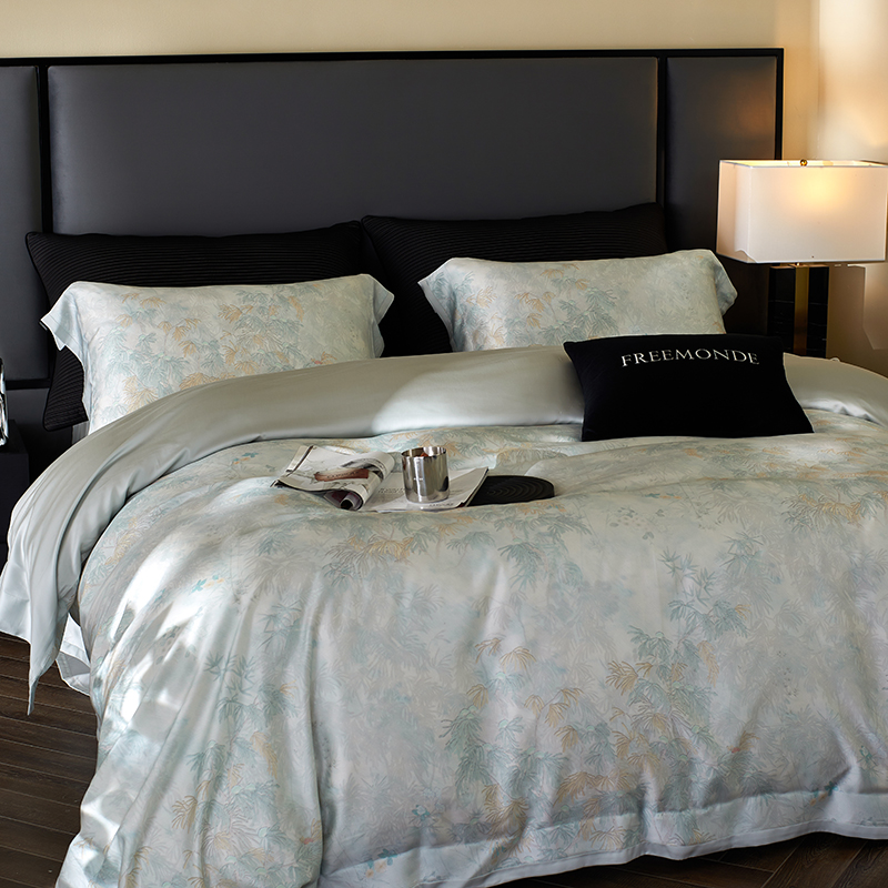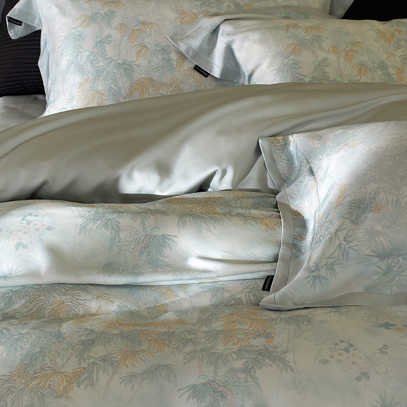 商品名称:蕾诺家纺 2025新款60支进口奥地利兰精天丝数码印花四件套 江山画-湖水蓝