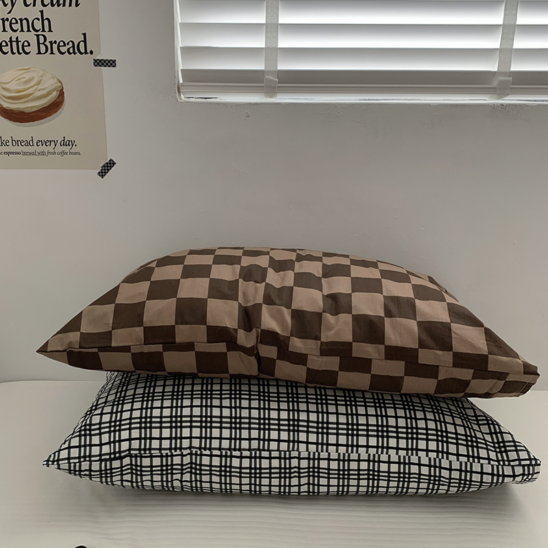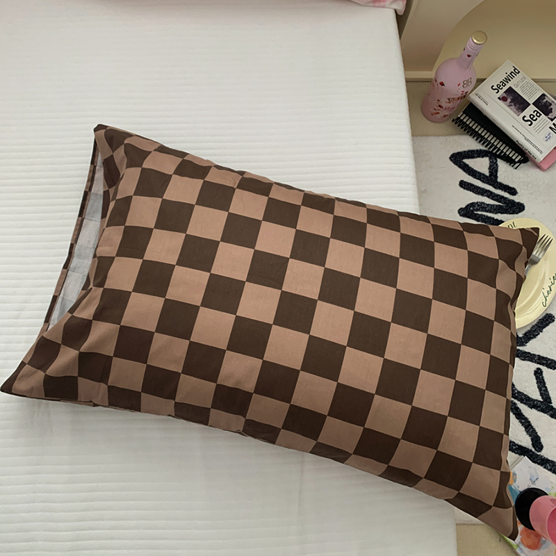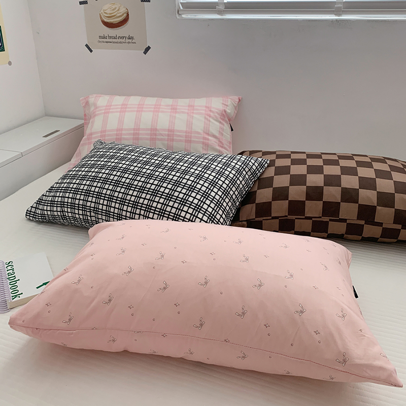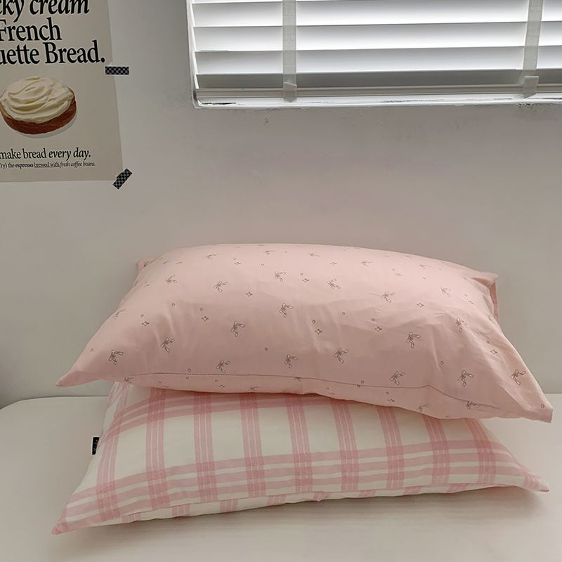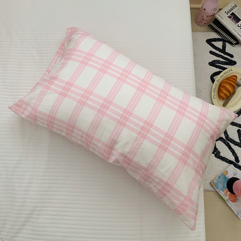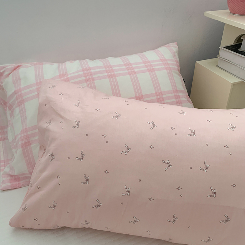 柚可家居 2024新款40支全棉活性印染格子纯棉单枕套 蝴蝶结粉单枕套