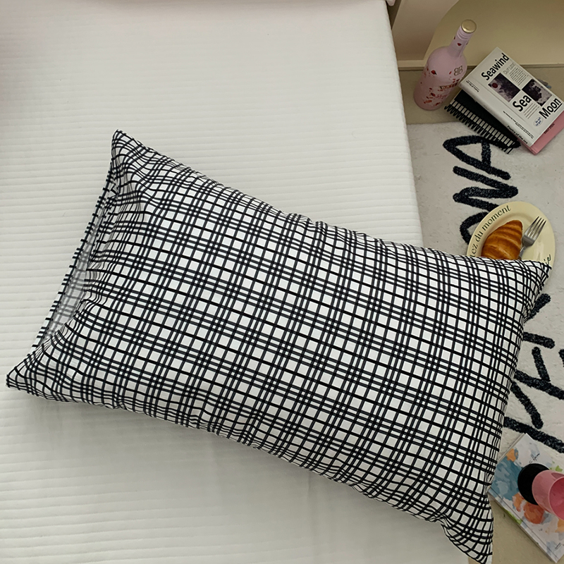 商品名称:柚可家居 2024新款40支全棉活性印染格子纯棉单枕套 蝴蝶结粉单枕套