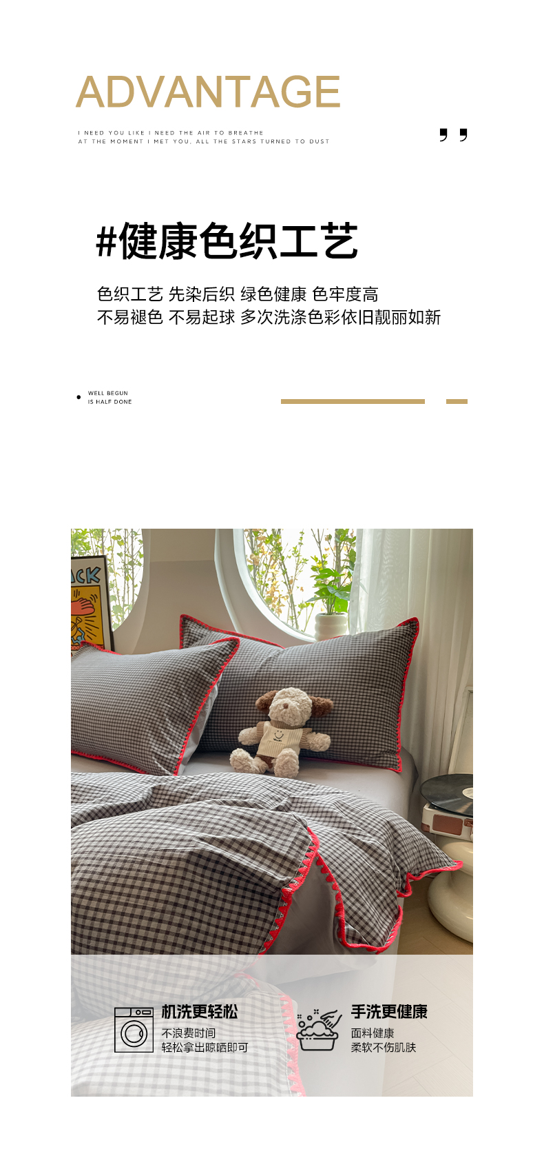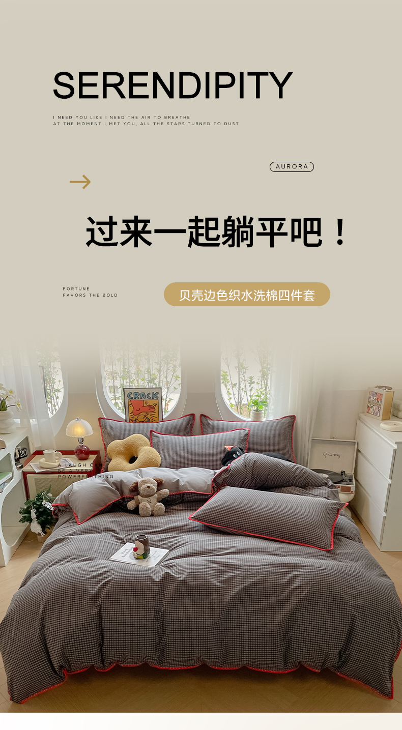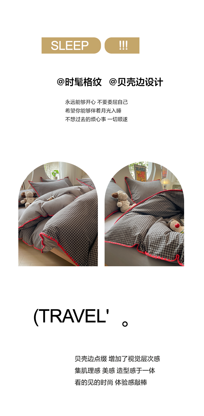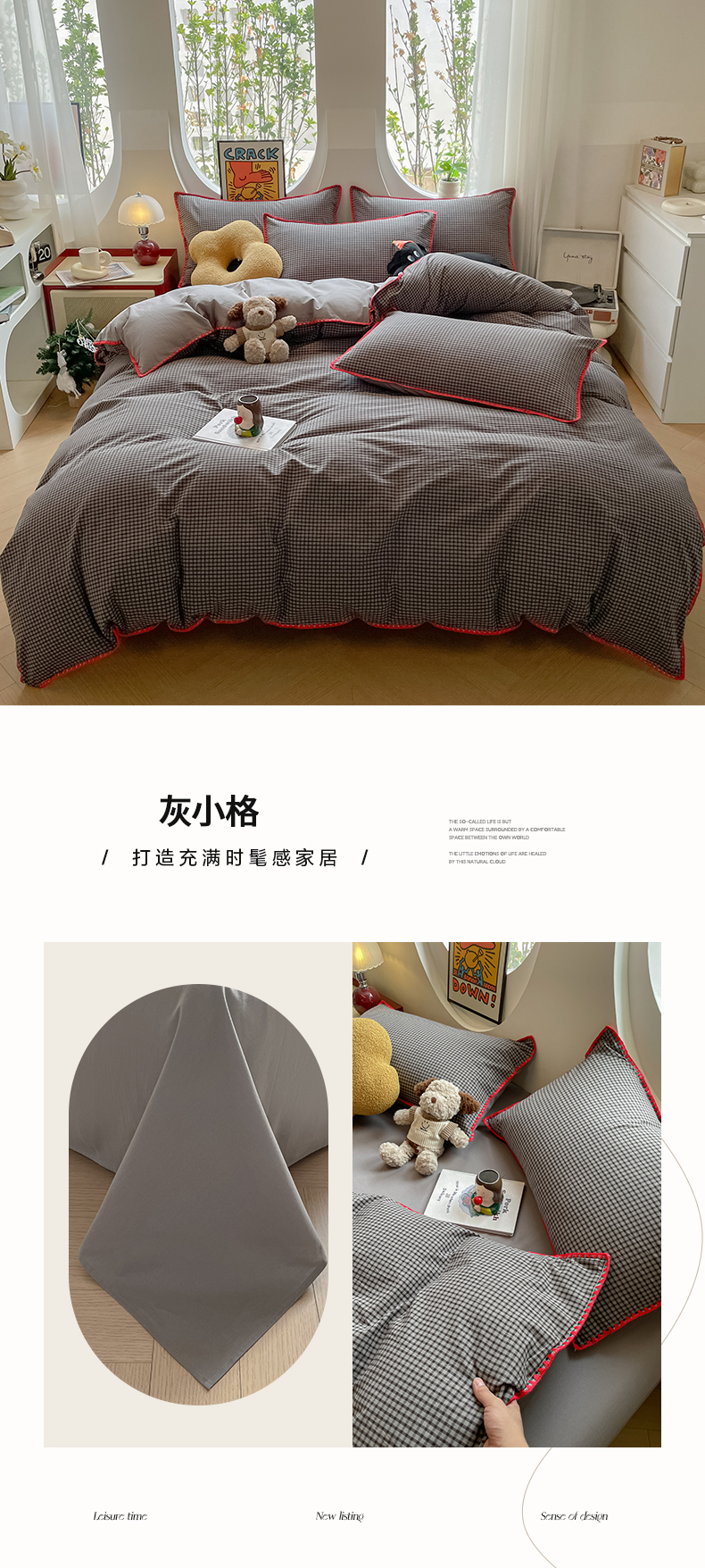 当前位置: 91家纺网 > 商品网购 > 床品套件 > 四件套 > 雅居纺2025新款贝壳边色织水洗棉四件套 灰小格