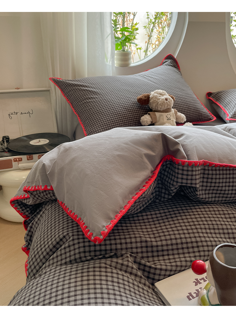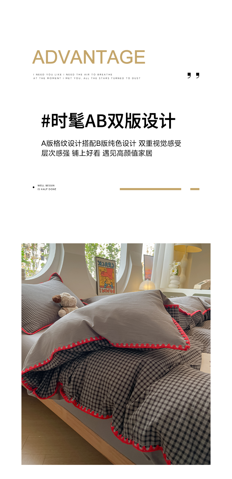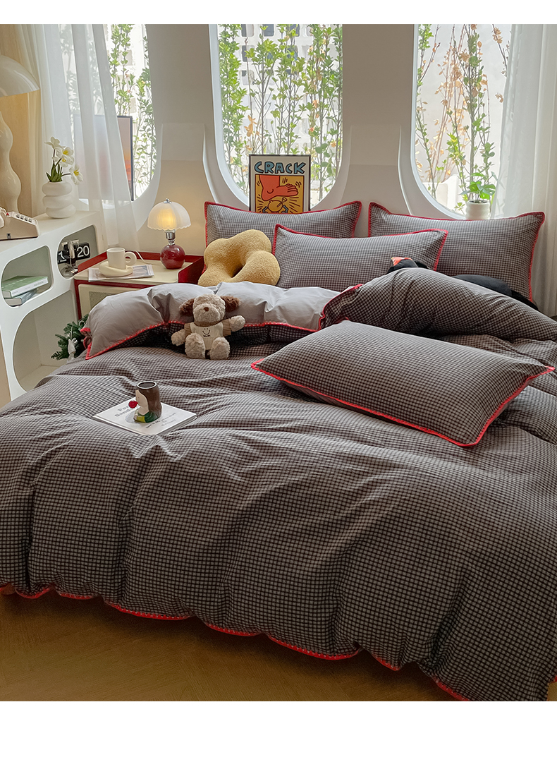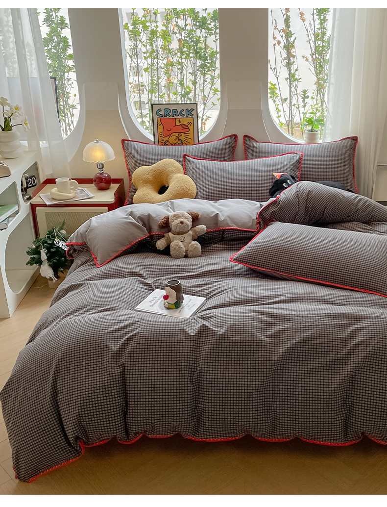 当前位置: 91家纺网 > 商品网购 > 床品套件 > 四件套 > 雅居纺2025新款贝壳边色织水洗棉四件套 灰小格