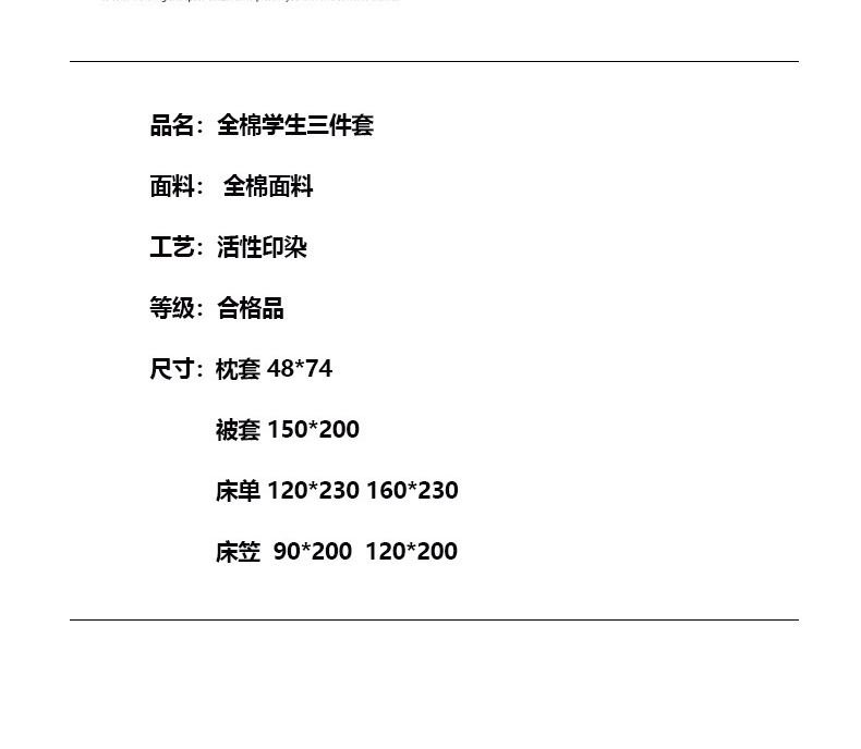 0.9床床单款被套150*200cm 床单120*230cm 枕套一只