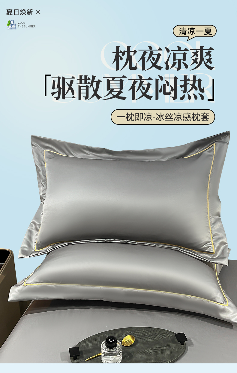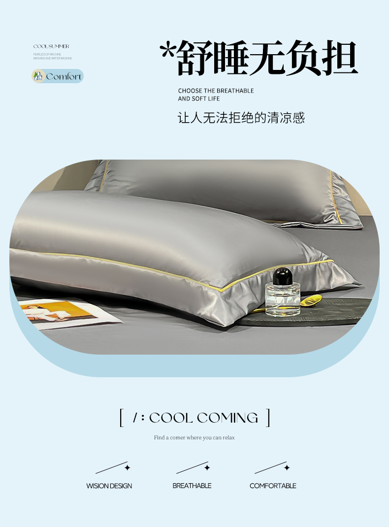 (总)露梦家纺 2025新款纯色冰丝凉感星辰枕套,冰蓝,豆沙,海青,奶白,浅灰,深灰,水绿,香槟,香紫