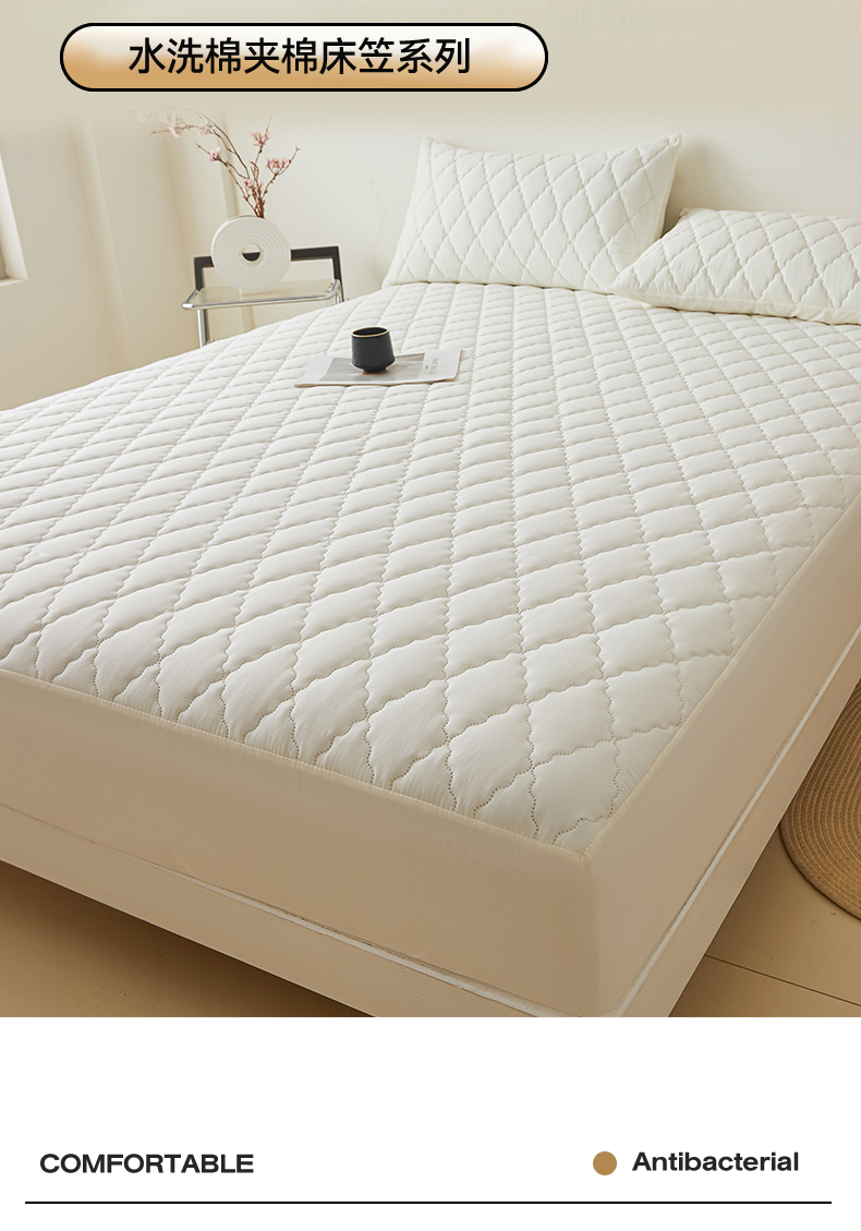 (总)雯豆家纺 2025新品外贸亚马逊纯色防水夹棉床笠跨境电商速卖通床罩可定制尺寸