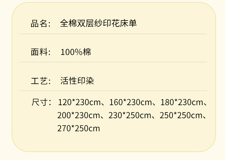 商品名称:(总)DoDo 兜兜 2025新款全棉纯棉小温暖双层纱系列单床单【可定做尺寸】