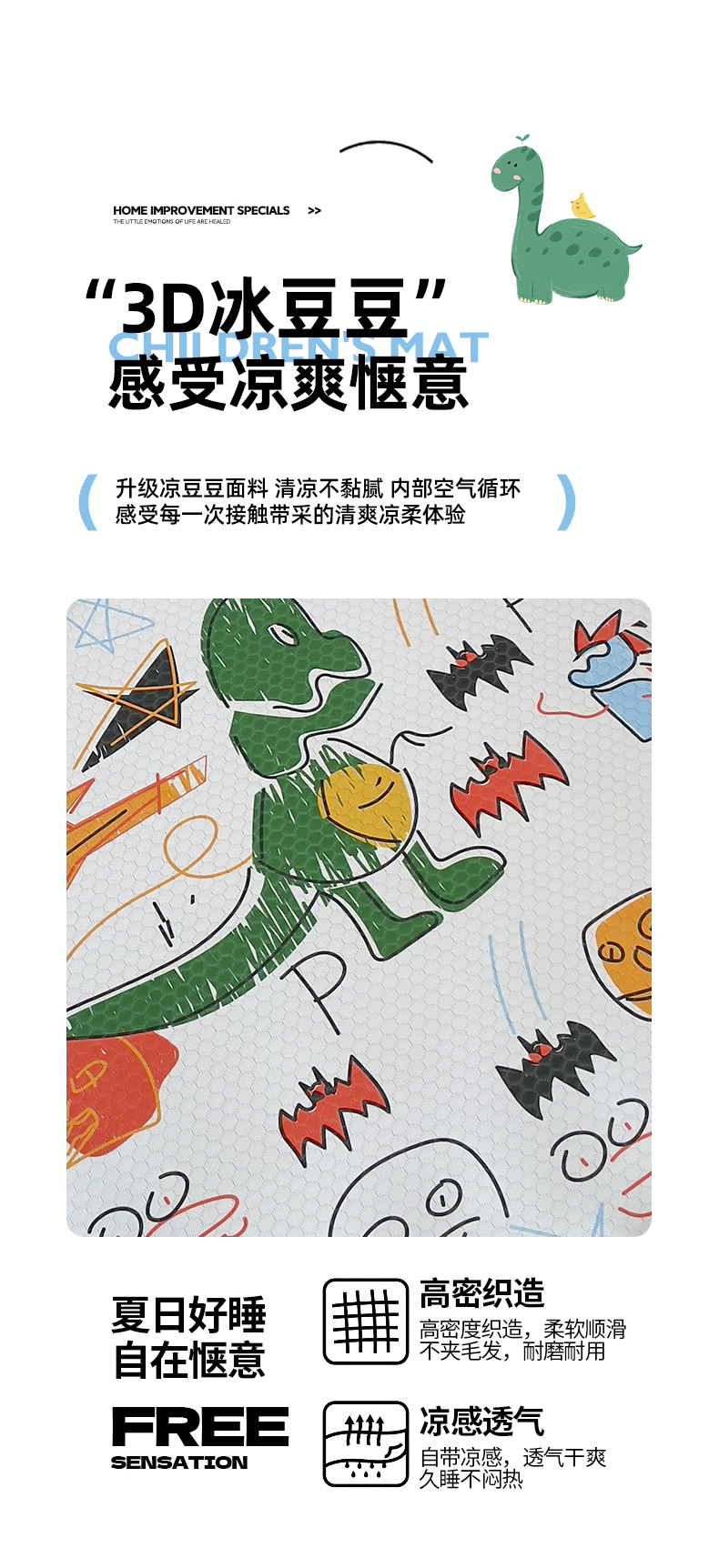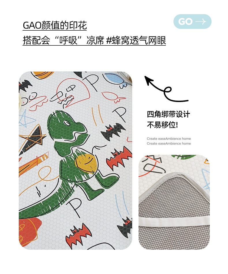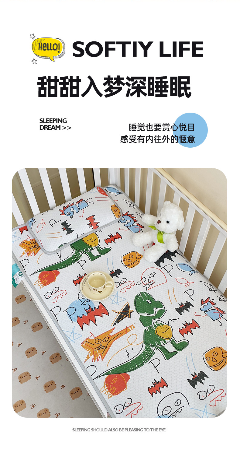 • 91家纺网 家纺一手货源 找家纺 小叮当家纺仓储工厂店 (提供买家秀 爆款花型 不断货)2025新款冰豆豆儿童卡通凉席床席 恐龙