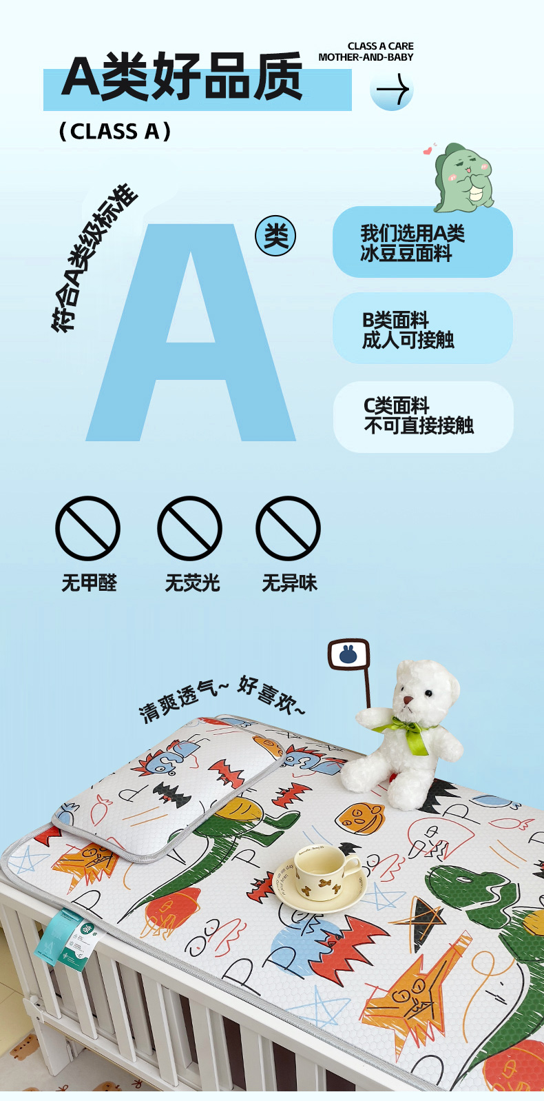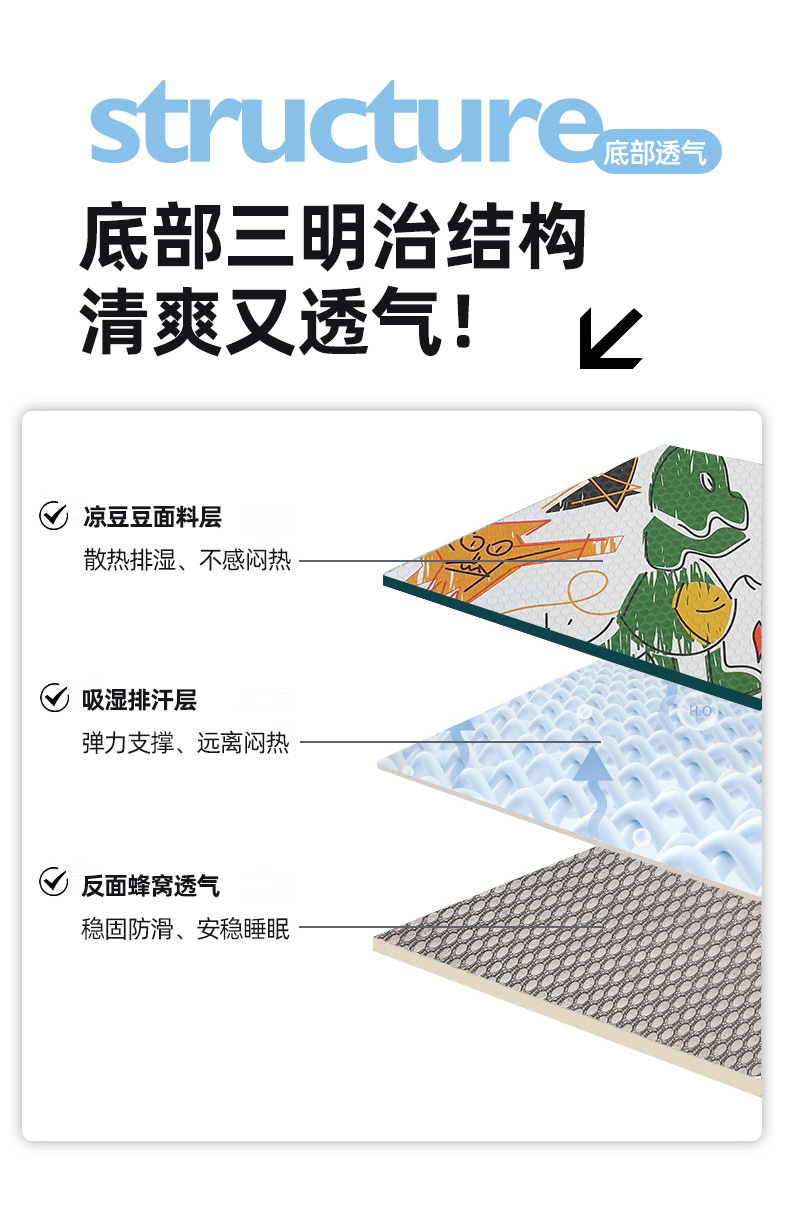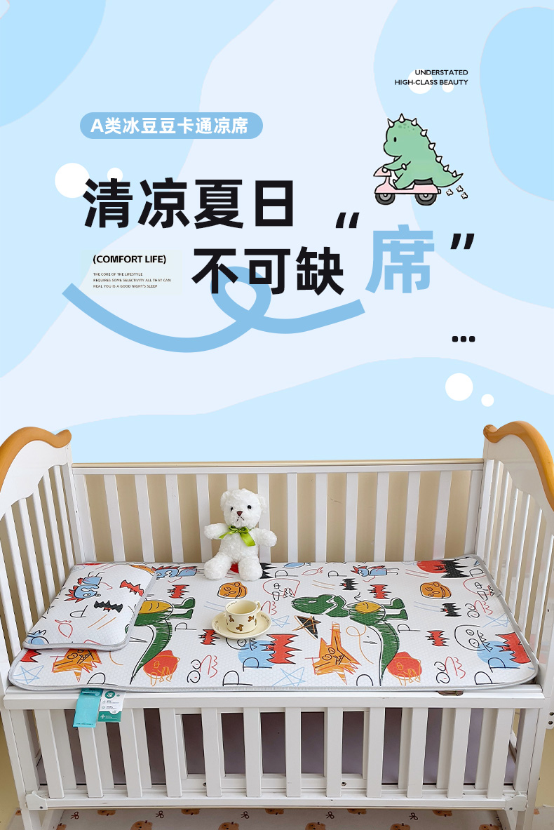 小叮当家纺仓储工厂店 (提供买家秀 爆款花型 不断货)2025新款冰豆豆儿童卡通凉席床席 恐龙