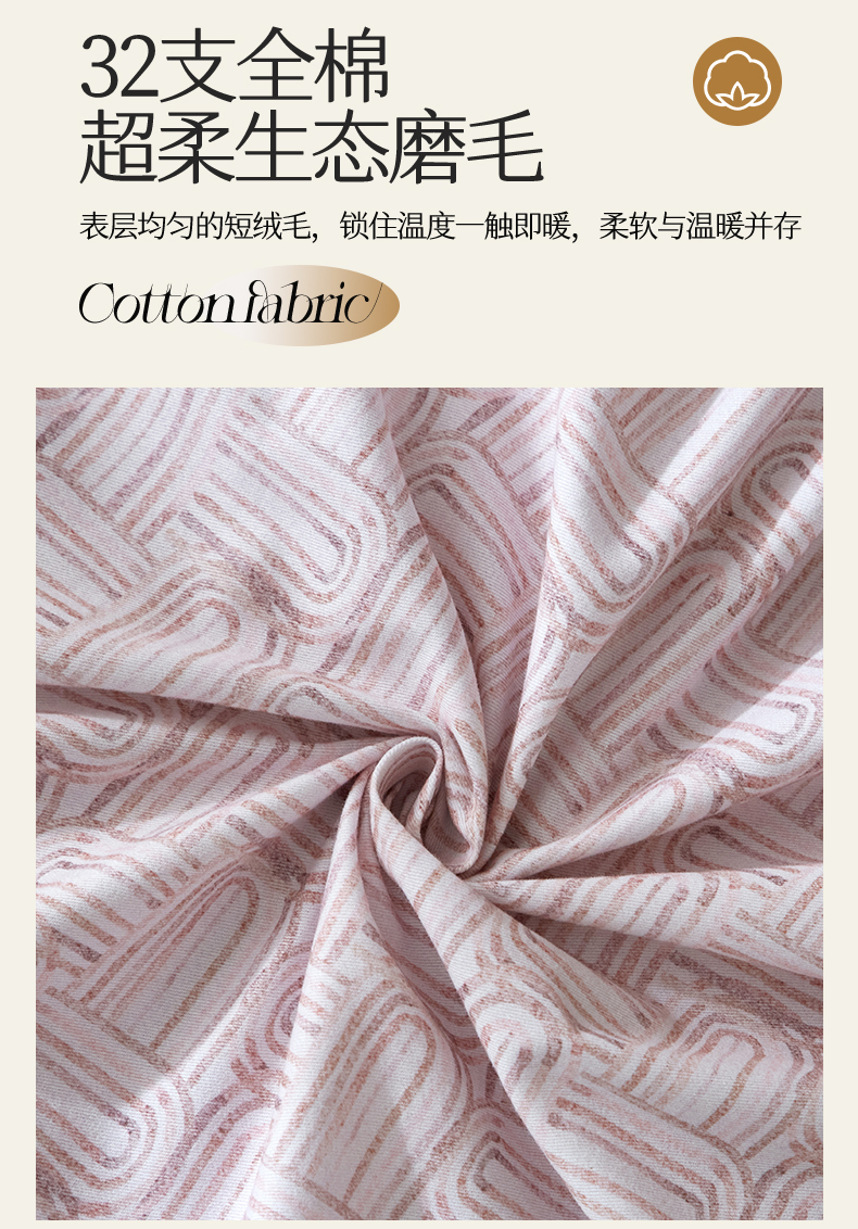 商品名称:曼秀琳 2025秋冬新款32支超柔生态磨毛四件套 浅行-豆沙
