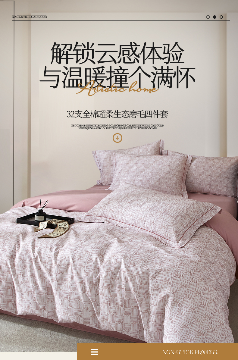 曼秀琳 2025秋冬新款32支超柔生态磨毛四件套 浅行-豆沙