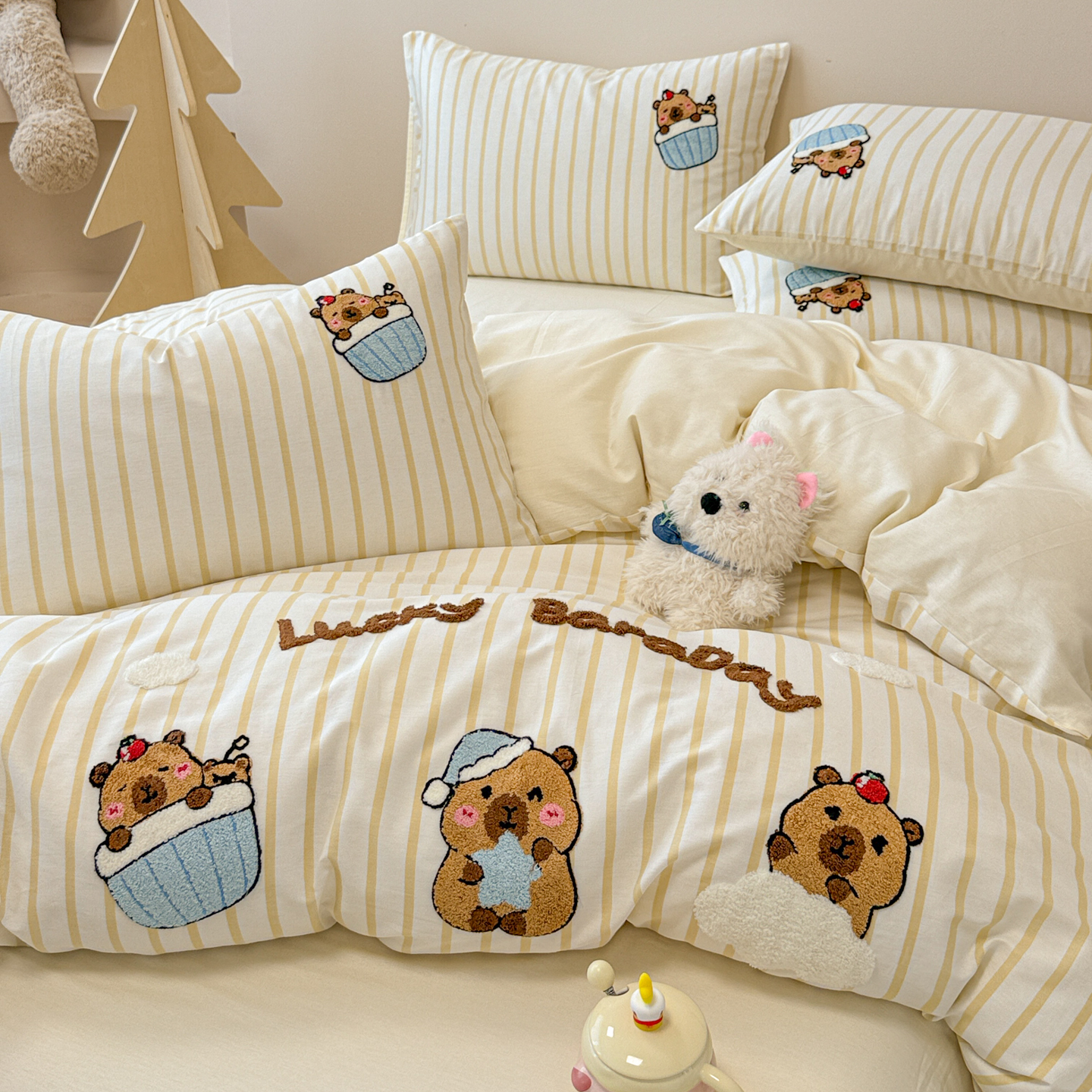 当前位置: 91家纺网 > 商品网购 > 床品套件 > 四件套 > 全棉普通四件套 > 呗旺鹿 2025新款全棉纯棉条纹毛巾绣卡通系列四件套 黄条纹-爱睡觉的卡皮