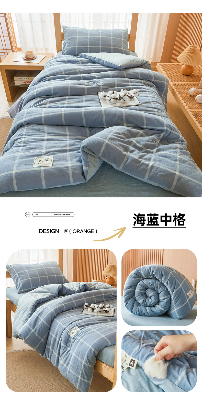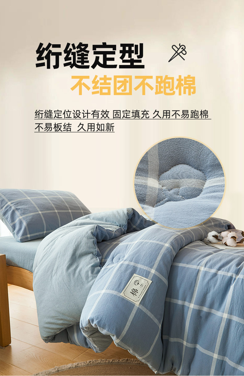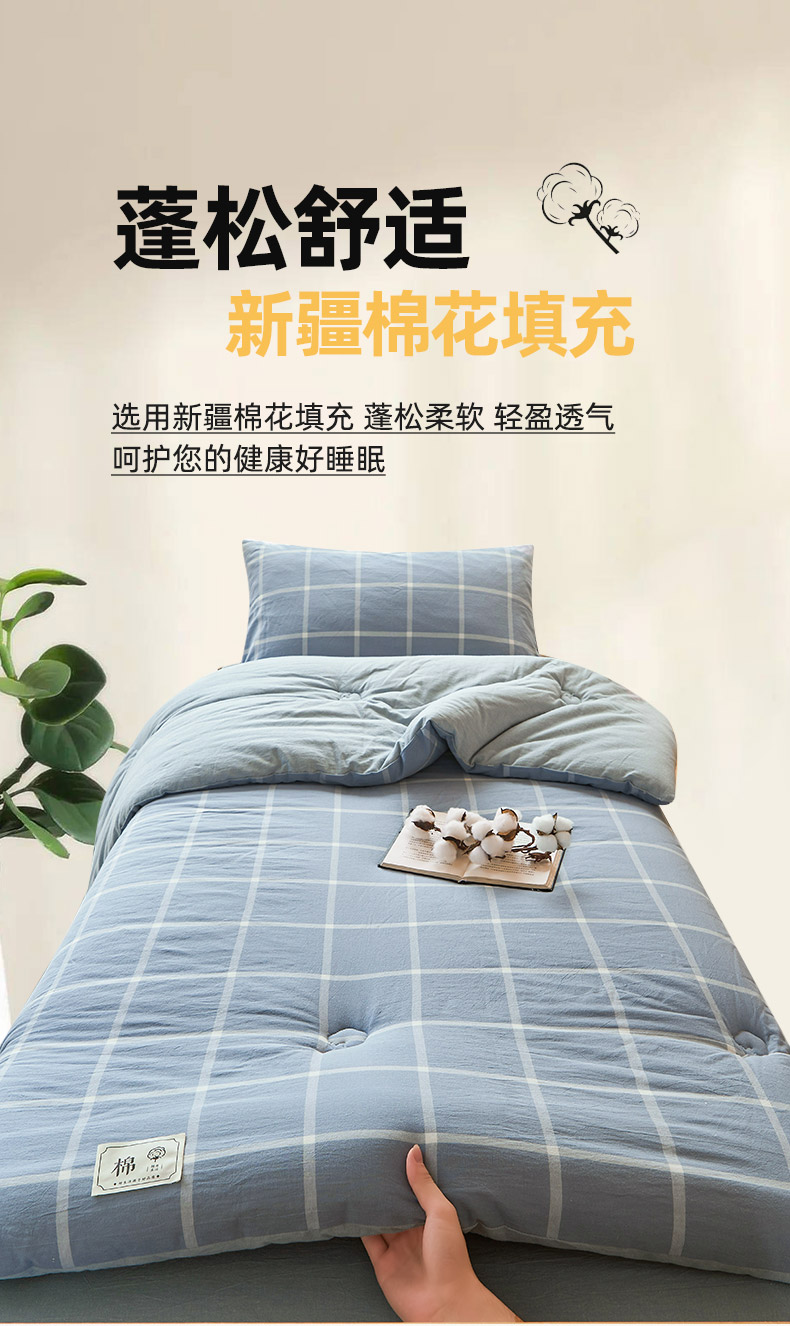 • 91家纺网 家纺一手货源 找家纺 熙宴家纺 2025新款无印风100%新疆棉花被学生床被子被芯 海蓝中格