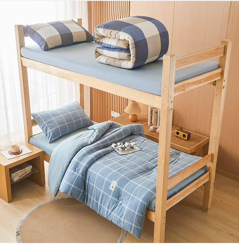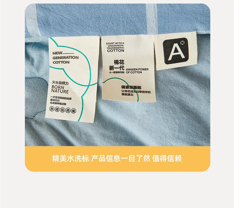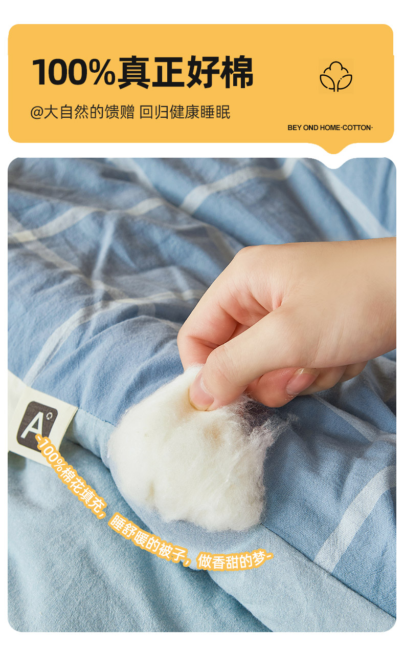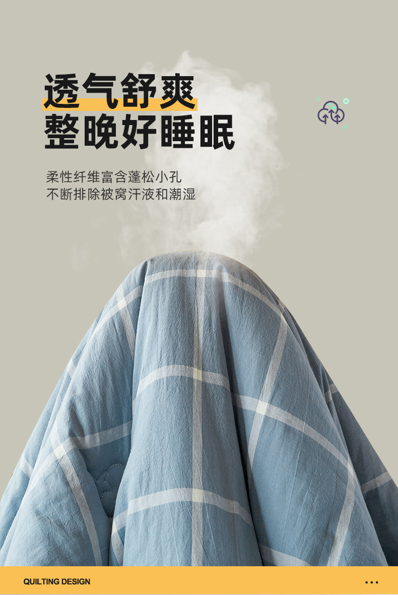 • 91家纺网 家纺一手货源 找家纺 熙宴家纺 2025新款无印风100%新疆棉花被学生床被子被芯 海蓝中格