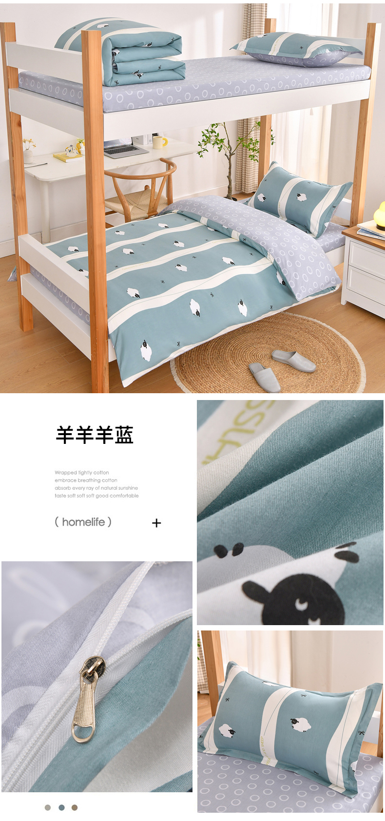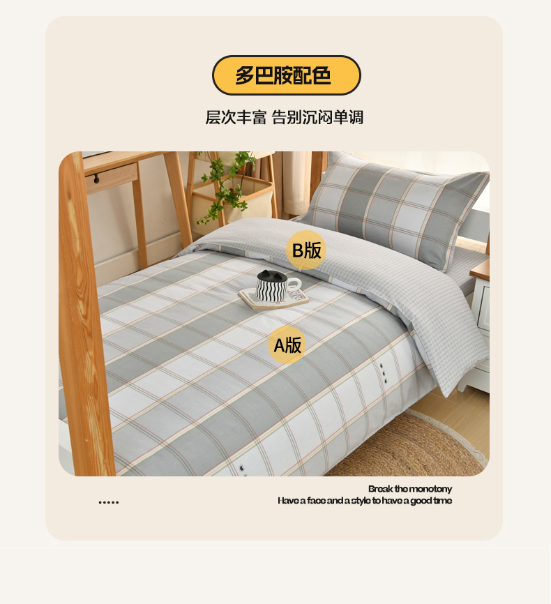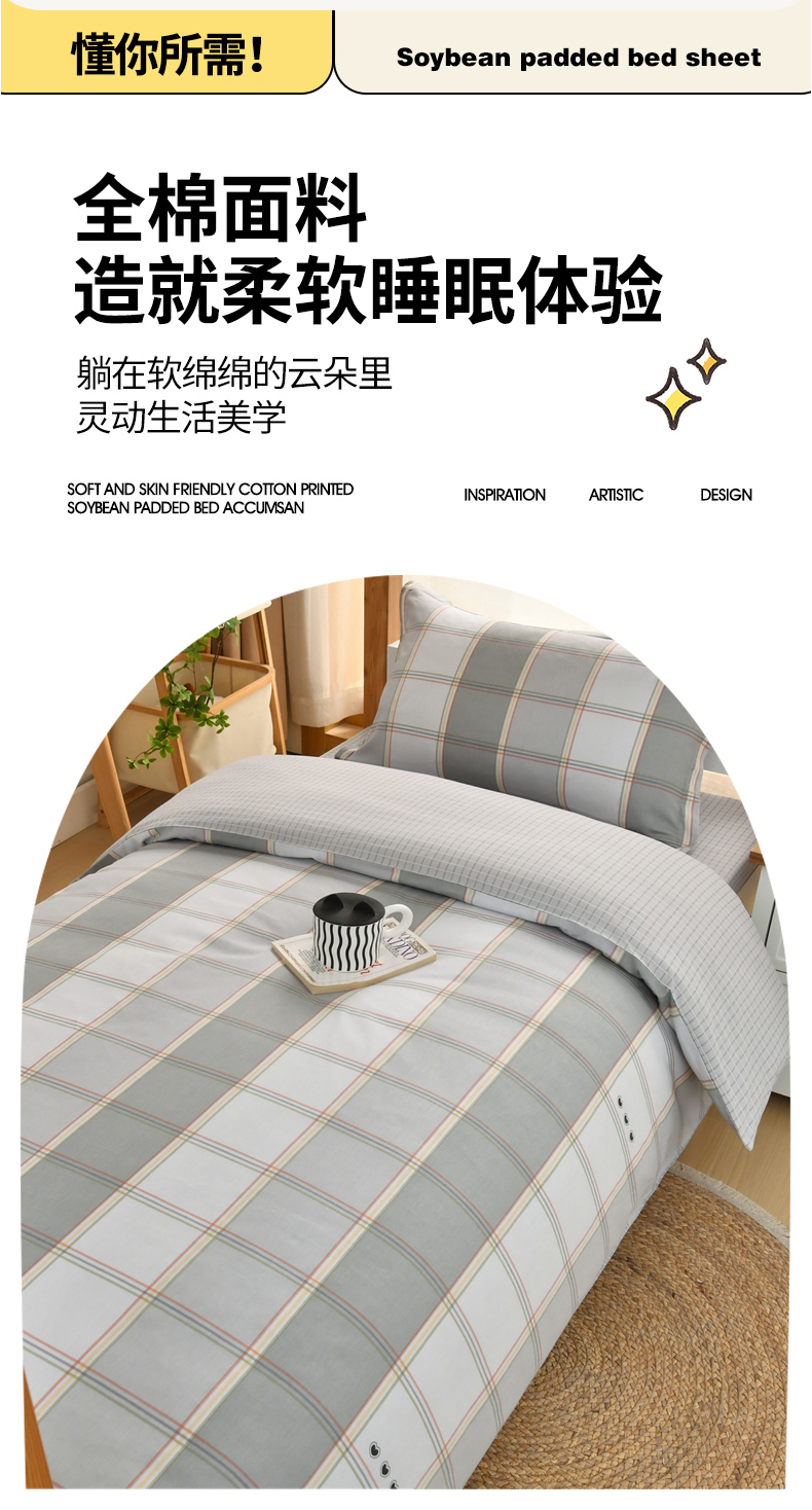 当前位置: 91家纺网 > 商品网购 > 床品套件 > 四件套 > 全棉普通四件套 > 乐旗家纺 2025新款全棉13372印花学生上下铺套件宿舍三件套 闲趣-灰