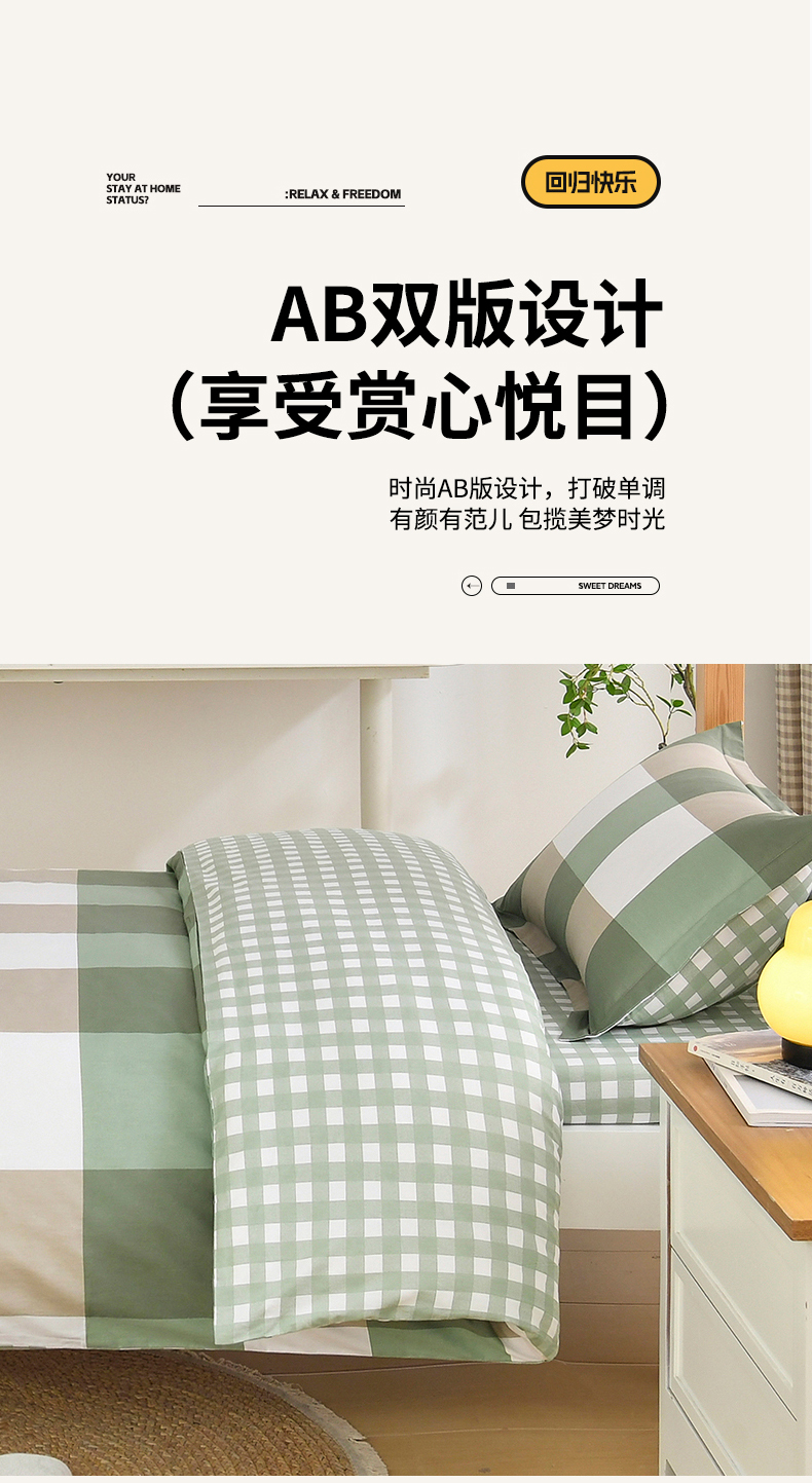 当前位置: 91家纺网 > 商品网购 > 床品套件 > 四件套 > 全棉普通四件套 > 乐旗家纺 2025新款全棉13372印花学生上下铺套件宿舍三件套 校园笔记-绿