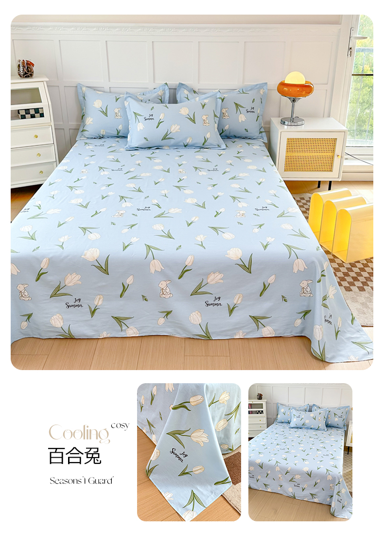 • 91家纺网 家纺一手货源 找家纺 小叮当家纺仓储工厂店 (爆款花型 长期款 不断货)2025新款小清新印花条纹卡通花卉纯棉全棉单品系列--单床单 馨香花季