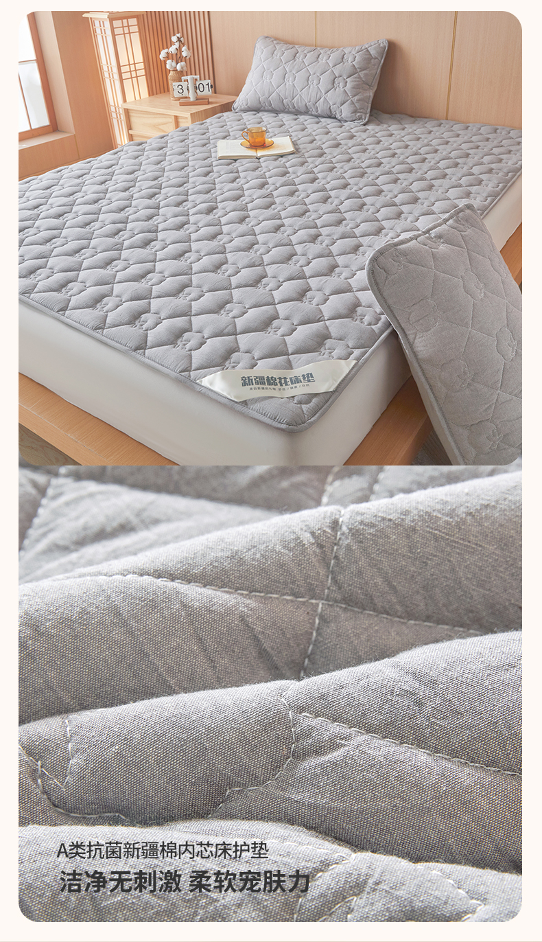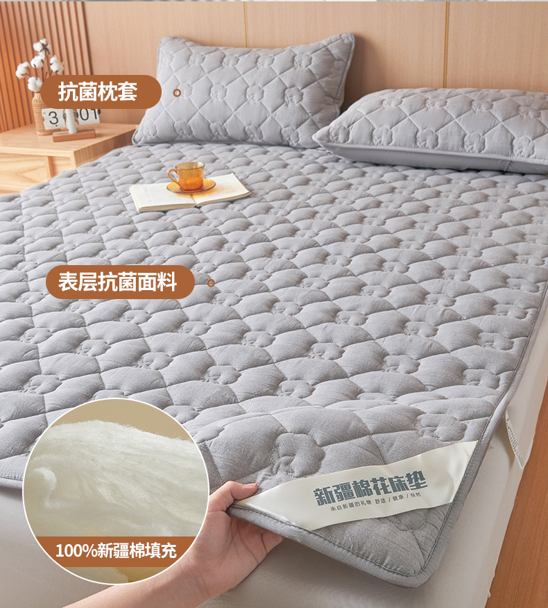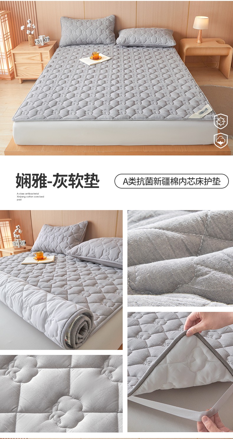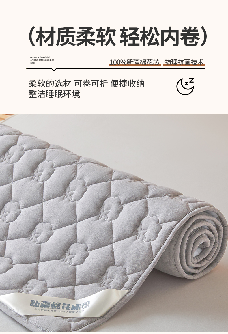 • 91家纺网 家纺一手货源 找家纺 西域种棉人·千百笠 2025新款A类抗菌100%新疆棉花填充夹棉床垫床护垫软垫床褥子单人双人学生垫 娴雅软垫-灰