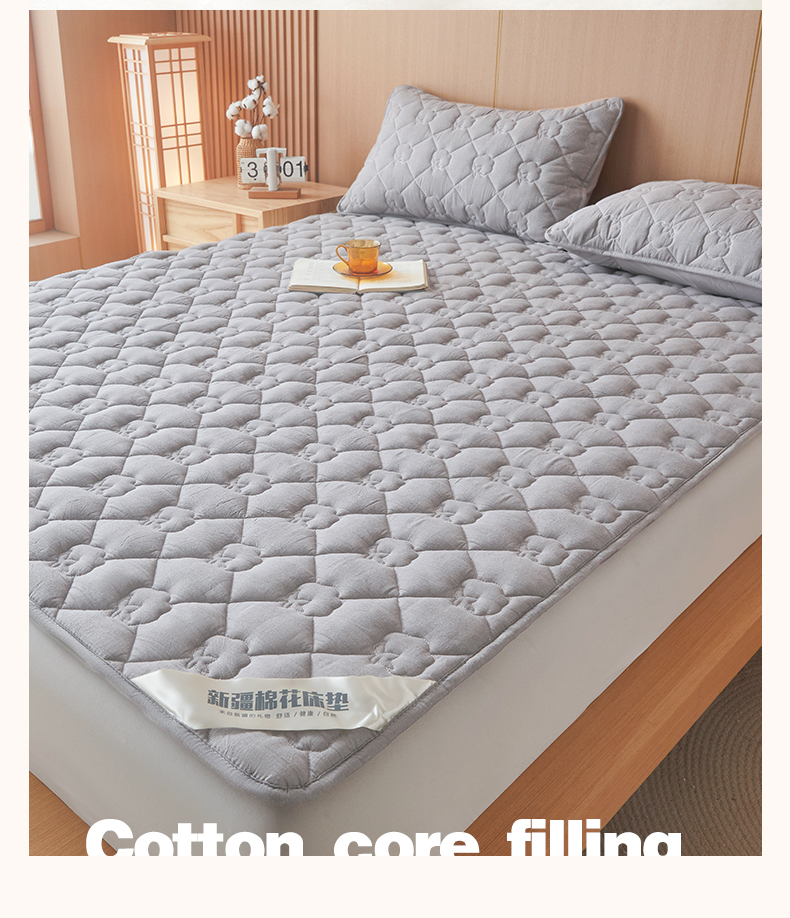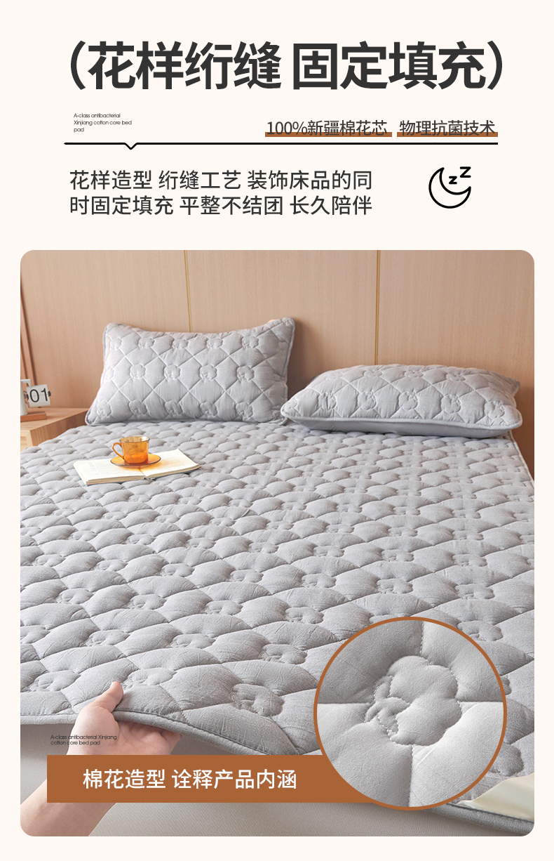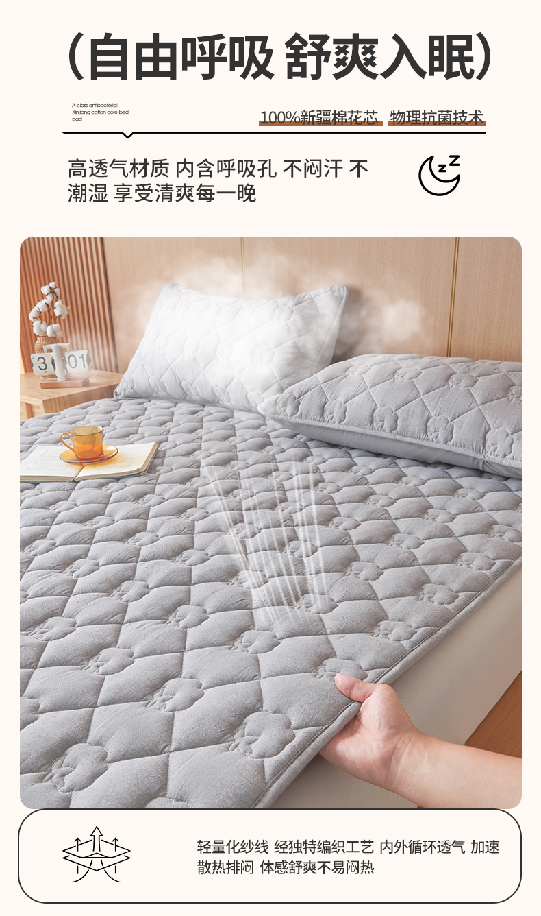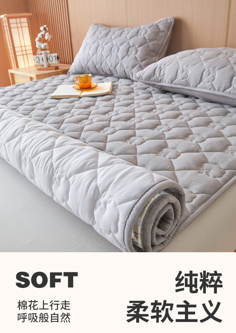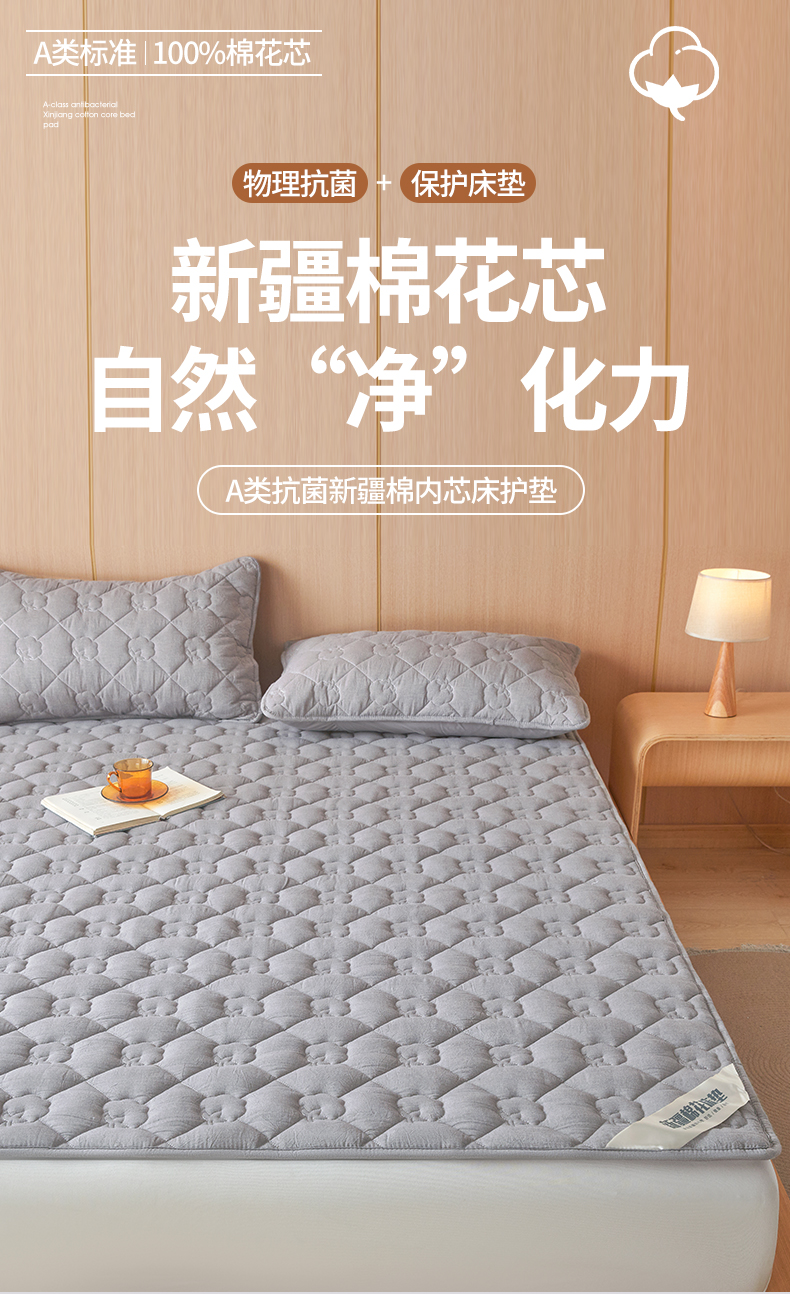 • 91家纺网 家纺一手货源 找家纺 西域种棉人·千百笠 2025新款A类抗菌100%新疆棉花填充夹棉床垫床护垫软垫床褥子单人双人学生垫 娴雅软垫-灰