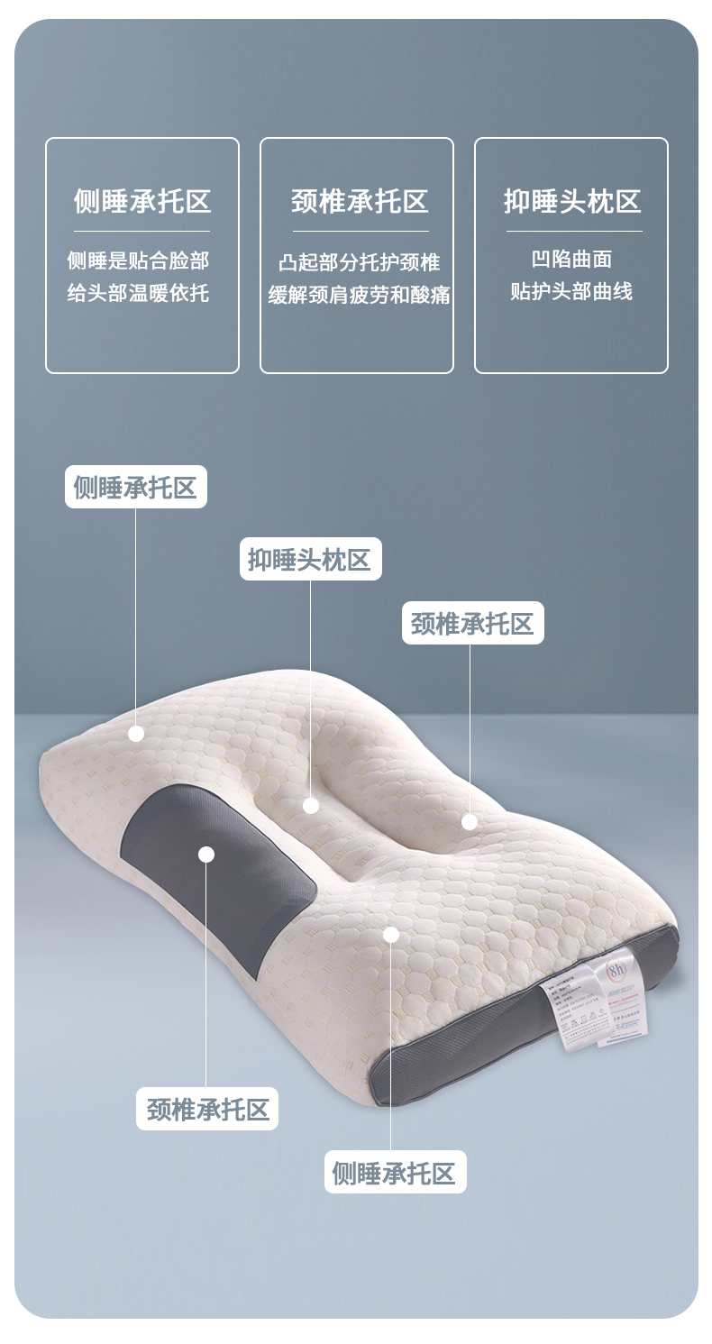 (总)蝶飞舞 2025新款360护颈分区护颈枕头枕芯 保健枕牵引枕头,360护颈枕-白褐 48*74cm,360护颈枕-白蓝 48*74cm,360护颈枕-白紫 48*74cm
