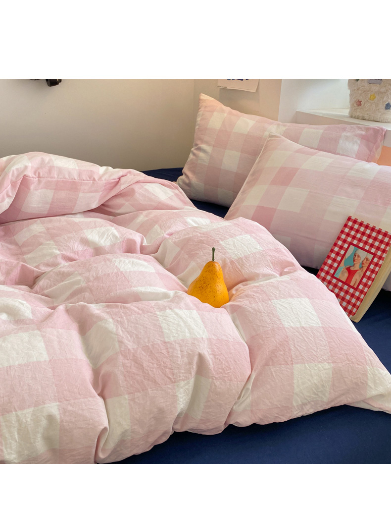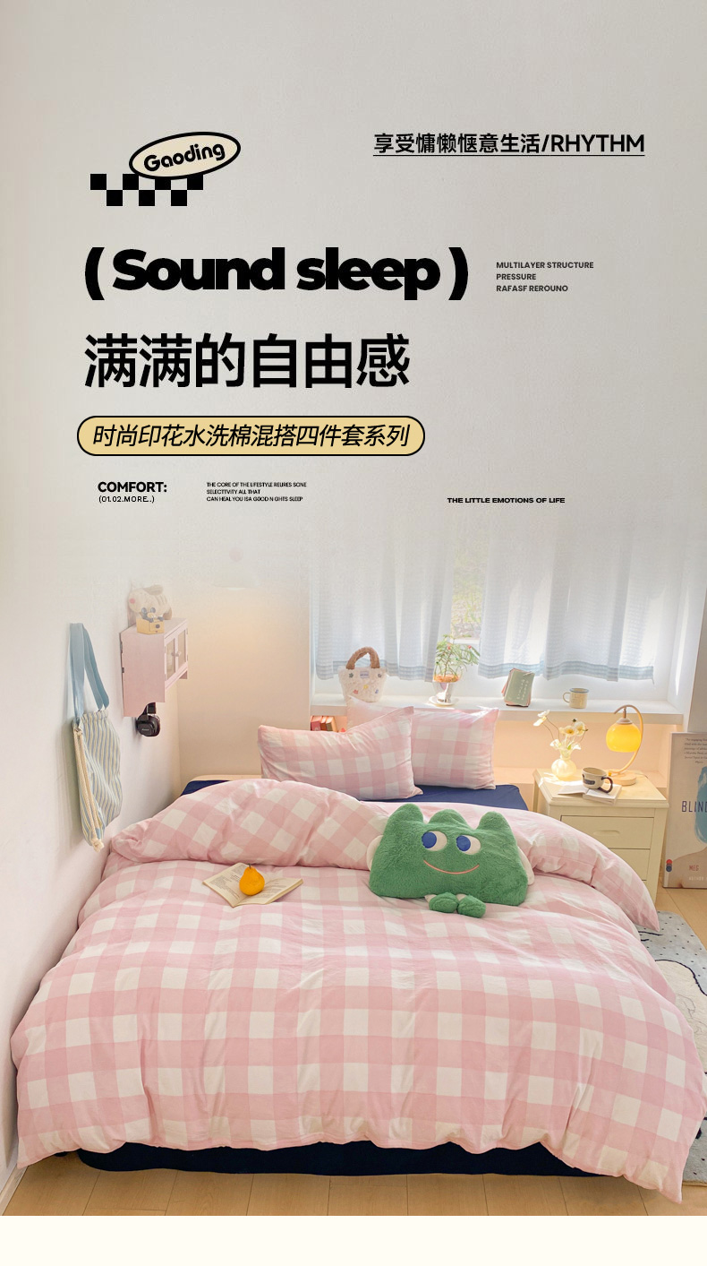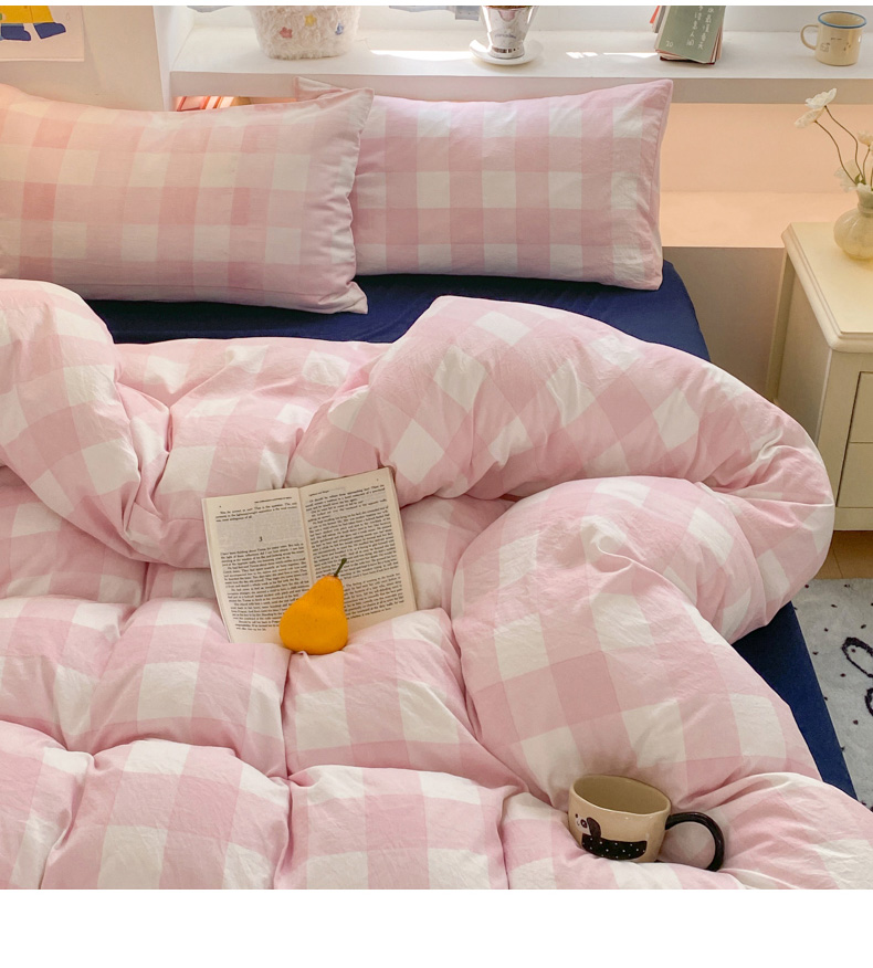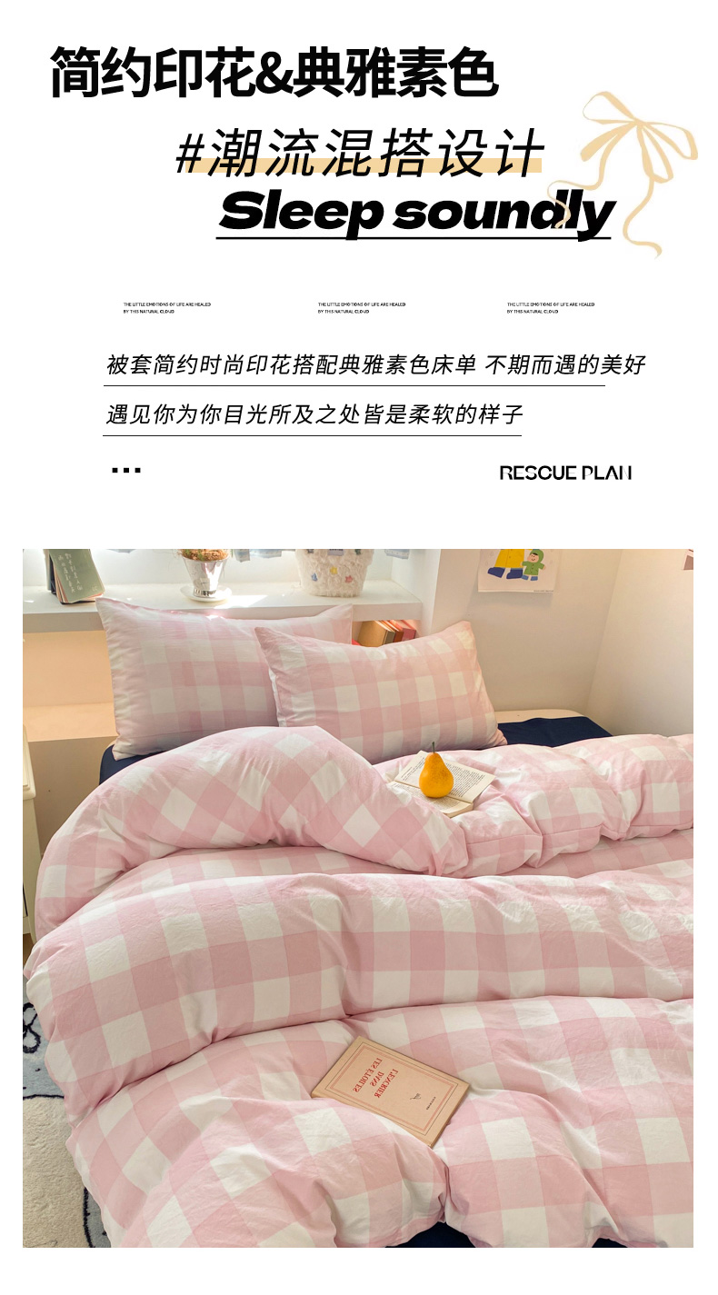 当前位置: 91家纺网 > 商品网购 > 床品套件 > 四件套 > 雨帆家纺 2025新款时尚印花水洗棉混搭四件套 粉格绅士
