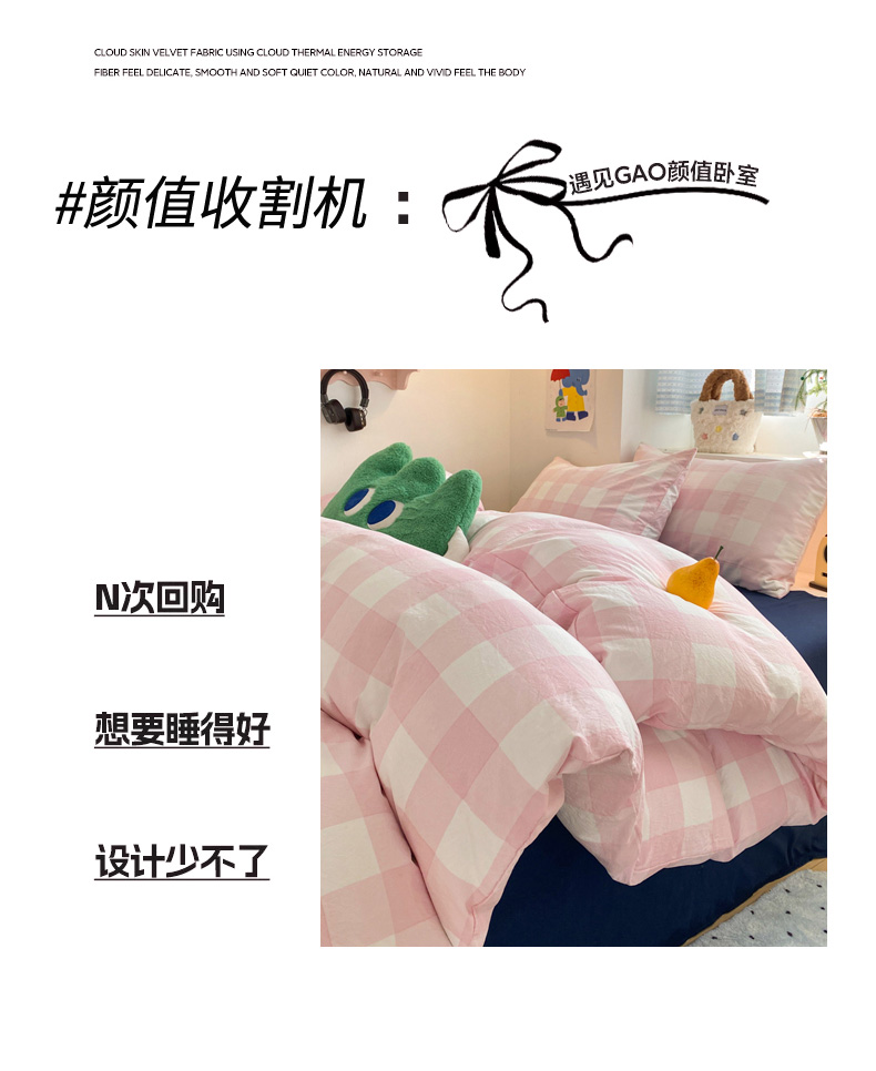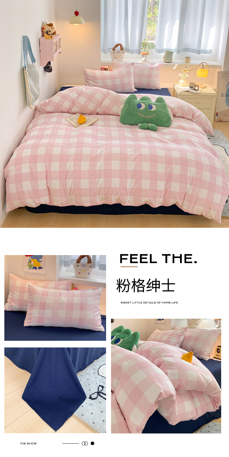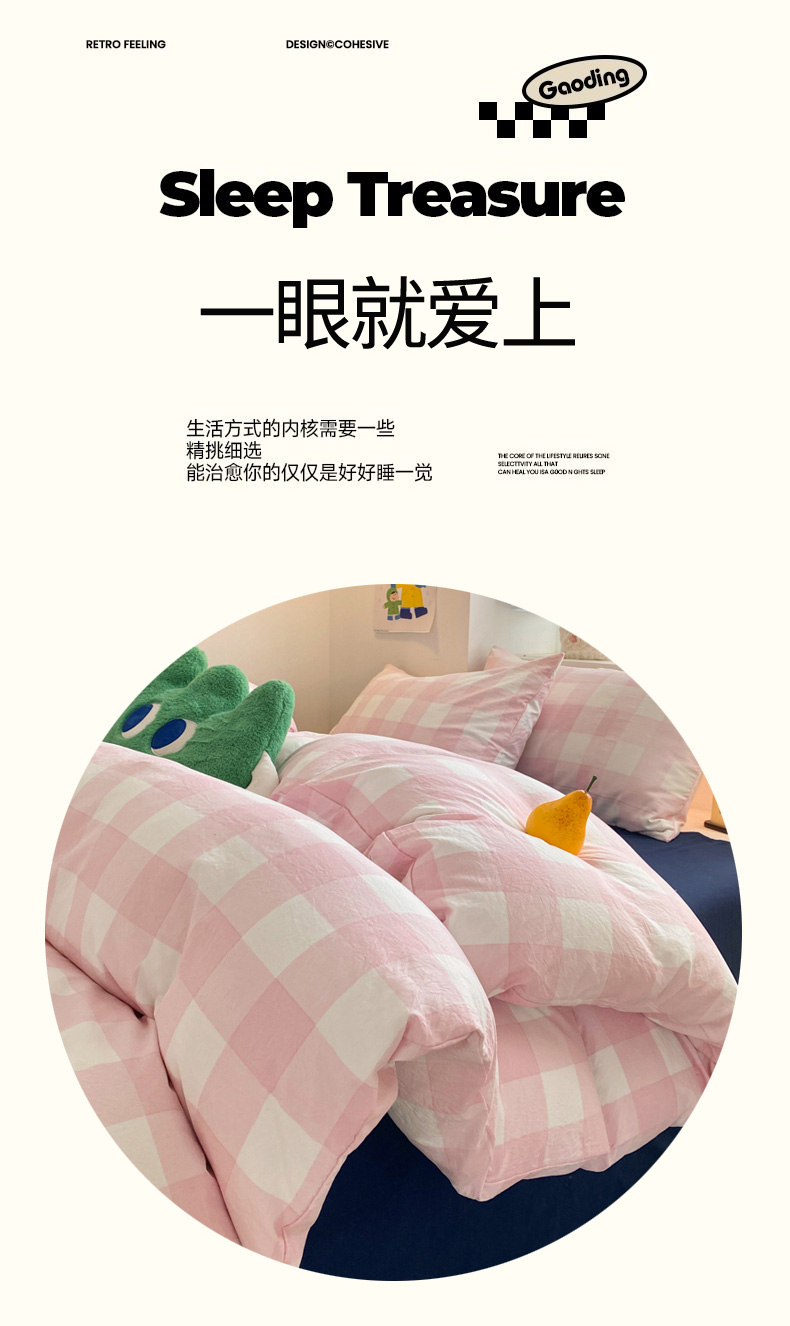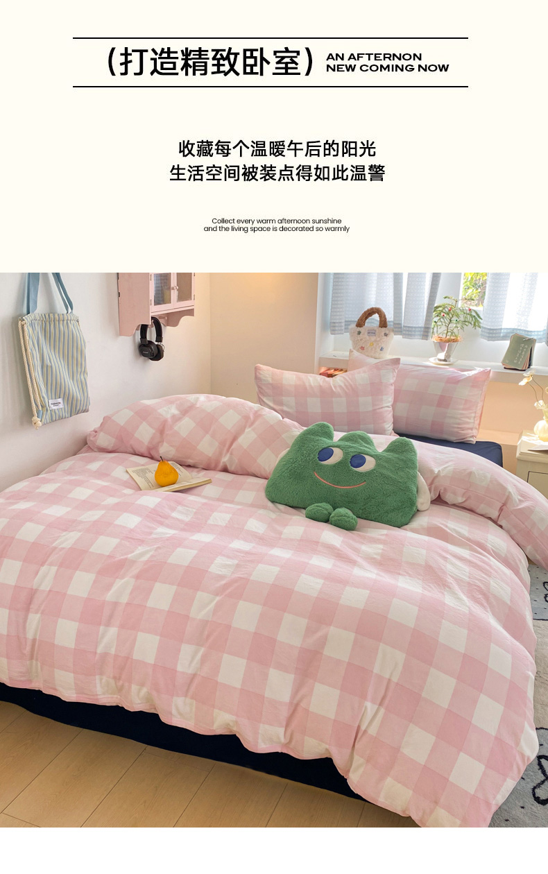 当前位置: 91家纺网 > 商品网购 > 床品套件 > 四件套 > 雨帆家纺 2025新款时尚印花水洗棉混搭四件套 粉格绅士