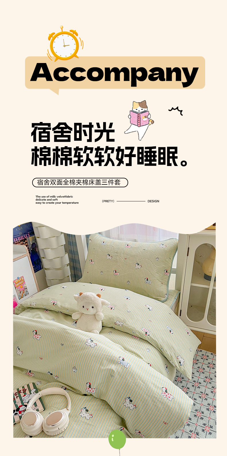 商品名称:沐纯家居 2025新款学生款双面纯棉棉花床盖三件套 狗狗乐园