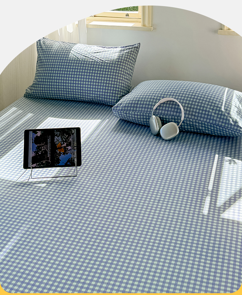 多品家纺 2025新款超柔云感双层纱单床单 床单单件 绿格