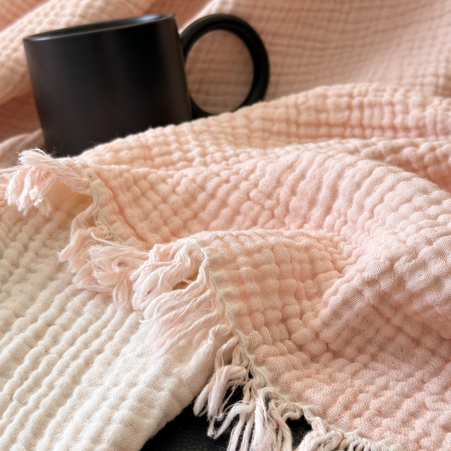 当前位置: 91家纺网 > 商品网购 > 毛毯休闲毯绒毯 > 毛毯 > 淑女公社家纺 2025新款双色全棉纯棉皱皱纱流苏毯 双色流苏毯 条纹水绿