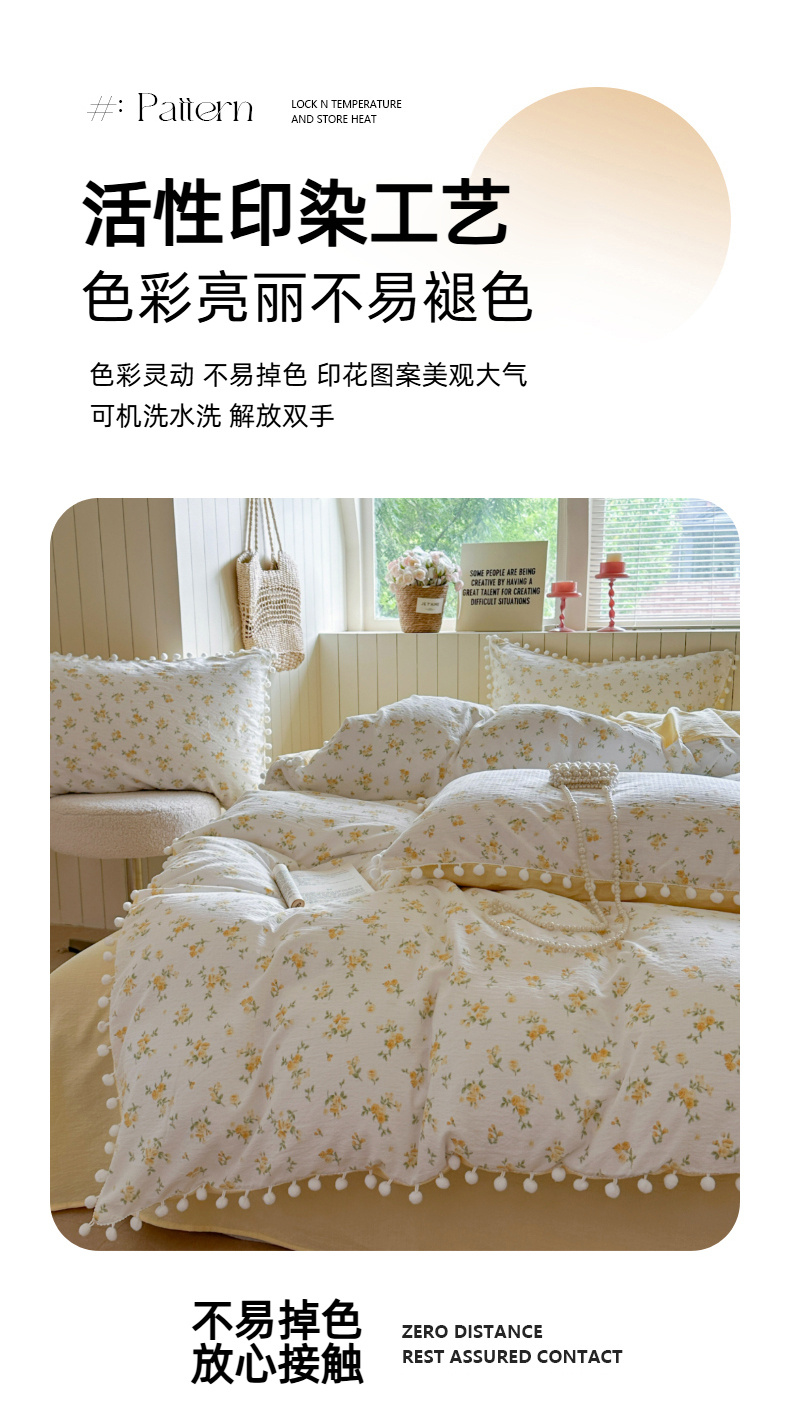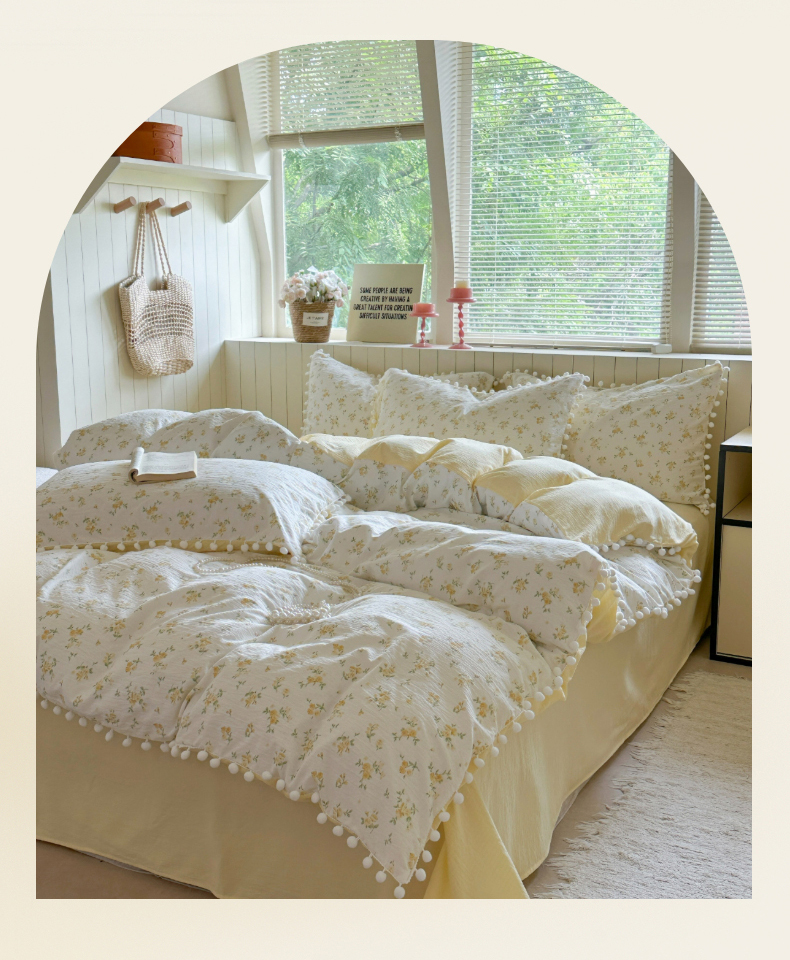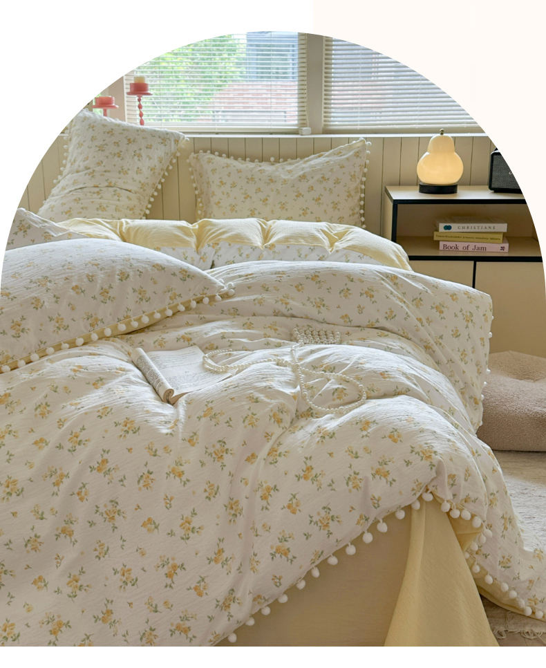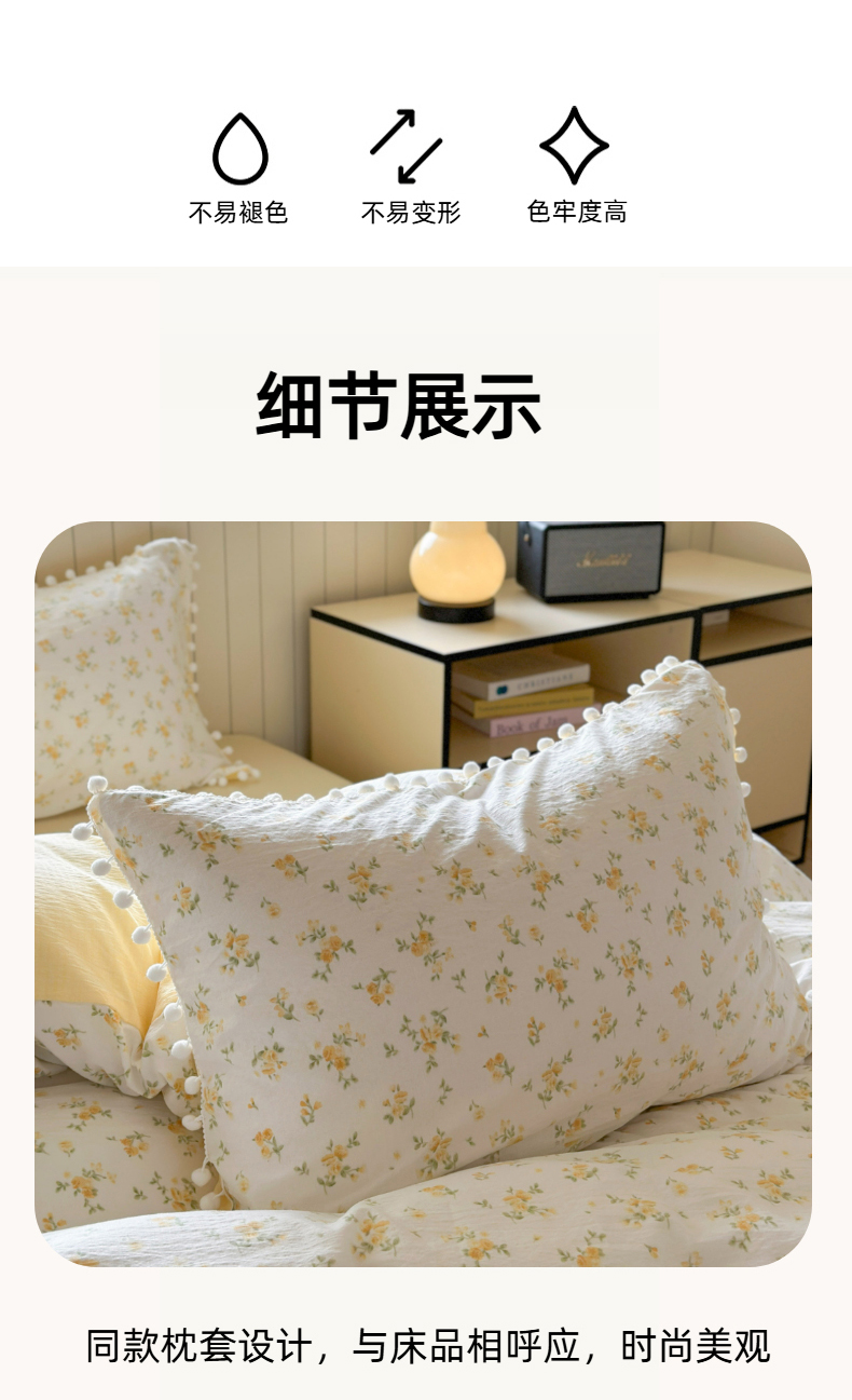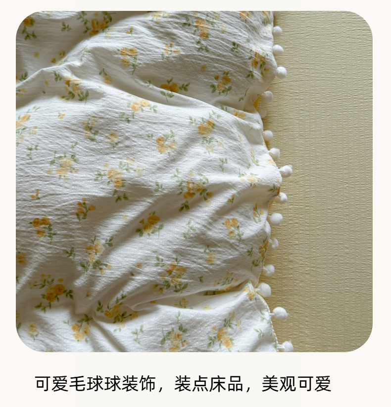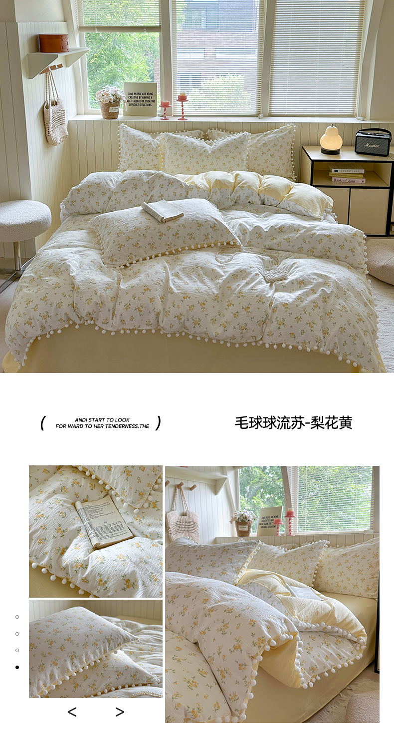 当前位置: 91家纺网 > 商品网购 > 床品套件 > 四件套 > 其它四件套 > 缘生活 2025新款皱皱纱毛球球流苏四件套 皱皱纱球球流苏-梨花黄