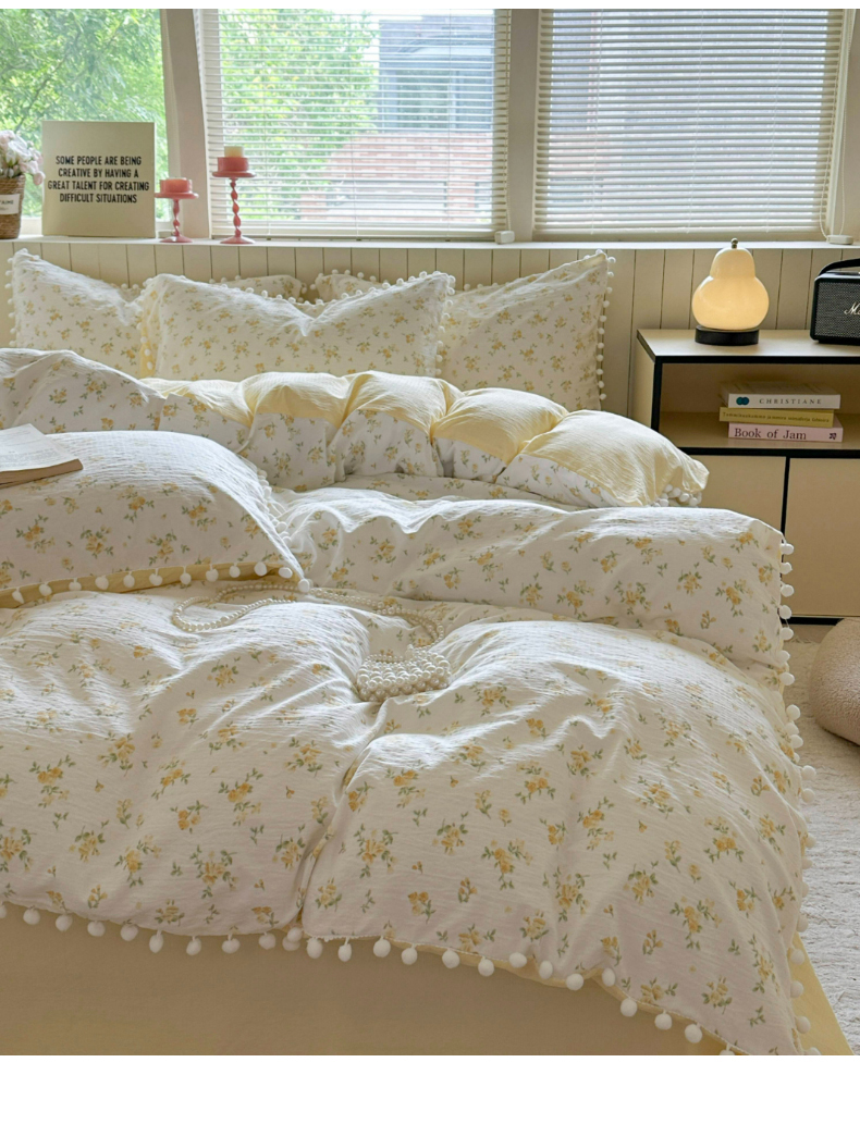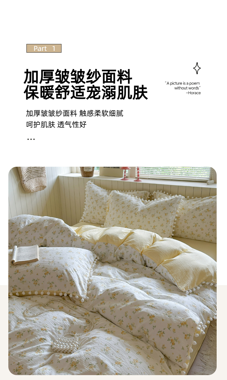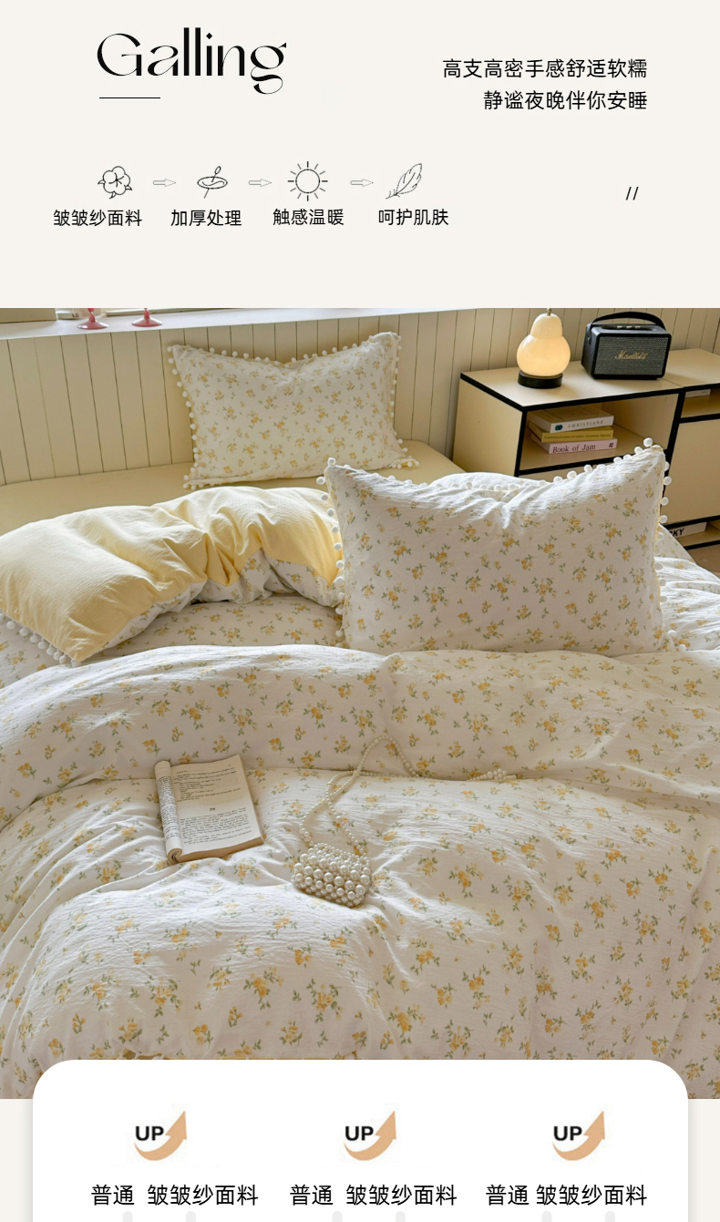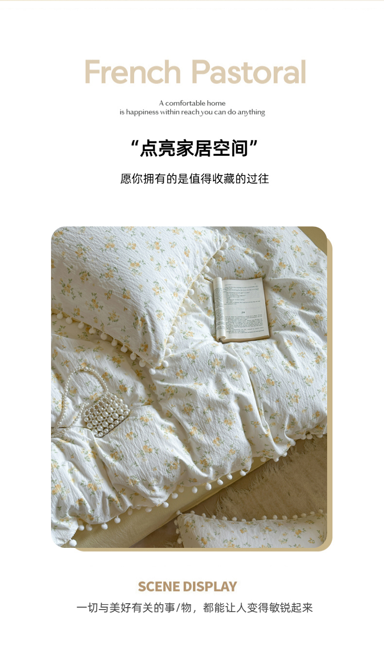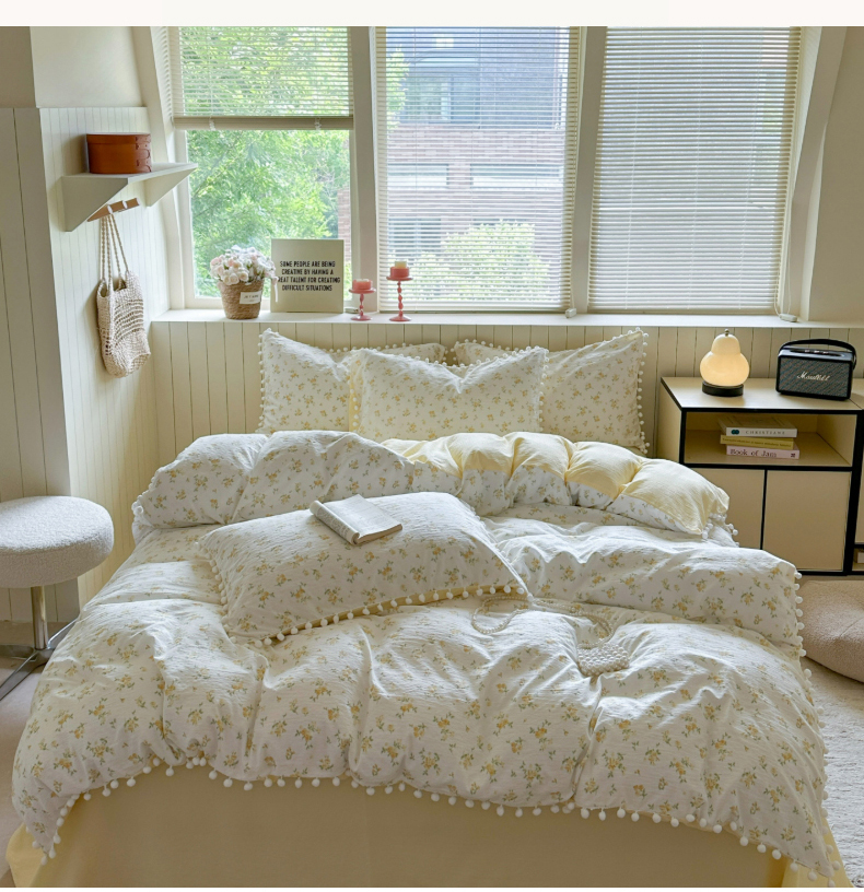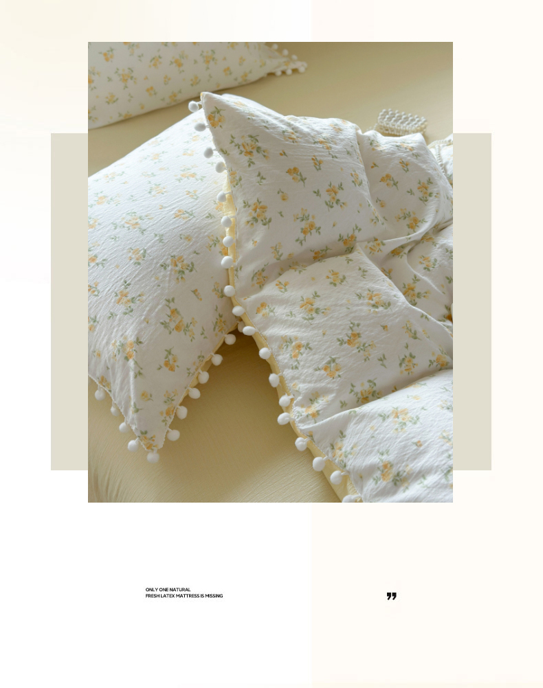 当前位置: 91家纺网 > 商品网购 > 床品套件 > 四件套 > 其它四件套 > 缘生活 2025新款皱皱纱毛球球流苏四件套 皱皱纱球球流苏-梨花黄