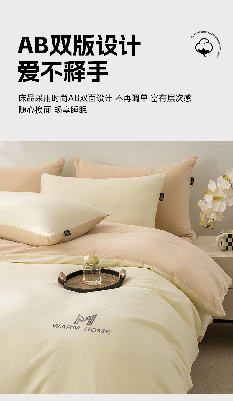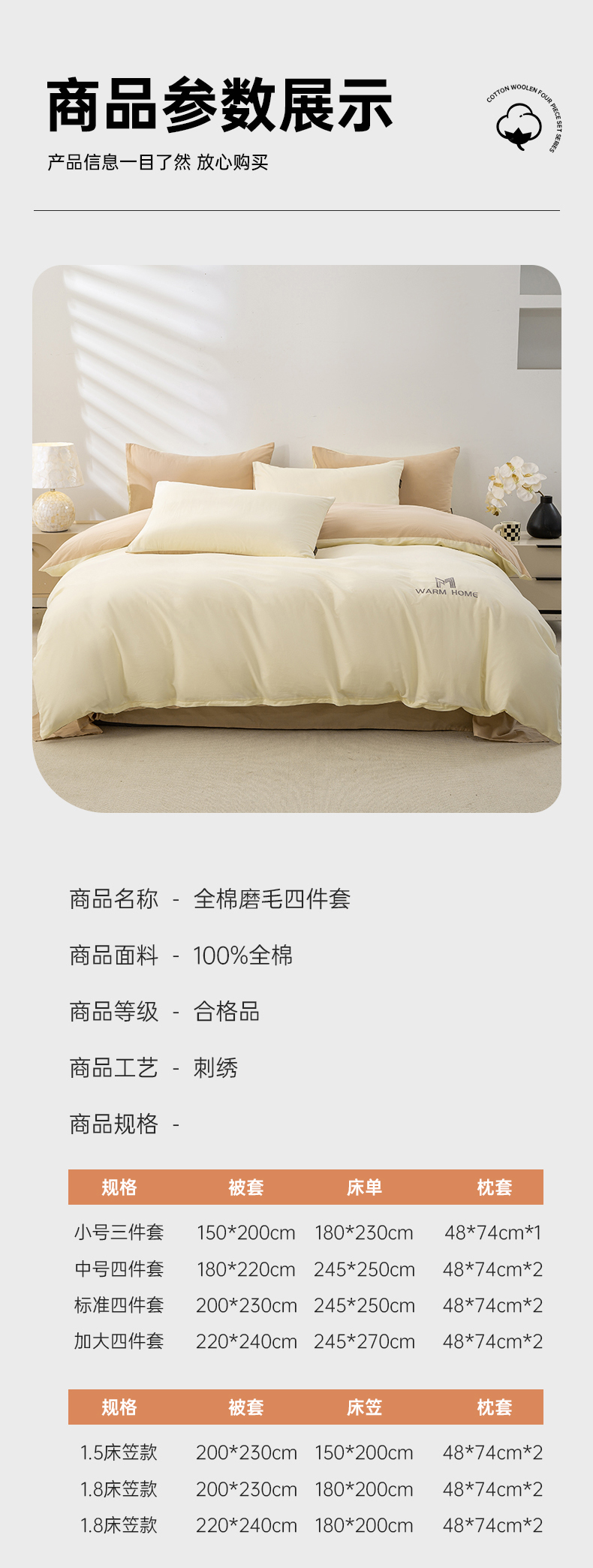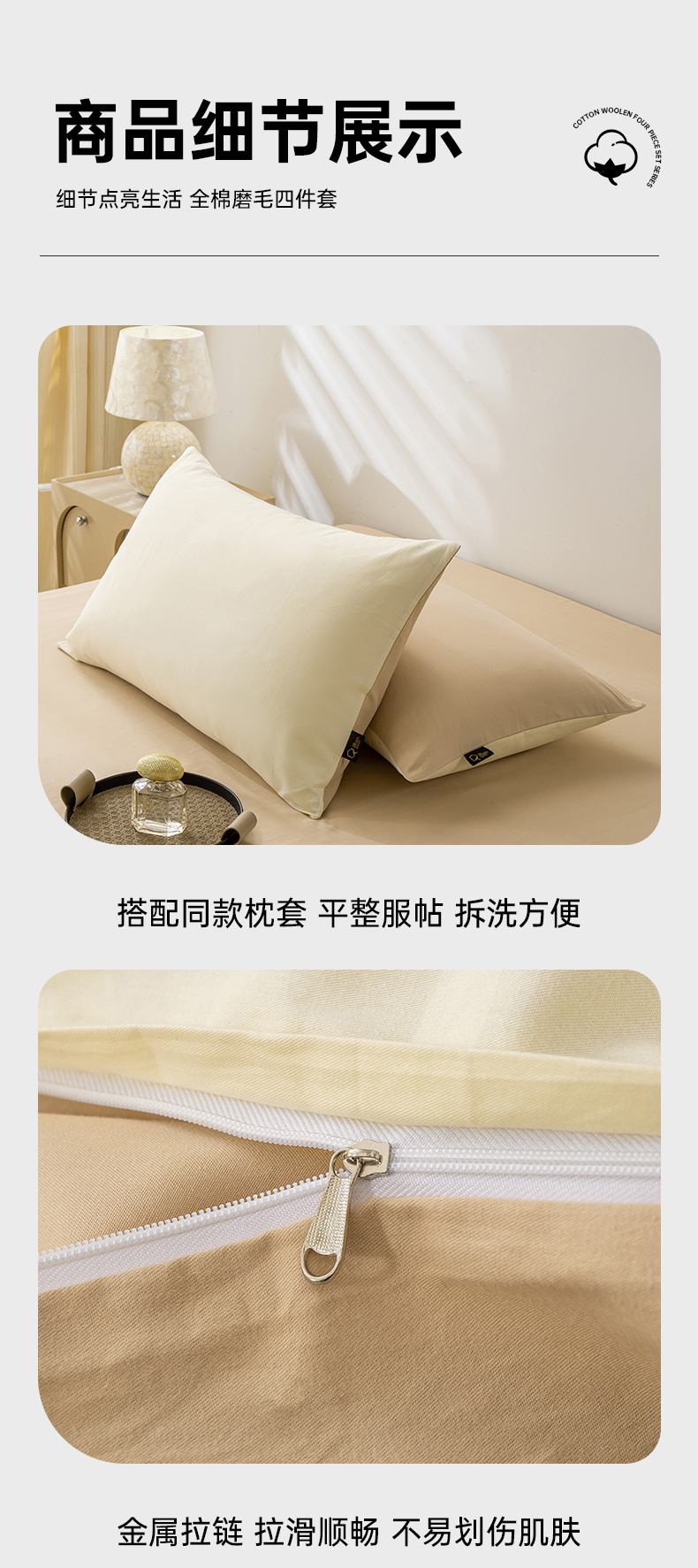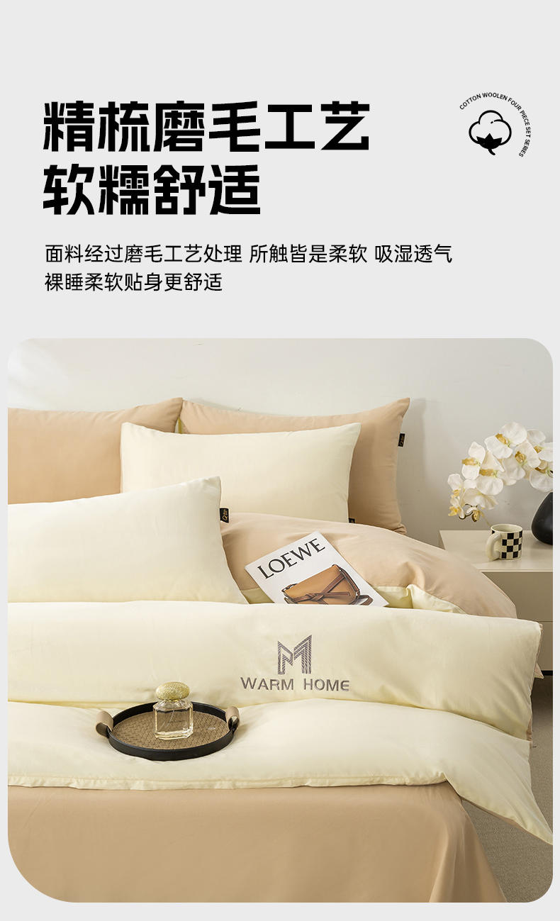 当前位置: 91家纺网 > 商品网购 > 床品套件 > 四件套 > 全棉普通四件套 > 沃尔居 2025新款秋冬全棉加厚磨毛四件套纯棉床单被套床笠纯色三件套(提供买家秀) 梦境--奶油卡其